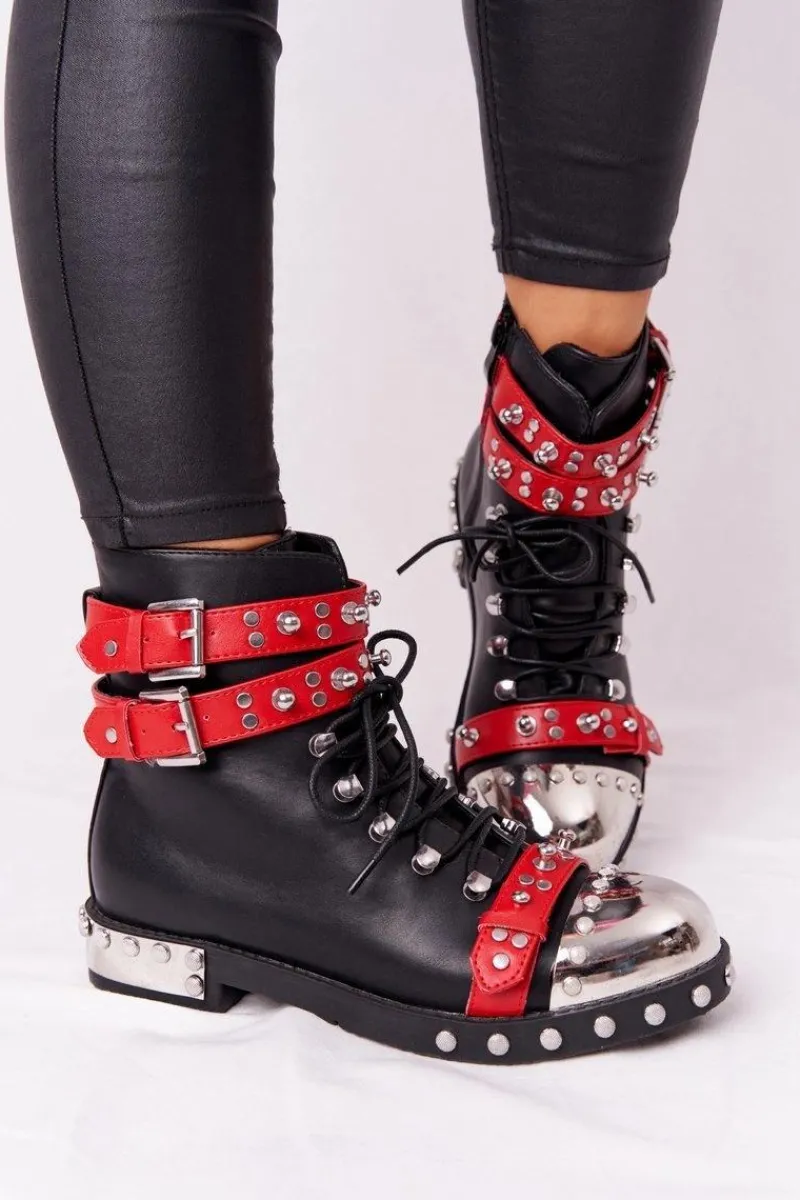 Wyjątkowe botki z dżetami i klamrami. Workery wykonane są ze skóry ekologicznej, posiadają ocieplenie w postaci koca obuwniczego. Botki świetnie wpiszą się w stylizacje glam rock lub grunge. Koniecznie sprawdź całą naszą kolekcje damskich botków! Przy wyborze rozmiaru prosimy sugerować się tabelą rozmiarów.