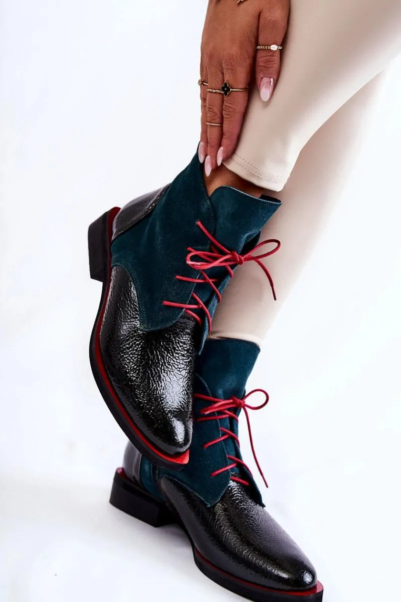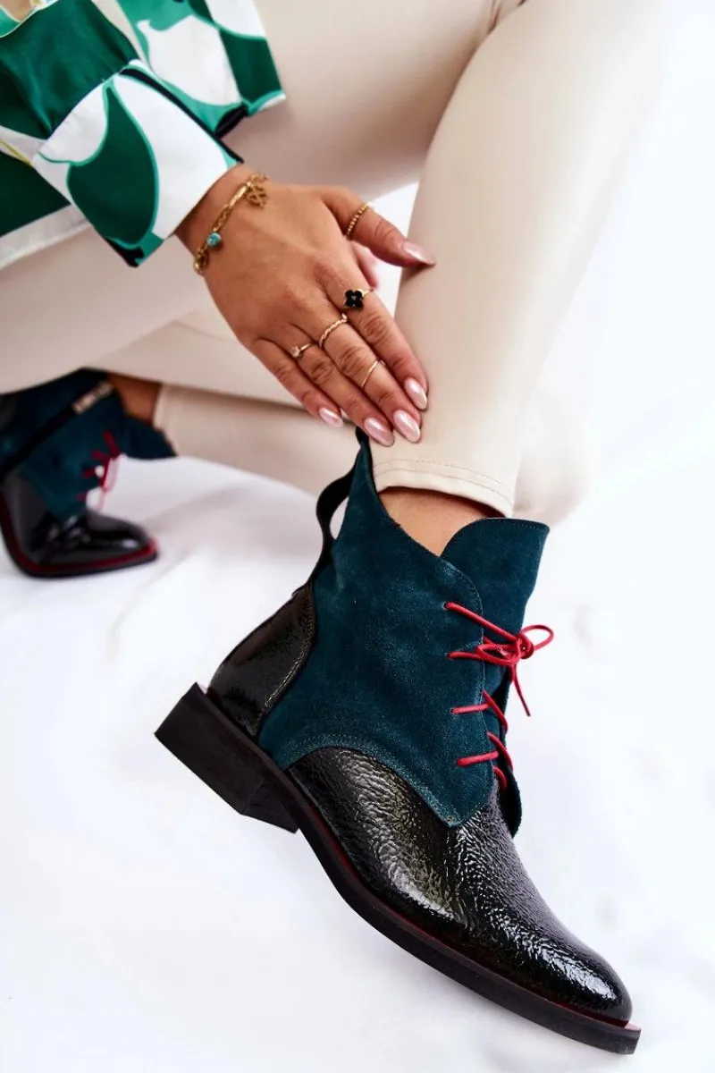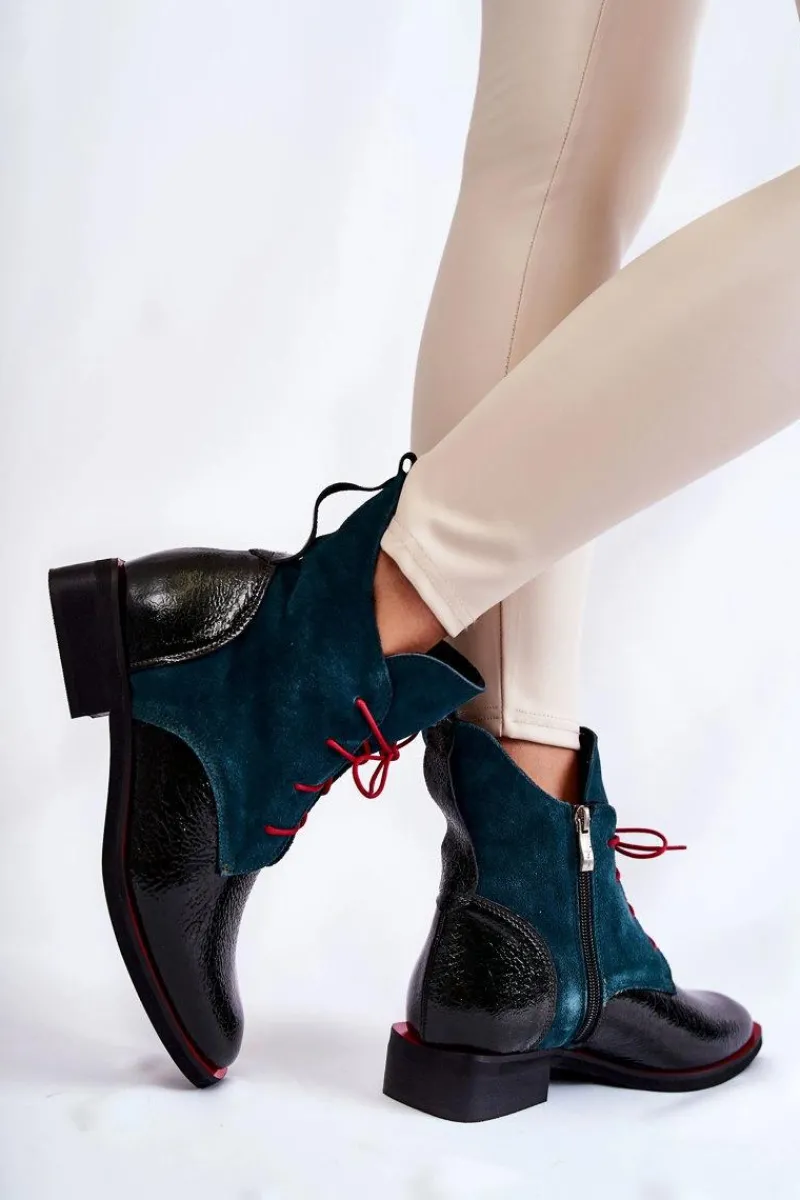 Wyjątkowe botki od polskiego producenta. Buty cechuje wysoka jakość wykonania oraz dbałość o detale. Botki wykonano ręcznie z lakierowanej skóry naturalnej oraz zamszu Skórzana wkładka, oraz wygodny obcas zapewnią maksymalny komfort! Dzięki pięknie zdobionej cholewce buty wzbogacą wszystkie Twoje stylizacje. Przy wyborze rozmiaru prosimy sugerować się tabelą rozmiarów.
