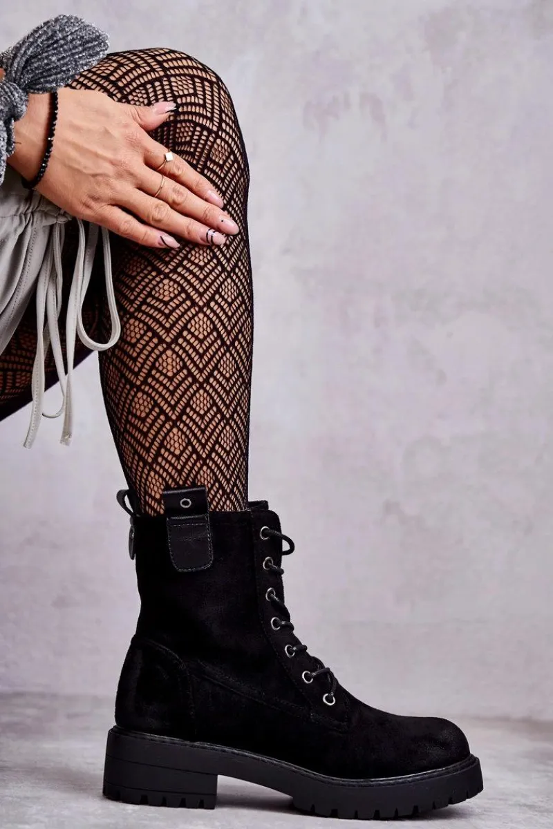 Botki damskie o klasycznym fasonie świetnie sprawdzą się na jesienne, chłodne dni. Posiadają wewnątrz ocieplenie w postaci koca obuwniczego. Osadzone na płaskim, stabilnym obcasie ze żłobieniami. Dodatkowo posiadają usztywniany zapiętek. Model z suwakiem na boku cholewki oraz sznurowaniem. Idealny model do pracy czy szkoły. Przy wyborze rozmiaru prosimy sugerować się tabelą rozmiarów.
