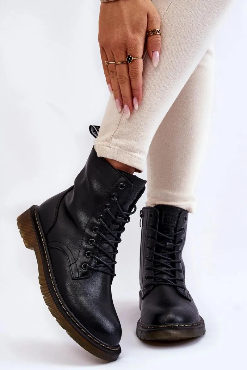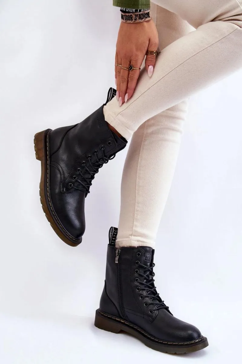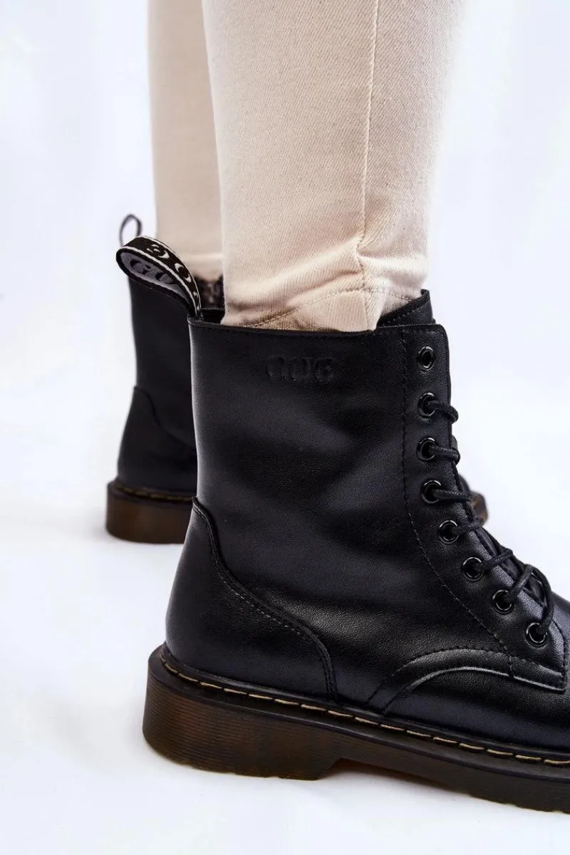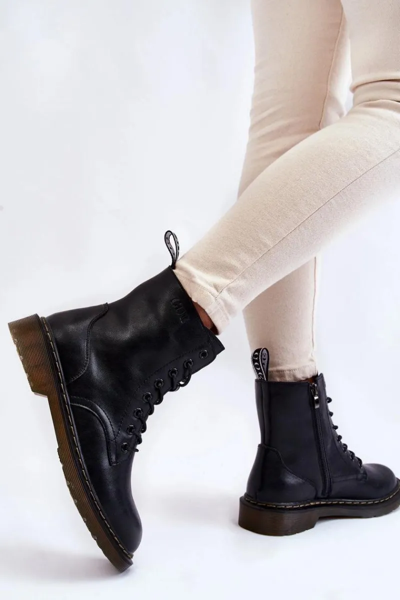 Klasyczne botki marki GOE zostały wykonane z wysokiej jakości naturalnej skóry. Posiadają sznurowanie oraz suwak z boku cholewki. Botki wewnątrz zostały ocieplone kocem obuwniczym. Model osadzony na płaskim obcasie i delikatnej platformie. Dodatkowo zapiętek jest usztywniany. Idealny model do wielu stylizacji! Przy wyborze rozmiaru prosimy sugerować się tabelą rozmiarów.
