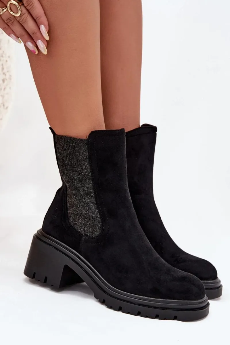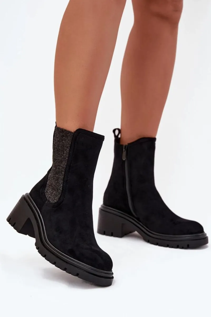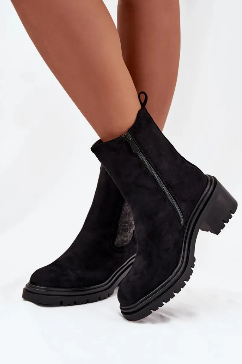Botki sztyblety damskie wykonane z eko zamszu to klasyczny wybór na chłodniejsze dni. Osadzone na obcasie typu klocek, zapewniają wygodę i stabilność. Zaokrąglone noski dodają subtelnego charakteru, a wnętrze ocieplone kocem obuwniczym gwarantuje ciepło i komfort przez cały dzień. Zapinane na zamek, umożliwiają szybkie zakładanie i zdejmowanie. Idealne do codziennych stylizacji. Przy wyborze rozmiaru prosimy sugerować się tabelą rozmiarów.
