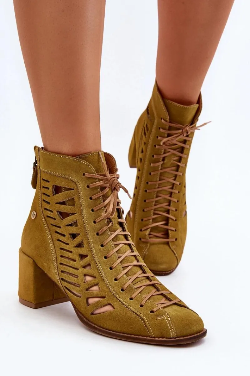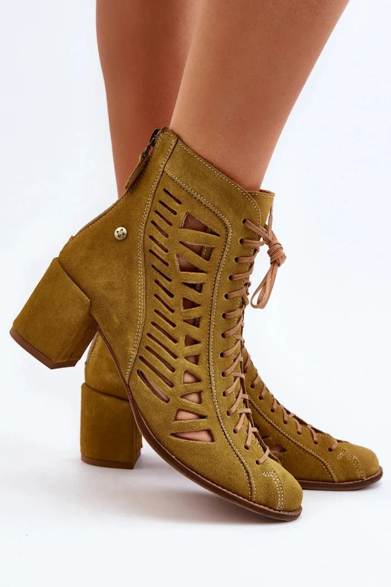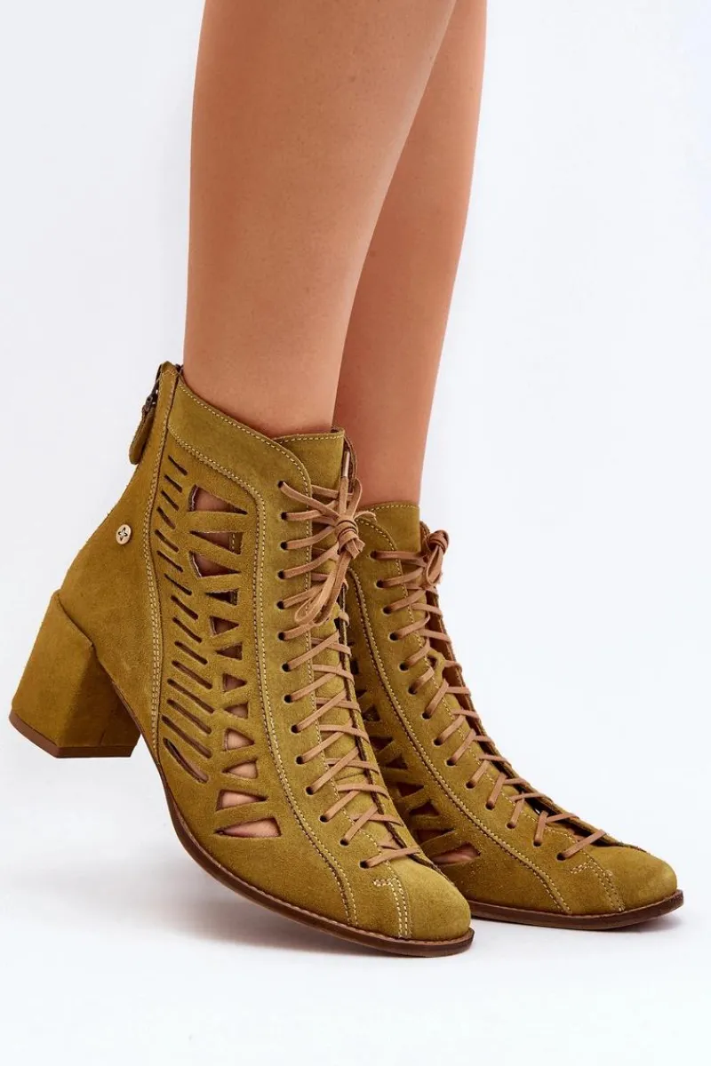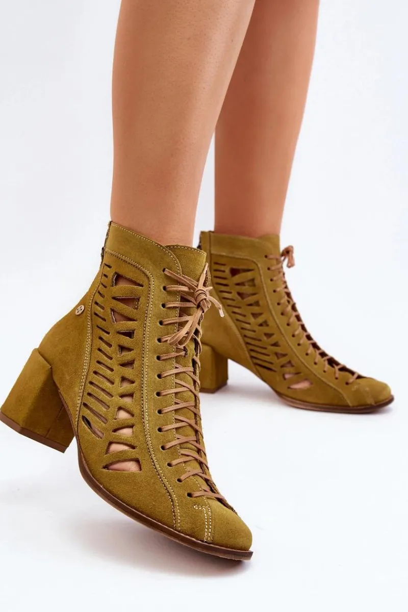 Polska marka Maciejka to wyjątkowy styl i dbałość o detale. Ażurowe botki wykonane są z miękkiego, naturalnego zamszu. Skórzana wkładka oraz stabilny słupek to gwarancja komfortu. Posiadają wiązanie oraz zamek błyskawiczny z tyłu cholewki. Idealne na wiosenno-letni sezon! Koniecznie sprawdź całą naszą kolekcję butów marki Maciejka. Przy wyborze rozmiaru prosimy sugerować się tabelą rozmiarów.