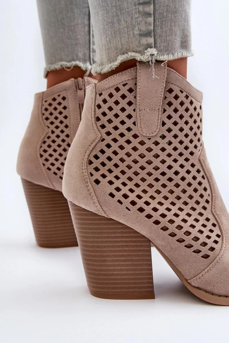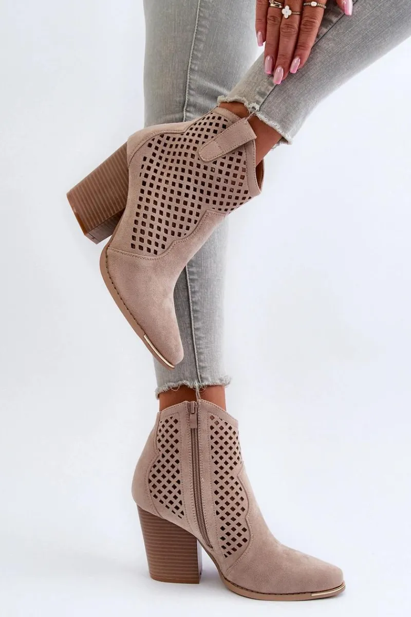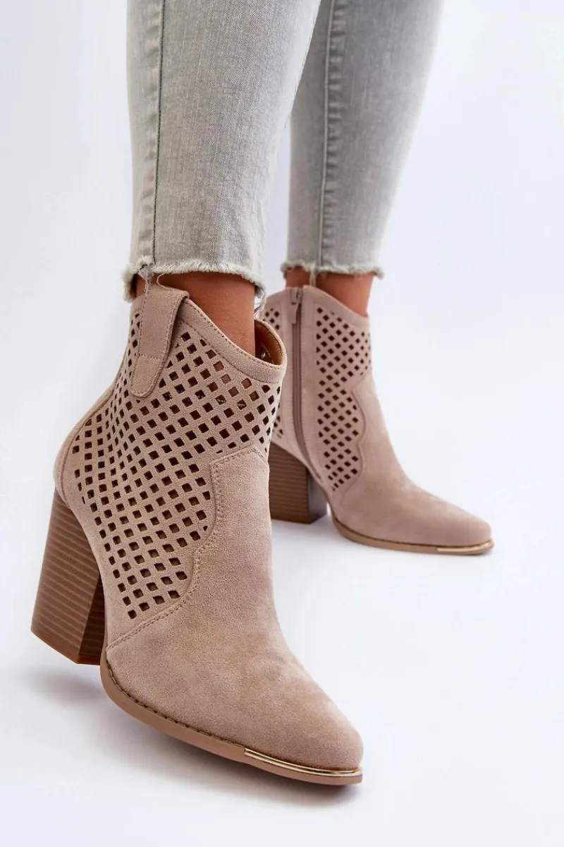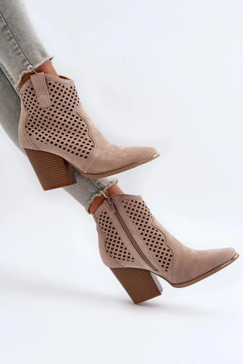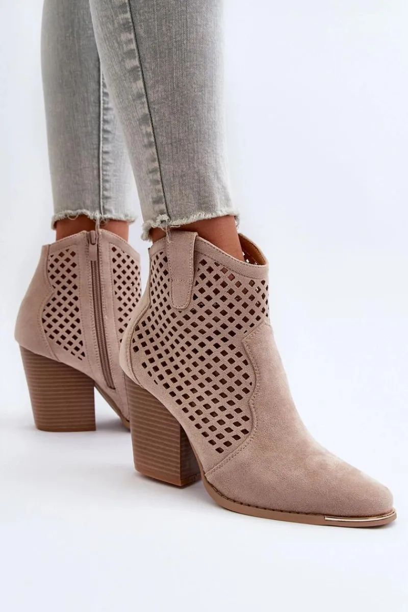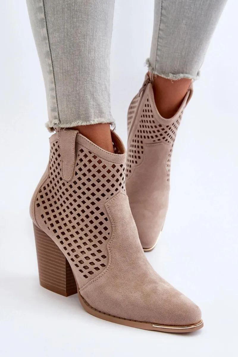 Botki damskie wykonane z eko zamszu. Zapinane na zamek. Noski w kształcie migdała dodają delikatności i subtelności całej stylizacji. Wkładka ze skóry naturalnej zapewnia komfort noszenia przez cały dzień, dbając jednocześnie o odpowiednią wentylację stóp. Te botki doskonale sprawdzą się w codziennych oraz bardziej formalnych zestawach, dodając im szyku i elegancji. Przy wyborze rozmiaru prosimy sugerować się tabelą rozmiarów.
