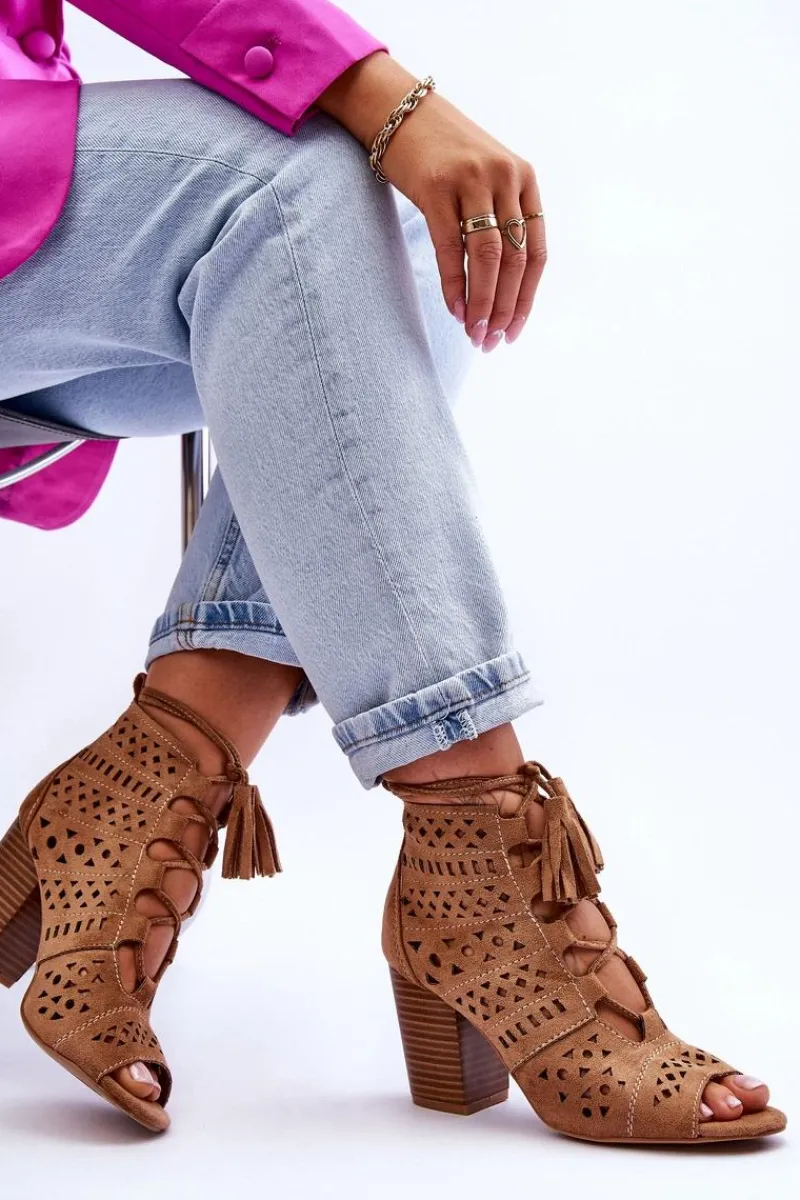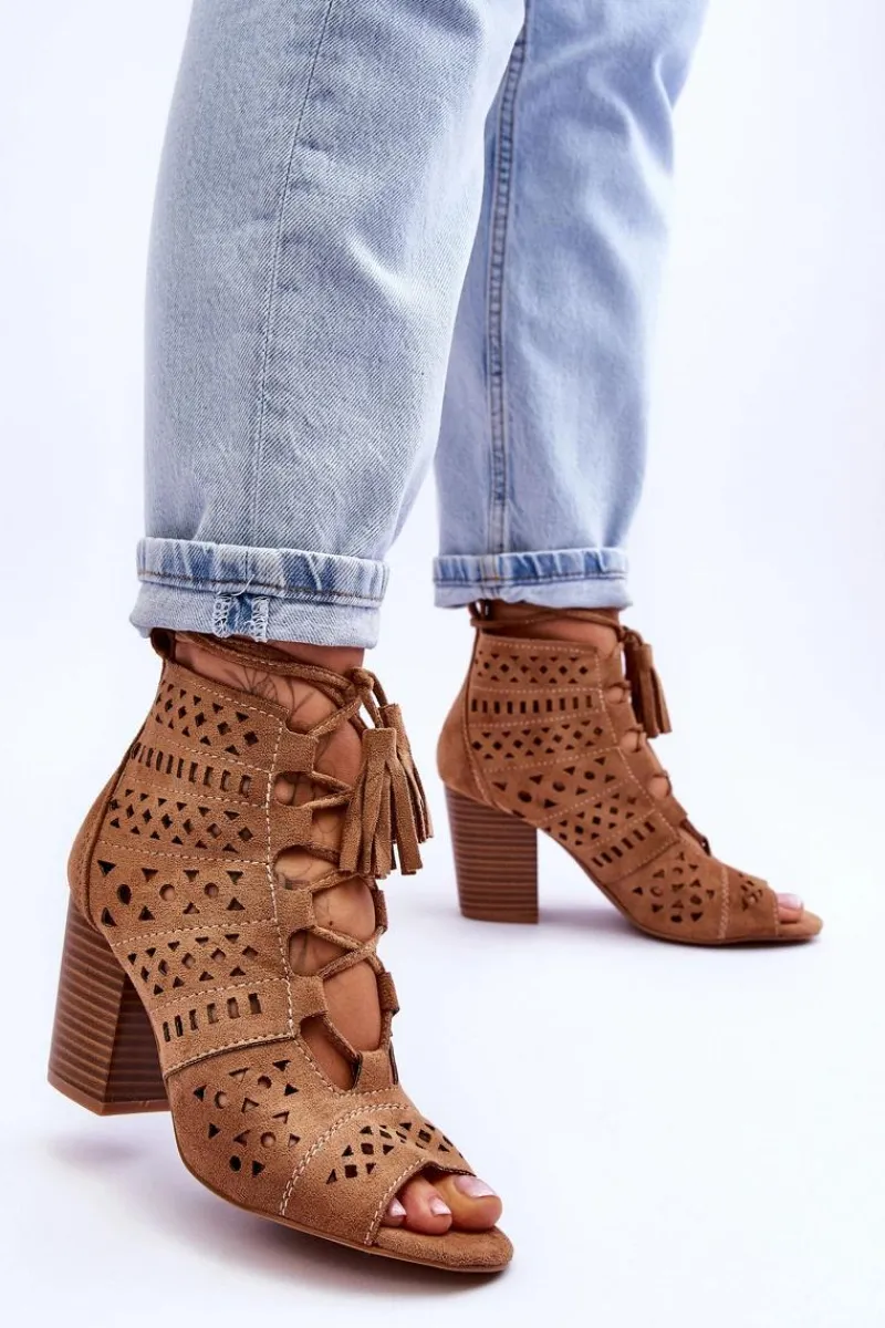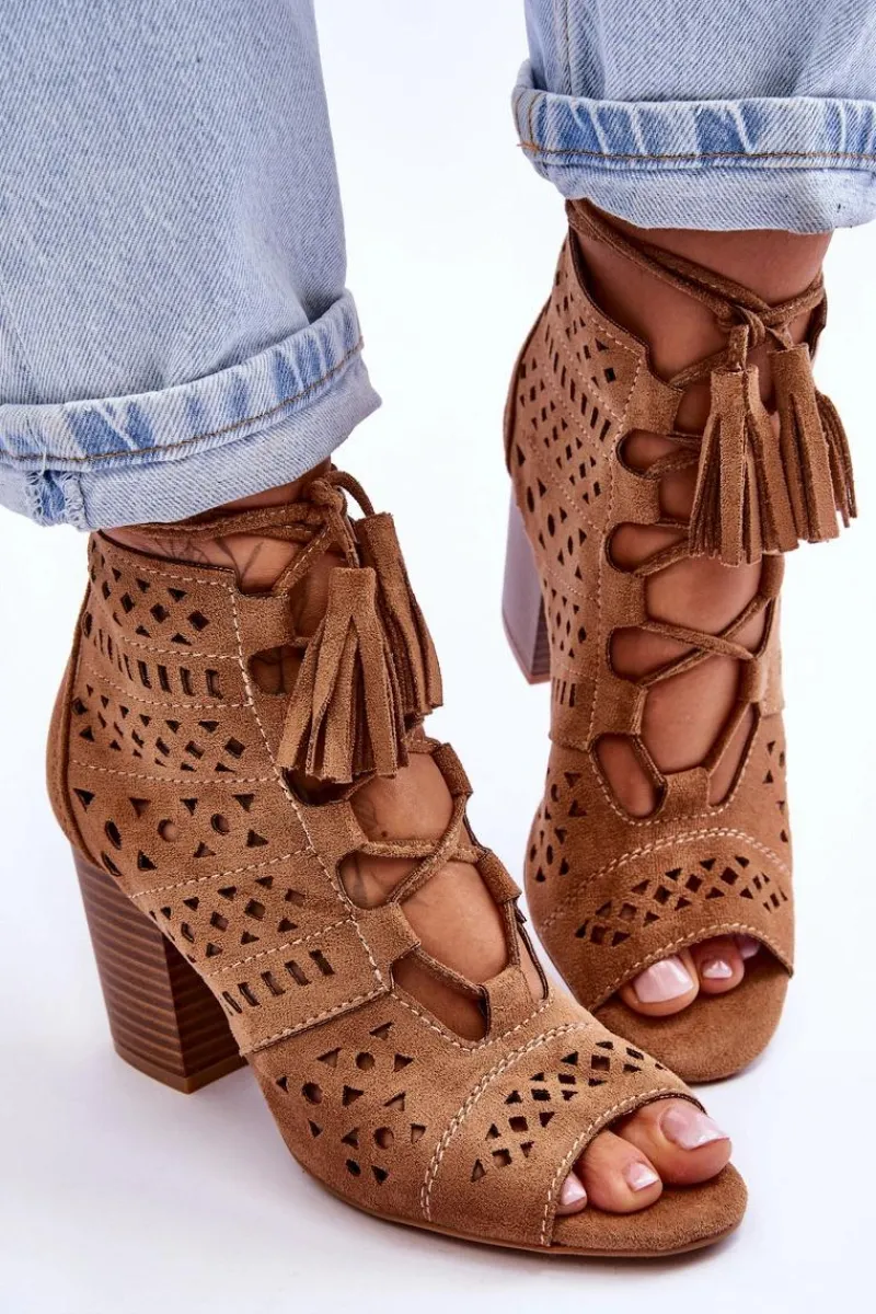 Cudowne, ażurowe botki na obcasie w postaci słupka zostały wykonane z miękkiego eko zamszu. Botki posiadają na całości cholewki zdobienie w postaci ażurowego wzorku. Model klasycznie wiązany. Miękka i wygodna wkładka została wykonana z eko skóry. Ten świetny model sprawdzi się w wielu wiosenno-letnich stylizacjach! Przy wyborze rozmiaru prosimy sugerować się tabelą rozmiarów.