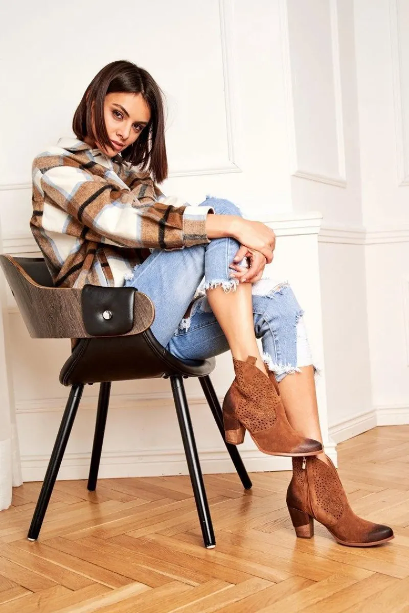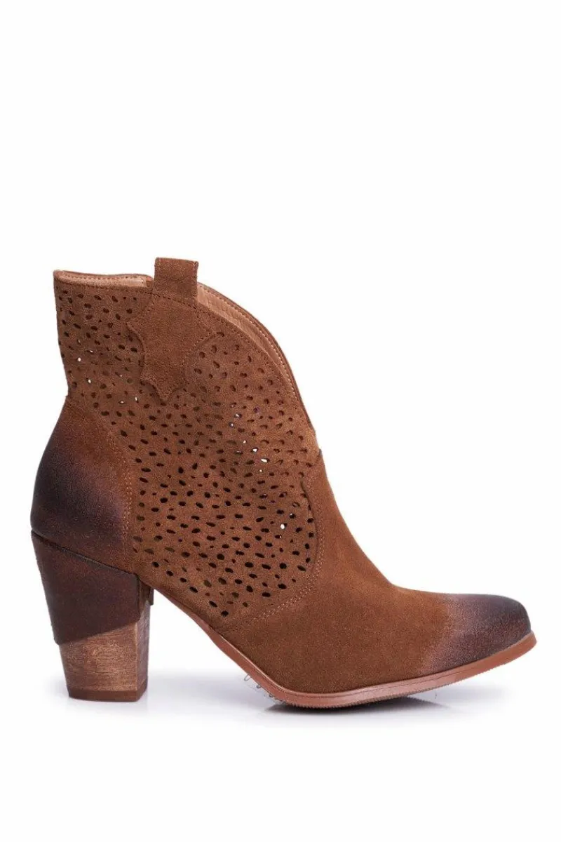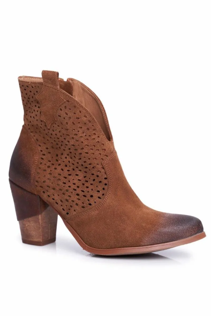 Botki Wiosenne|Botki Na Słupku>Boto Botki Damskie Na Słupku Skórzane Welurowe Kowbojki Exquisite Brązowe 1170
