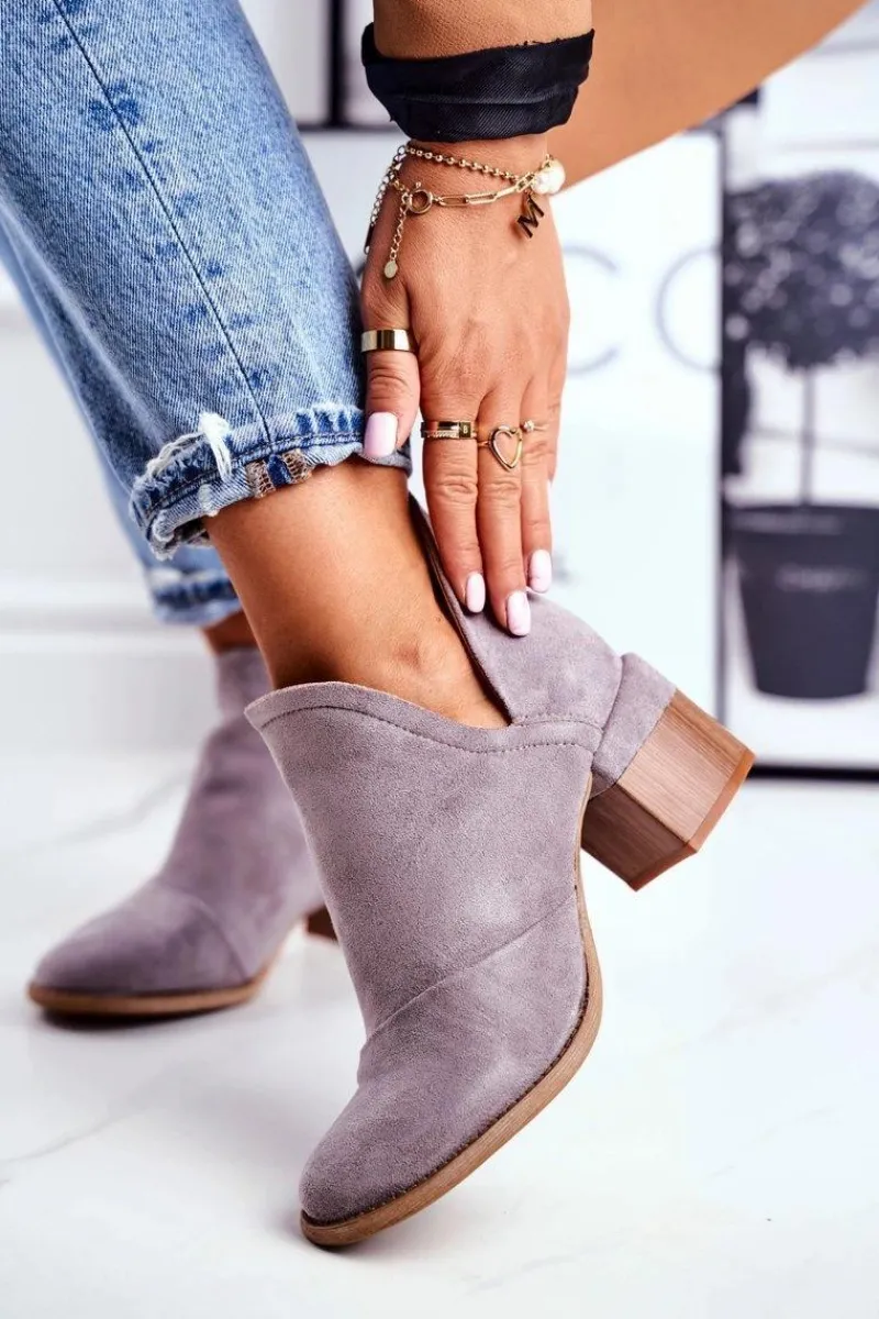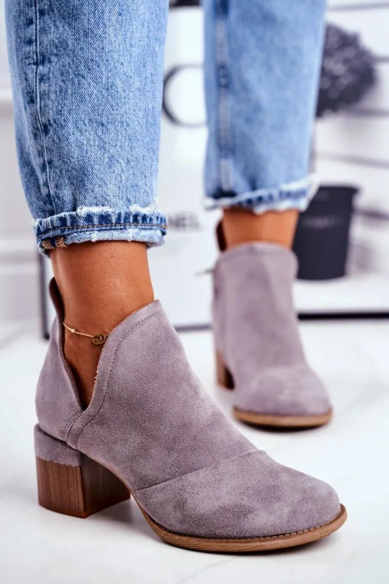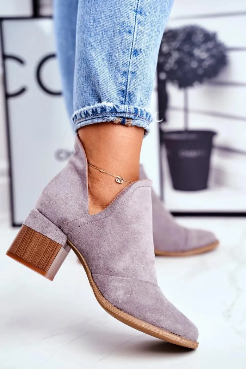 Botki Wiosenne|Botki Na Słupku>Boto Damskie Botki Na Słupku Wycięte Szare Mini Meliori