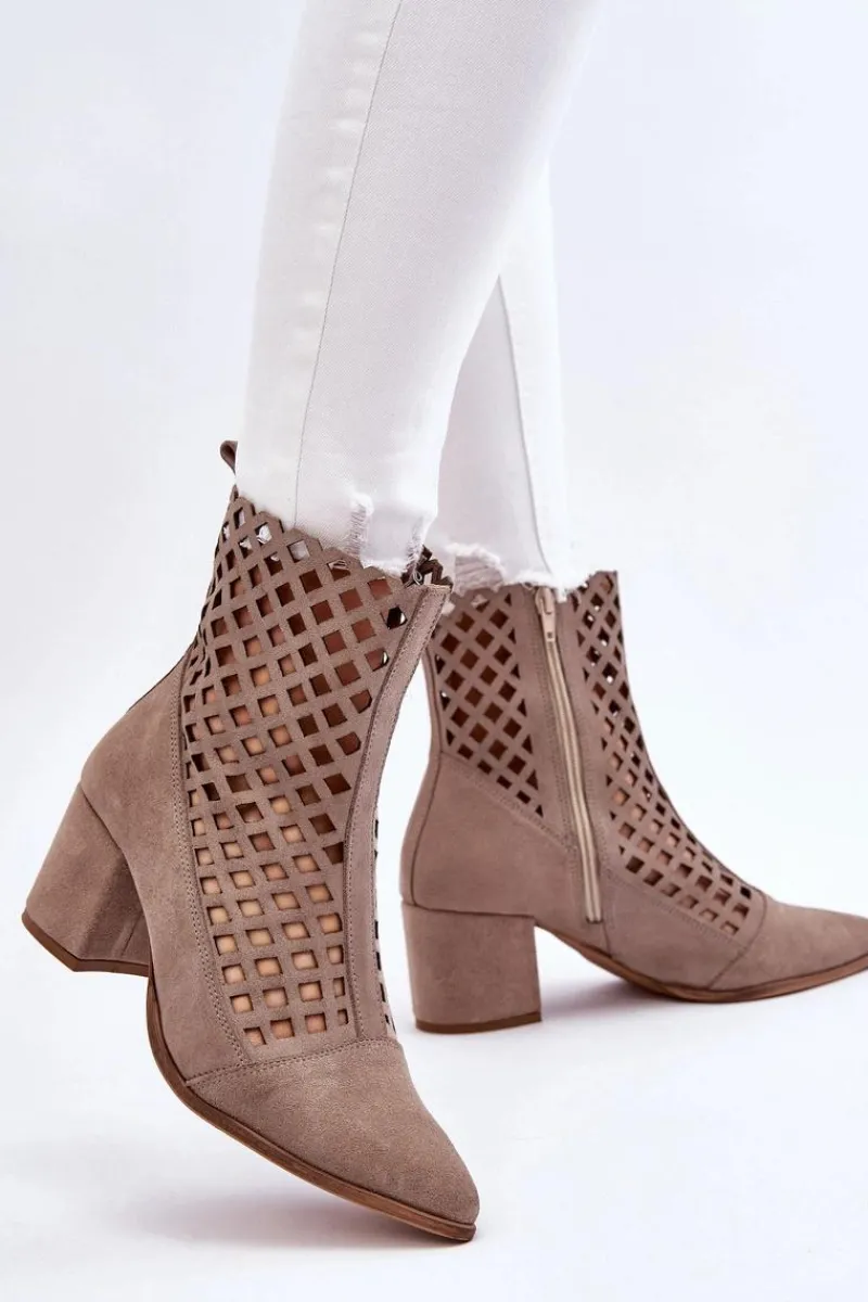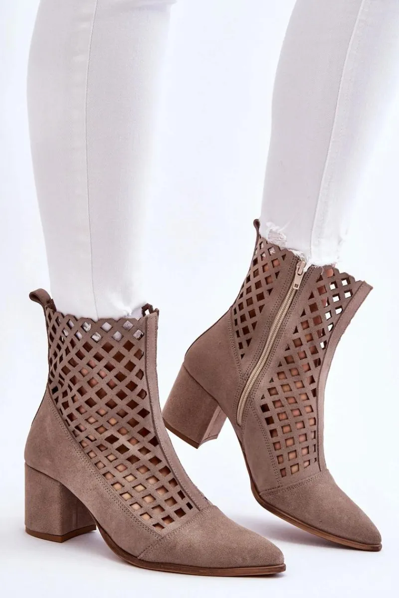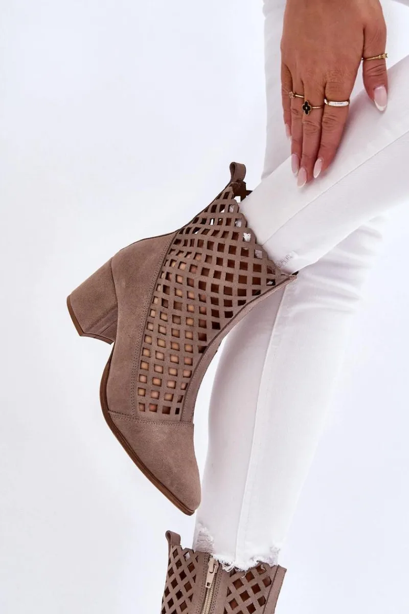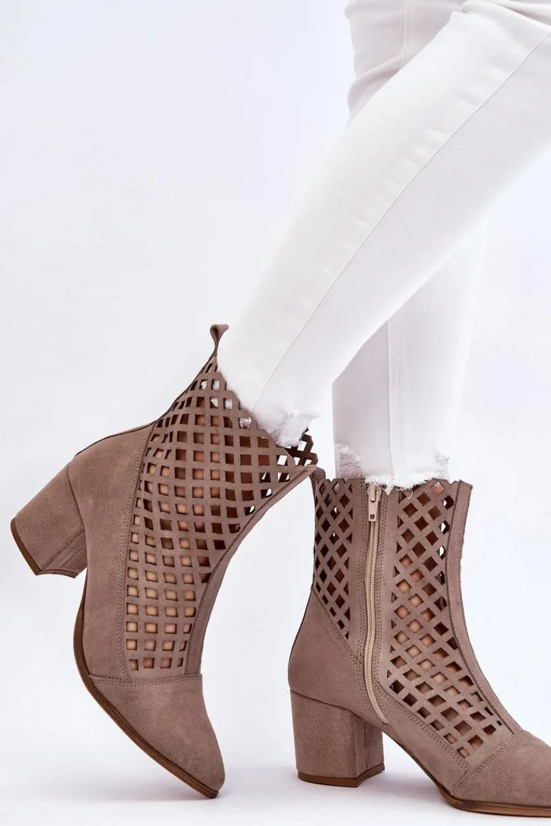 Botki Wiosenne|Botki Na Słupku>Boto Zamszowe Ażurowe Botki Na Obcasie Nicole 2638 Cappuccino