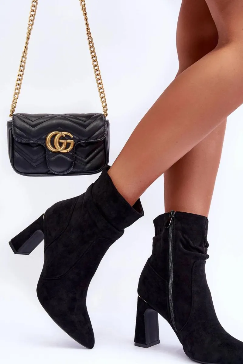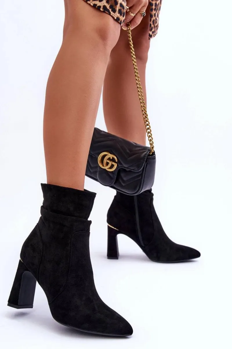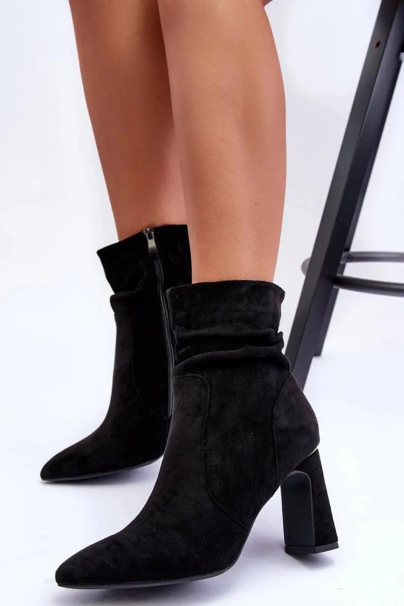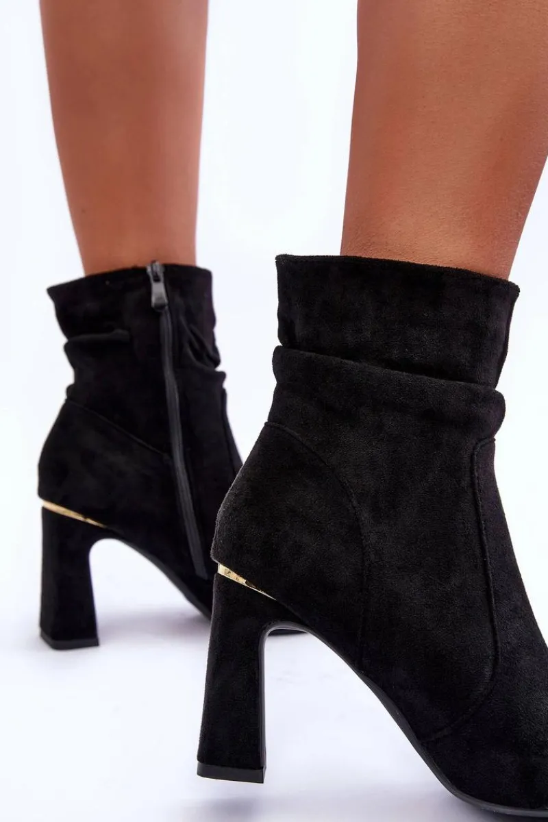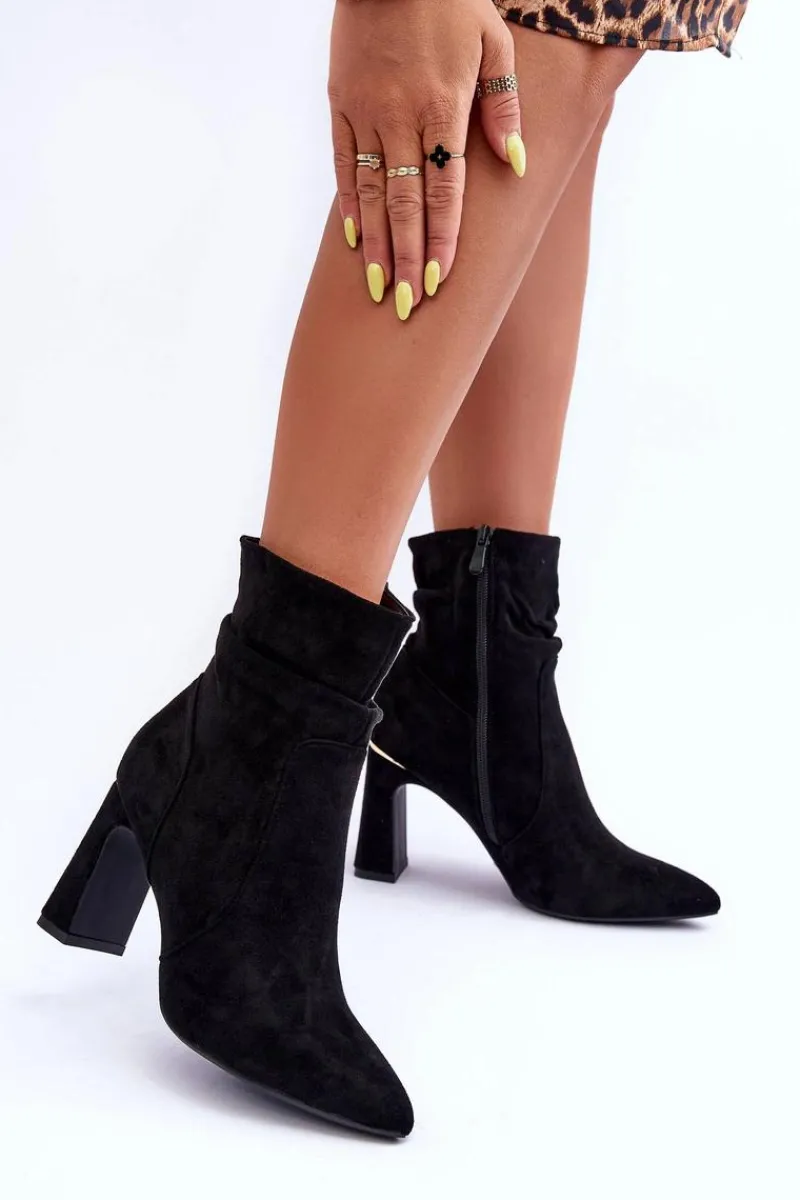 Botki Wiosenne|Botki Na Słupku>Boto Zamszowe Botki Na Słupku Czarne Mellamene