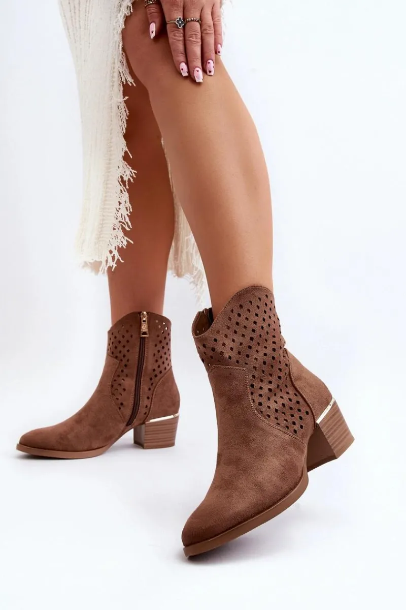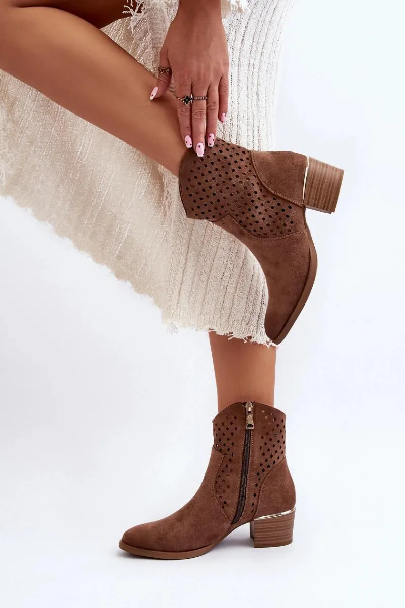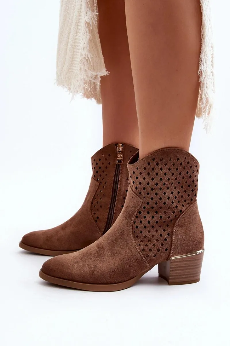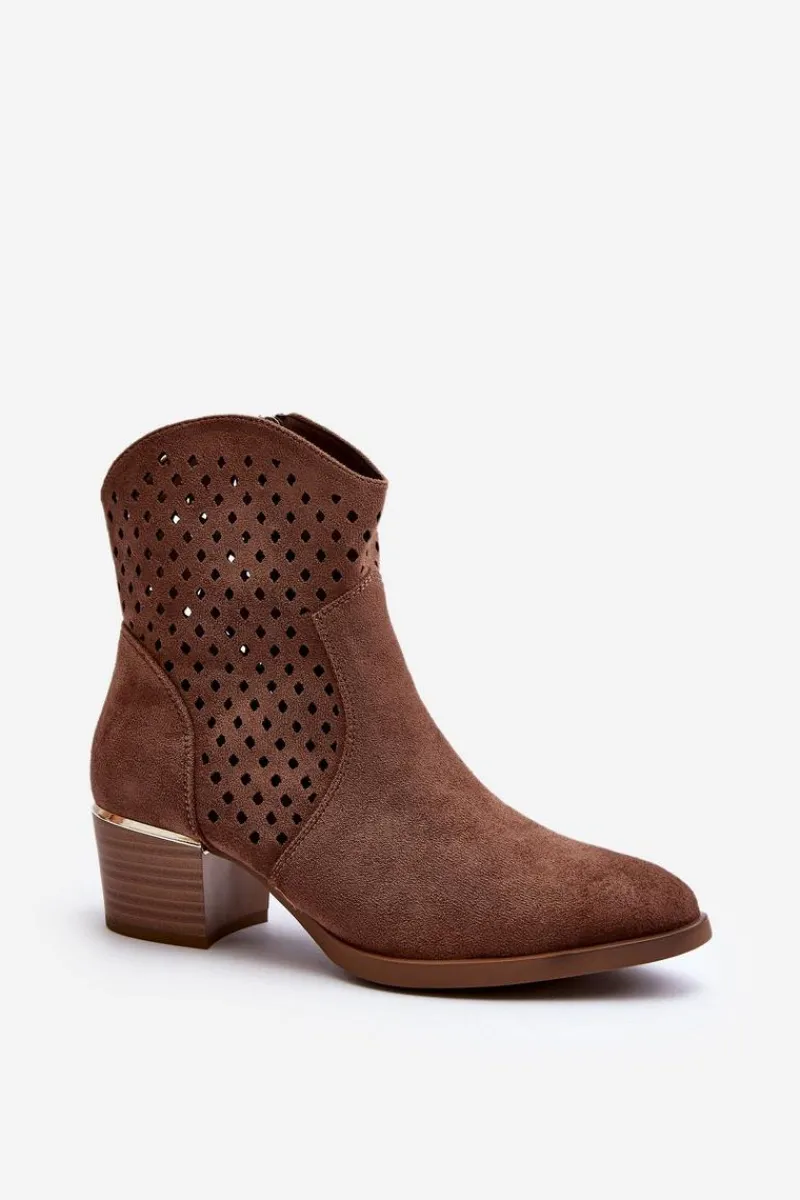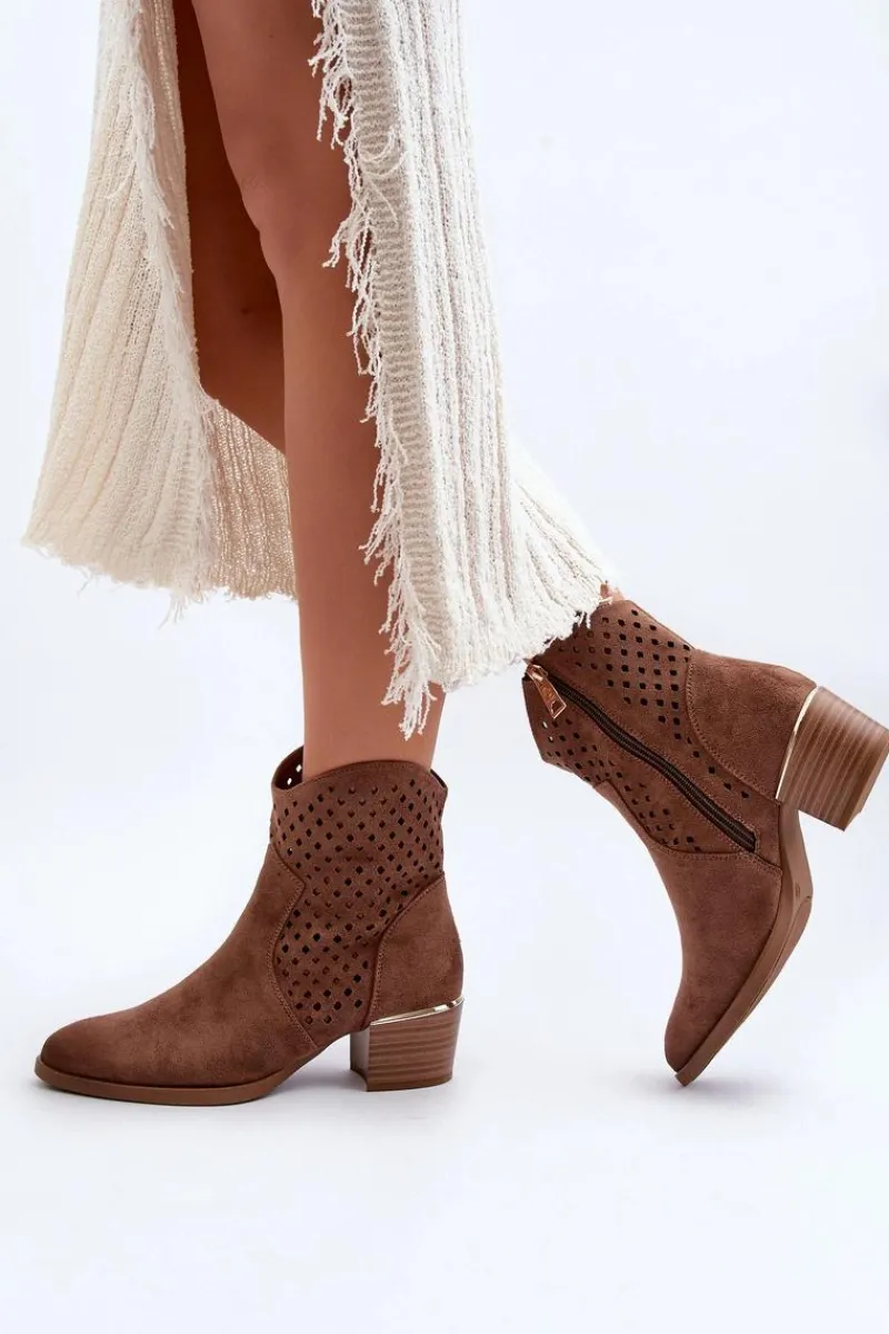 Botki Wiosenne|Botki Na Słupku>Buty damskie Vinceza Ażurowe Botki Na Niskim Obcasie Brązowe Cilvana
