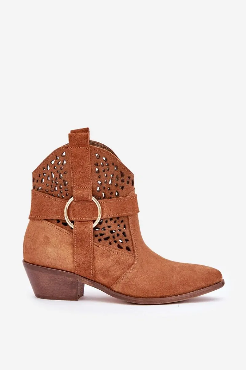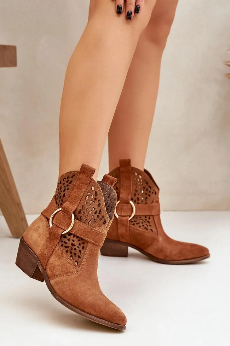 Stylowe i eleganckie botki damskie wykonane z naturalnego zamszu, które doskonale łączą modny wygląd z wygodą użytkowania. Model osadzony na niskim obcasie, idealny na co dzień i do bardziej formalnych stylizacji. Ażurowa cholewka ozdobiona delikatnym akcentem nadaje im wyjątkowego charakteru. Szpiczaste noski optycznie wysmuklają stopę, dodając szyku każdemu zestawowi. To doskonały wybór dla kobiet ceniących jakość, styl i komfort. Przy wyborze rozmiaru prosimy sugerować się tabelą rozmiarów.