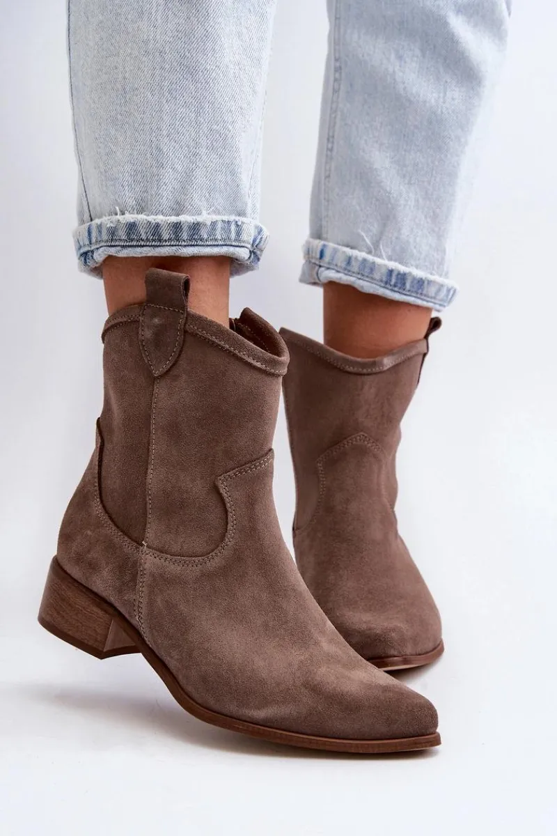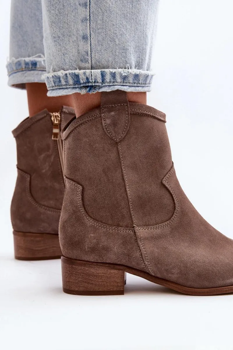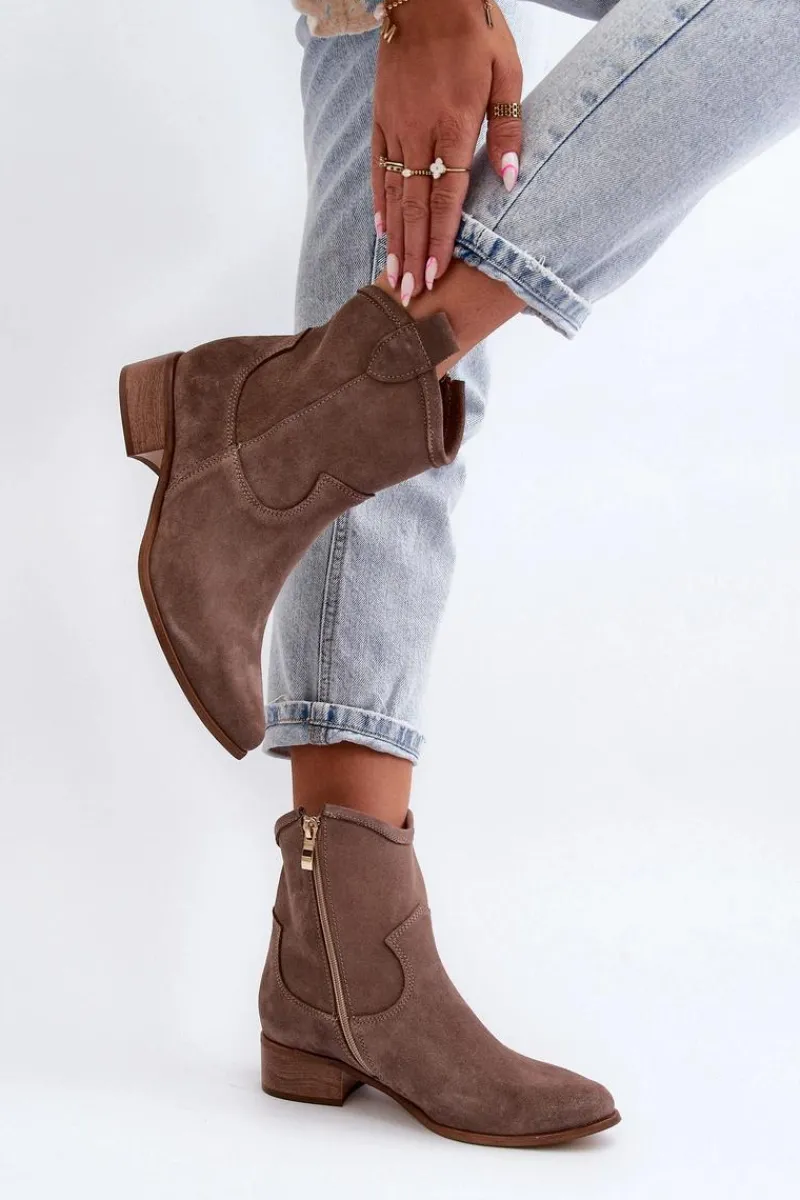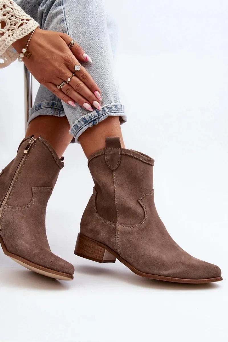 Modne, damskie botki w stylu kowbojek to HIT na wiele sezonów! Wykonane z naturalnego zamszu. Osadzone na niskim obcasie. Zapinane na suwak z boku. Noski w szpic optycznie wysmuklą nogi. Nie zwlekaj dłużej i kup je dziś! Przy wyborze rozmiaru prosimy sugerować się tabelą rozmiarów.