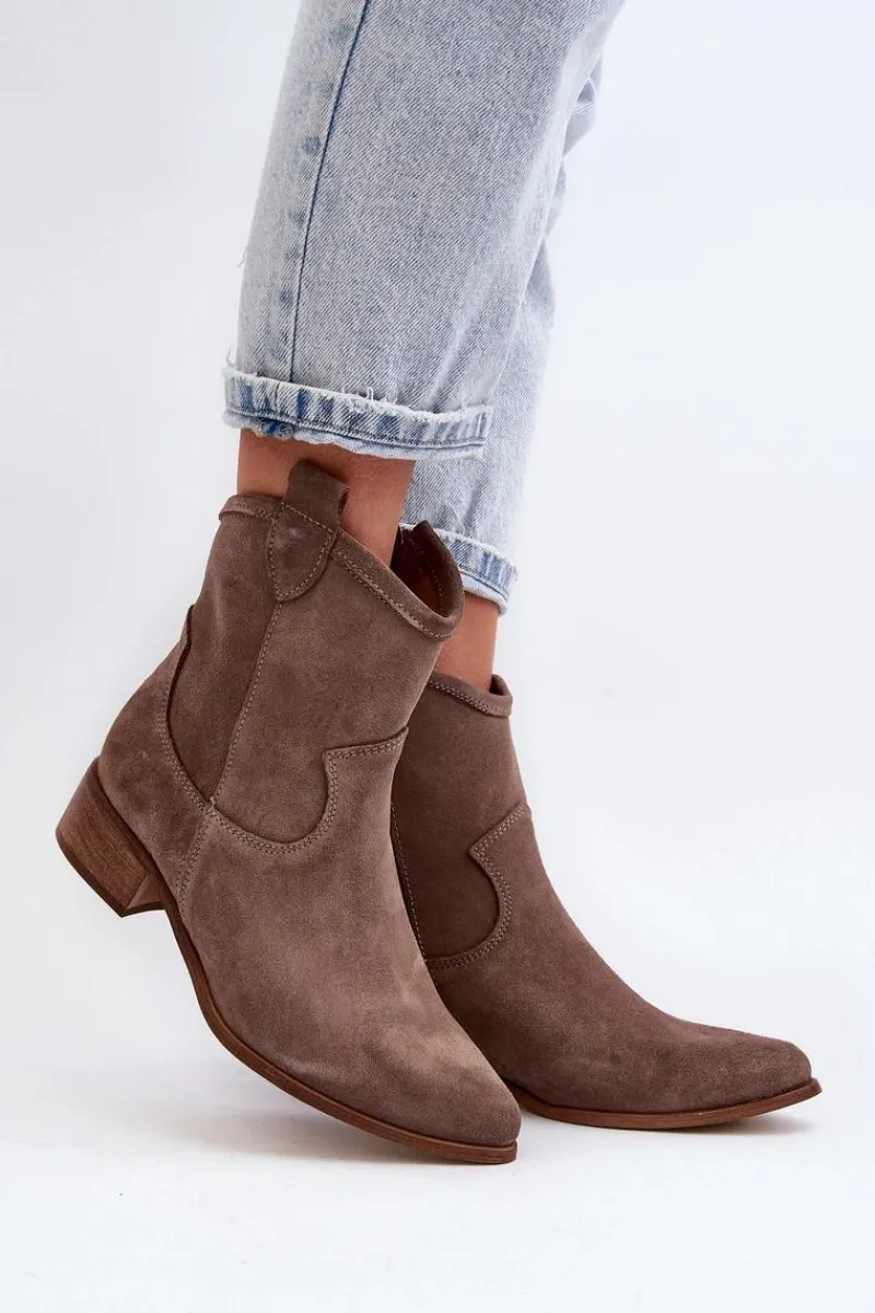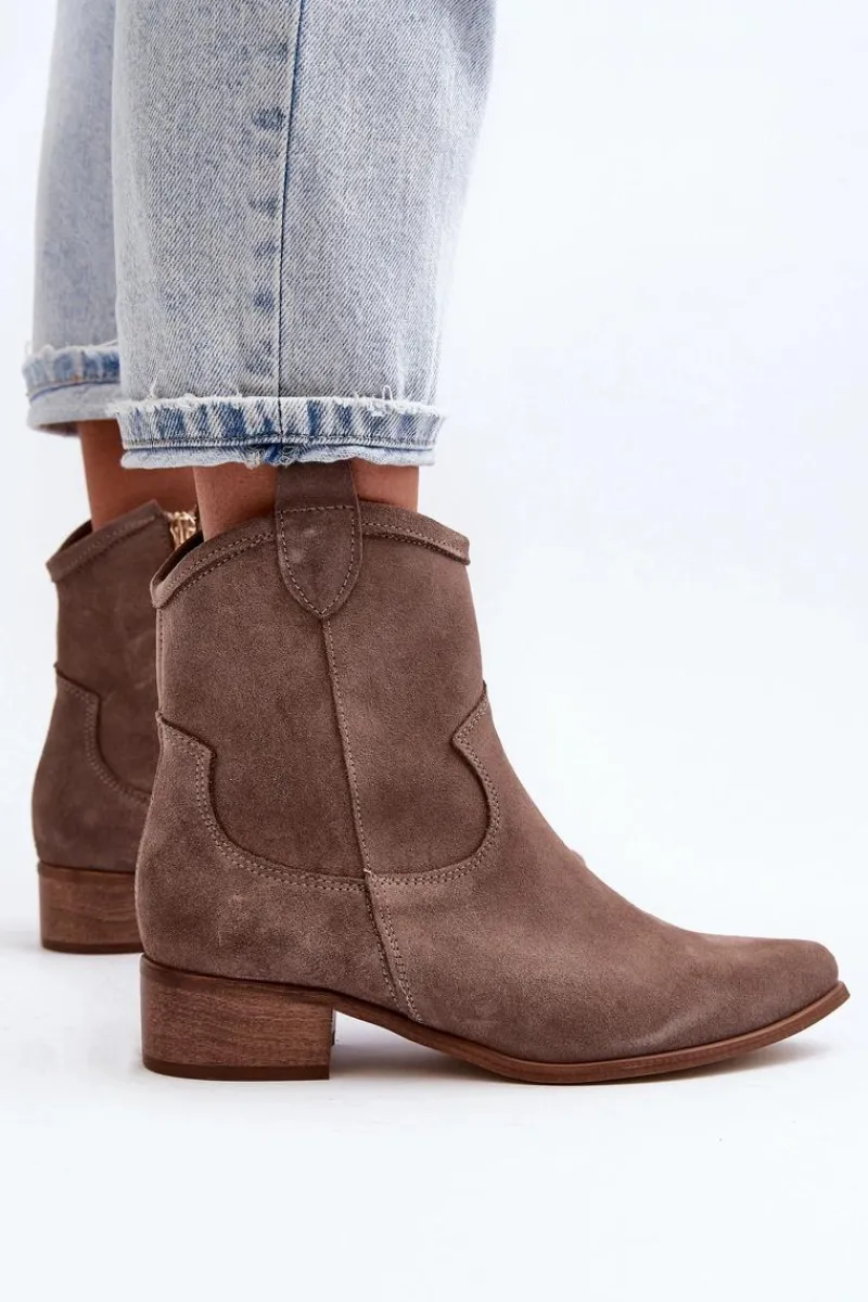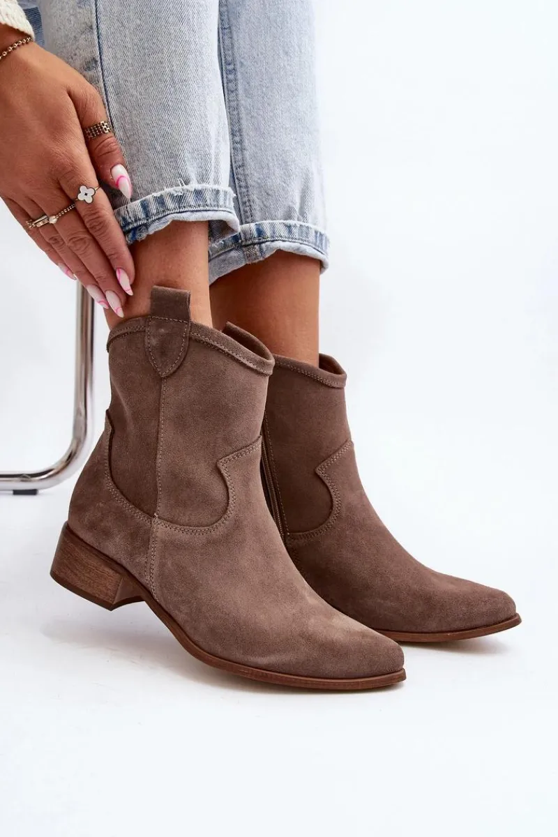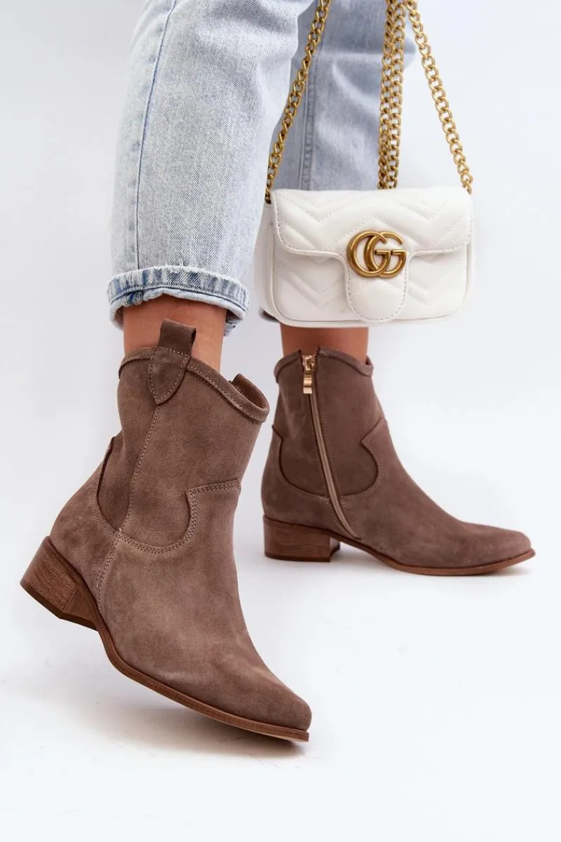 Modne, damskie botki w stylu kowbojek to HIT na wiele sezonów! Wykonane z naturalnego zamszu. Osadzone na niskim obcasie. Zapinane na suwak z boku. Noski w szpic optycznie wysmuklą nogi. Nie zwlekaj dłużej i kup je dziś! Przy wyborze rozmiaru prosimy sugerować się tabelą rozmiarów.