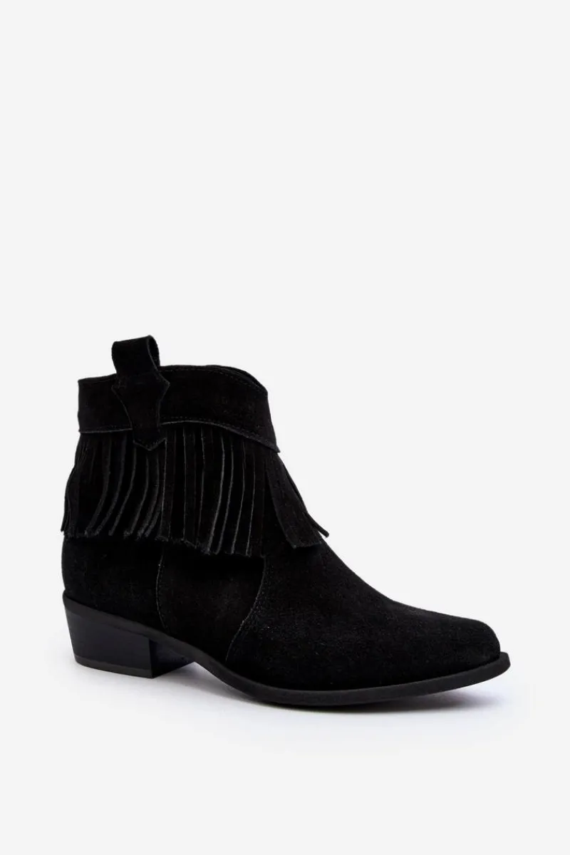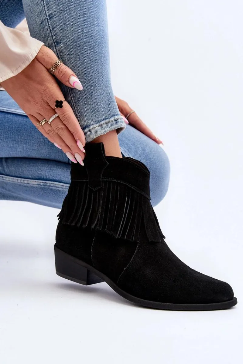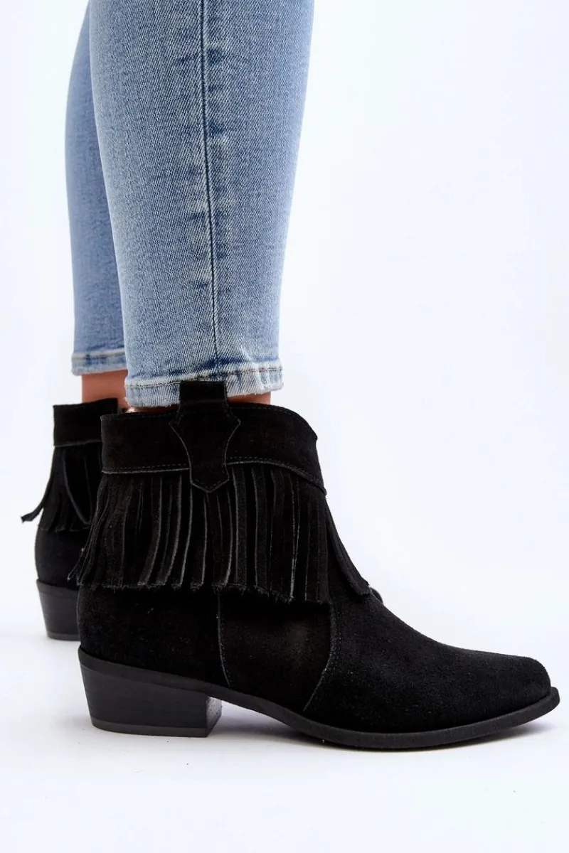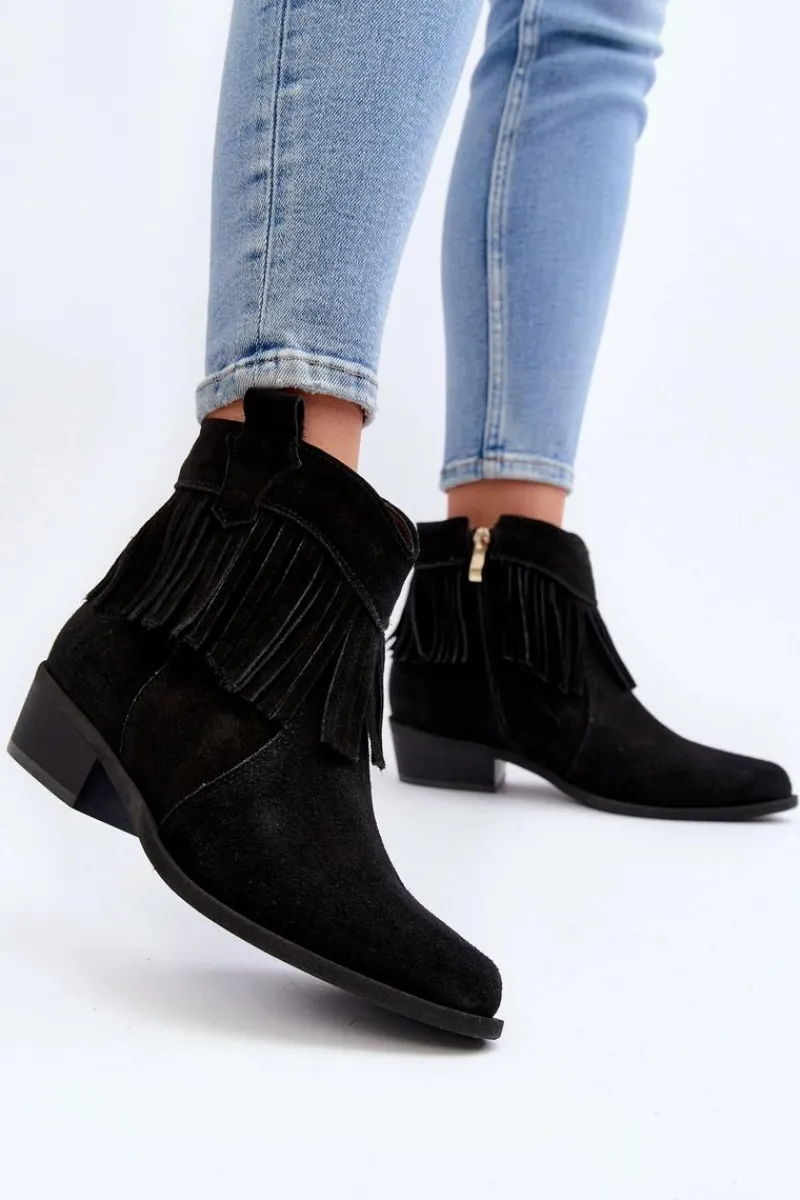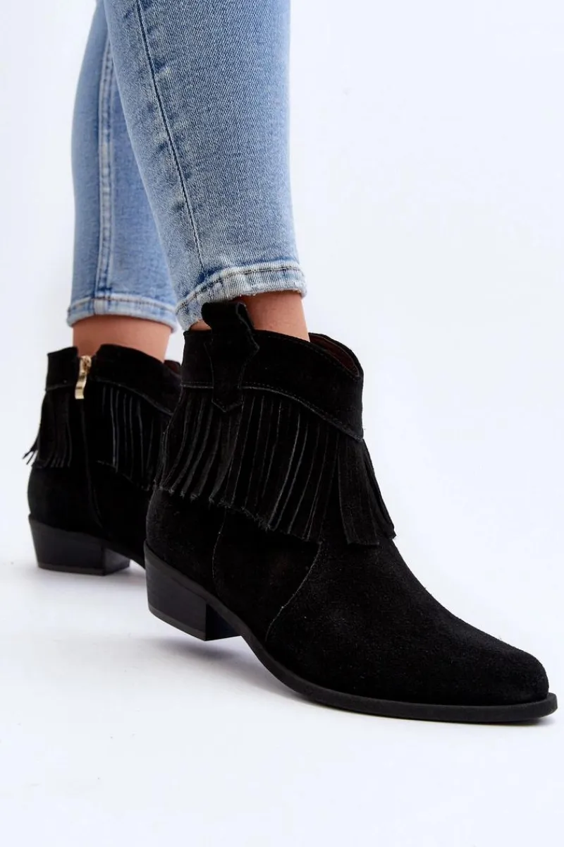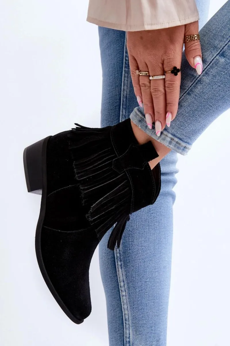 Botki Wiosenne|Botki Skórzane>Zazoo 3430 Zamszowe Botki Damskie Z Frędzlami Czarne