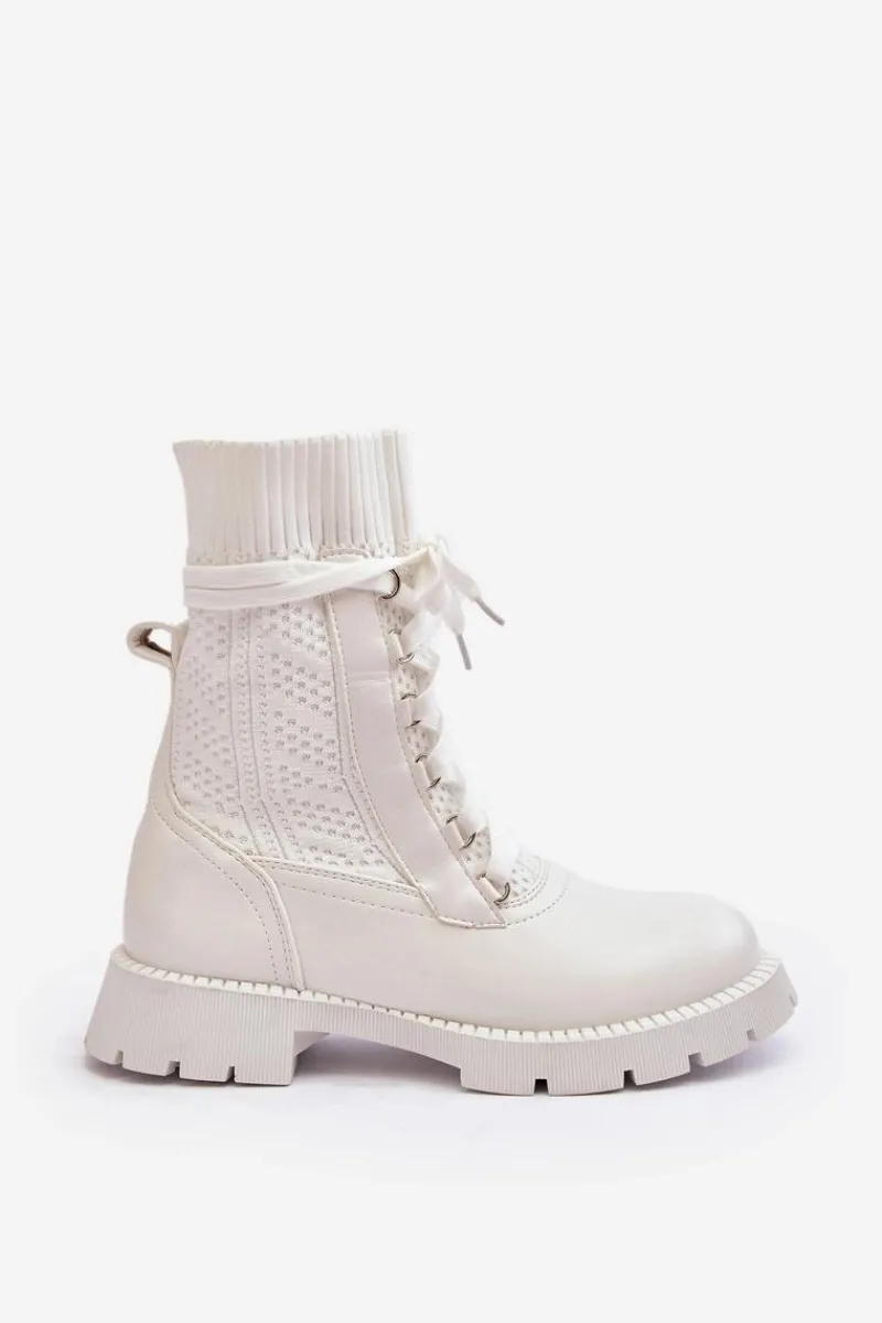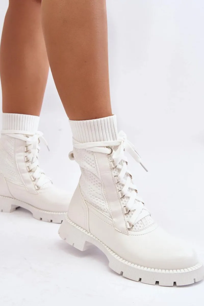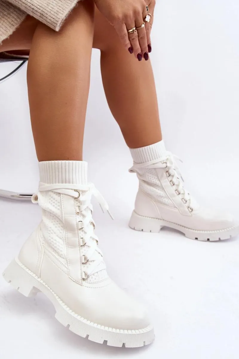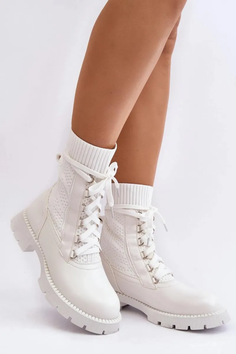 Modne botki damskie zostały wykonane z połączenia eko skóry I materiału tekstylnego. Model wsuwany oraz dodatkowo posiada sznurowanie. Osadzone na platformie oraz płaskim obcasie. Miękka, eko skórzana wkładka zapewni komfort podczas użytkowania. Noski zaokrąglone. Cholewka za kostkę. Koniecznie powinnaś je mieć! Przy wyborze rozmiaru prosimy sugerować się tabelą rozmiarów.