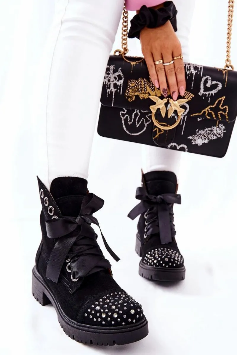Piękne botki renomowanej polskiej marki Lewski Shoes. Buty wykonane z dbałością o każdy szczegół. Wykonane są z naturalnej skóry. Podeszwa z gumowego materiału. Dzięki botkom marki Lewski Shoes z każdym krokiem czujesz się komfortowo. Buty są wiązane na tasiemkę. Przód obuwia jest ozdobiony cyrkoniami. Koniecznie sprawdź całą naszą kolekcję butów marki Lewski Shoes! Przy wyborze rozmiaru prosimy sugerować się tabelą rozmiarów.