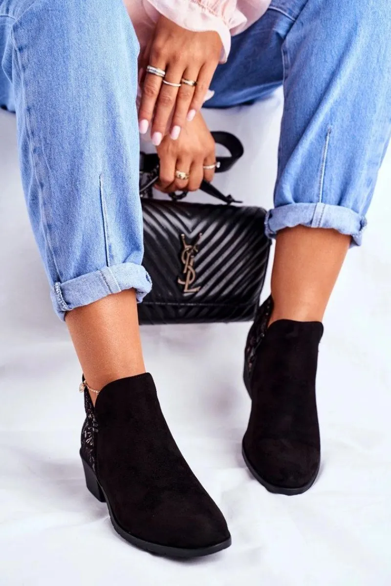 Kolekcja naszych botków znów się powiększyła! Model z najnowszej kolekcji może być Twój! Materiałowa wkładka oraz wnętrze pokryte delikatną tkaniną sprawią że nie będziesz chciała ich zdejmować. Zakładanie ułatwi wszyty na boku suwak. Dzięki pięknie zdobionej pięcie, wpasują się w każde stylizacje, zarówno do jeansów jak i sukienek. Sprawdź całą ofertę botków które posiadamy. Przy wyborze rozmiaru prosimy sugerować się tabelą rozmiarów.