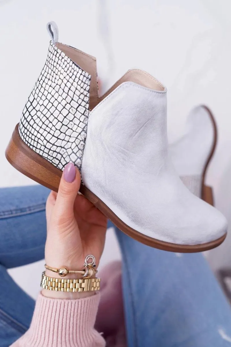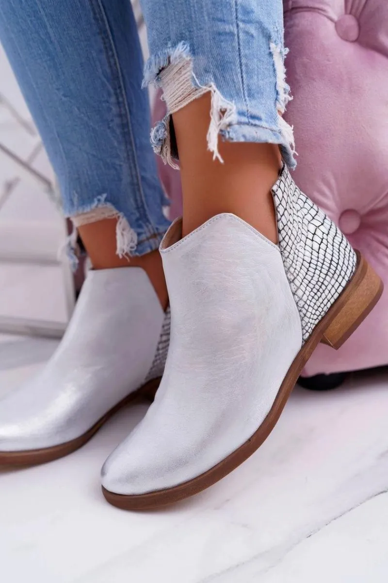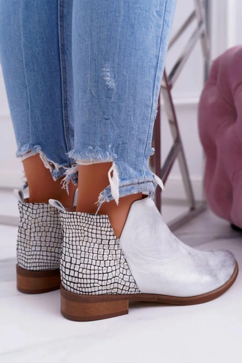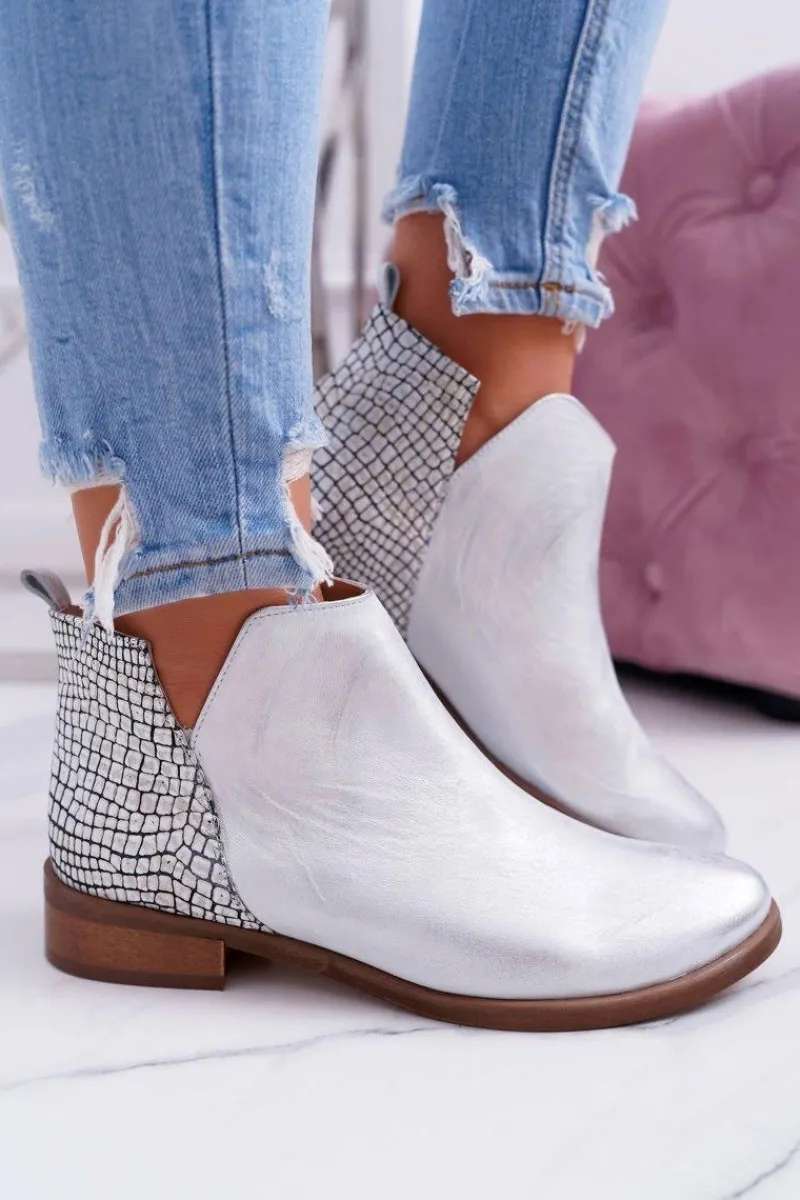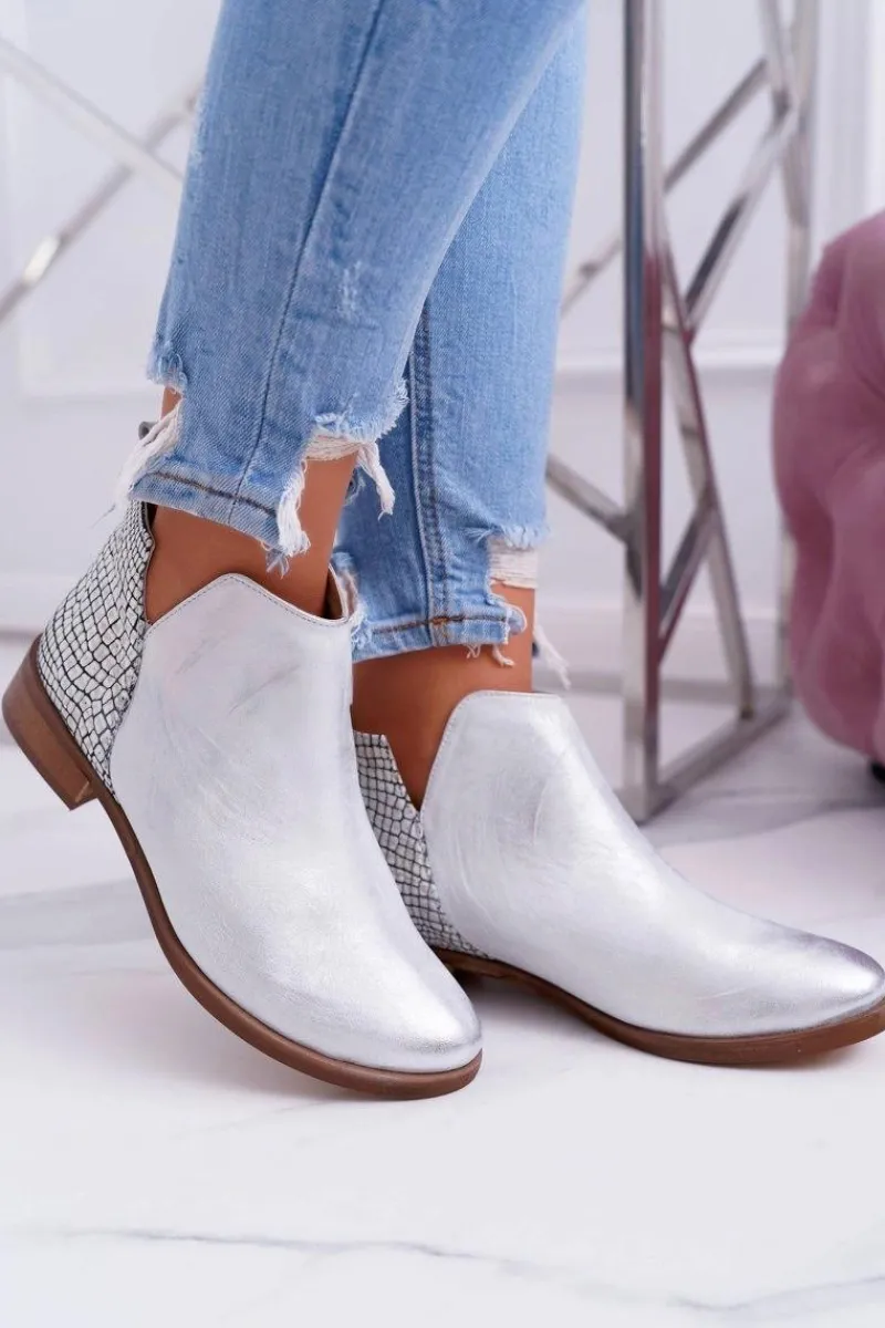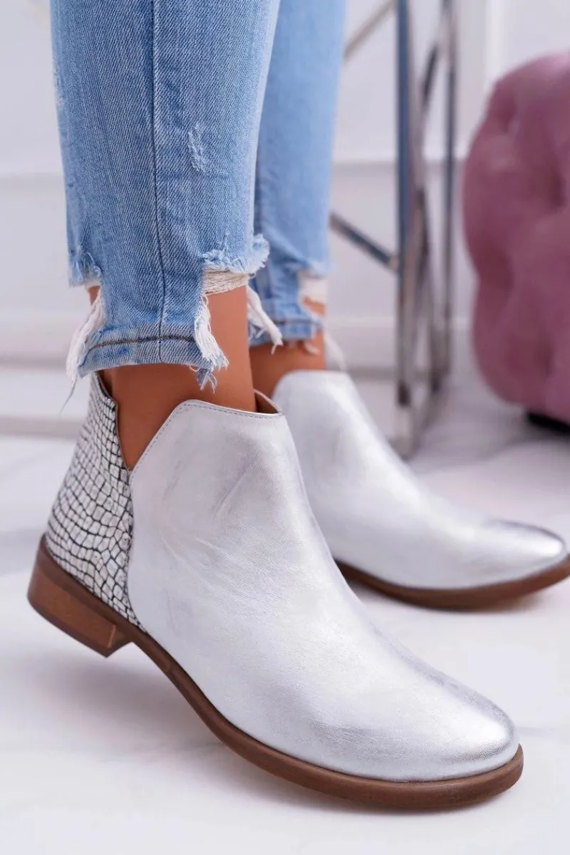 Botki Wiosenne|Brązowe I Beżowe Botki>Boto Botki Damskie Płaski Obcas Wiosenne Skórzane Srebrne Madness