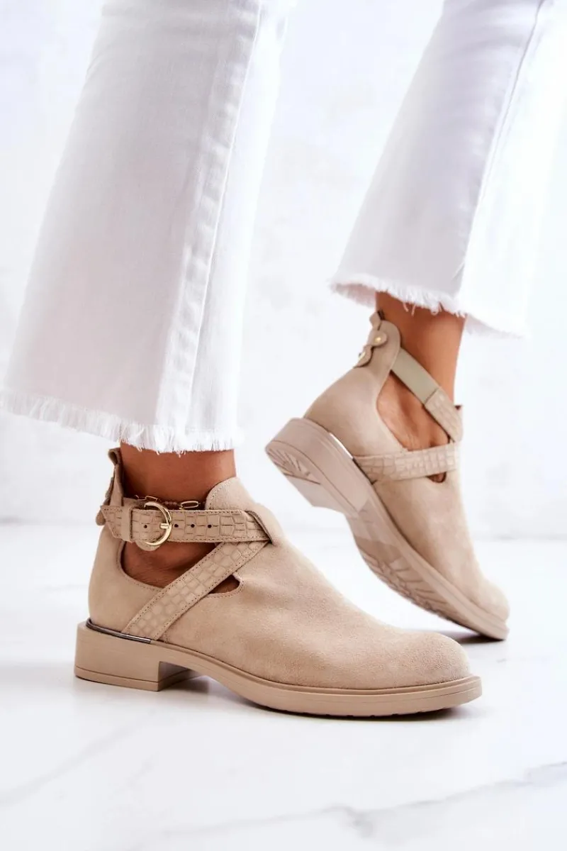 Cudne botki wykonane z naturalnej zamszowej skóry. Wkładka wykonana z naturalnej skóry, co sprawia, że są bardzo komfortowe podczas użytkowania. Z boku cholewki znajdują się wycięcia oraz regulowany pasek zapinany na sprzączkę. Plaski obcas zapewnia stabilizację. Tłoczona faktura oraz modny fason sprawiają, że te buty wyglądają naprawdę wyjątkowo. Nosek w kształcie migdała. Antypoślizgowa podeszwa. Koniecznie sprawdź także pozostałe modele skórzanych butów dostępnych w naszej ofercie! Przy wyborze rozmiaru prosimy sugerować się tabelą rozmiarów.