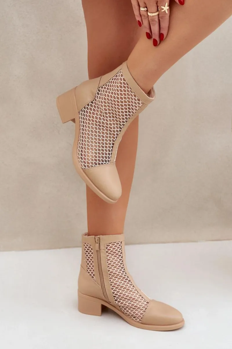 Siateczkowe botki damskie to modna i przewiewna propozycja na cieplejsze dni. Osadzone na niskim obcasie, zapewniają wygodę i stabilność, a zaokrąglone noski gwarantują komfort noszenia. Zapinane na zamek, co ułatwia ich zakładanie i zdejmowanie. Siateczkowa cholewka dodaje lekkości i unikalnego charakteru, sprawiając, że są idealnym wyborem do casualowych i bardziej eleganckich stylizacji. Te botki łączą funkcjonalność z modnym wyglądem, świetnie komponując się w wiosennych i letnich outfitach. Przy wyborze rozmiaru prosimy sugerować się tabelą rozmiarów.