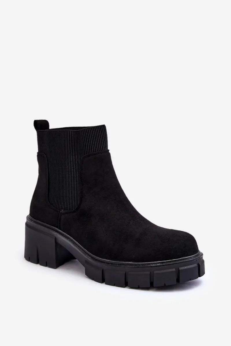 Damskie botki zostały wykonane z eko zamszu. Osadzone na masywnym obcasie oraz platformie. Model wsuwany, noski zaokrąglone. Dodatkowo zapiętek jest usztywniony. Nie czekaj aż znikną i kup już dziś! Przy wyborze rozmiaru prosimy sugerować się tabelą rozmiarów.
