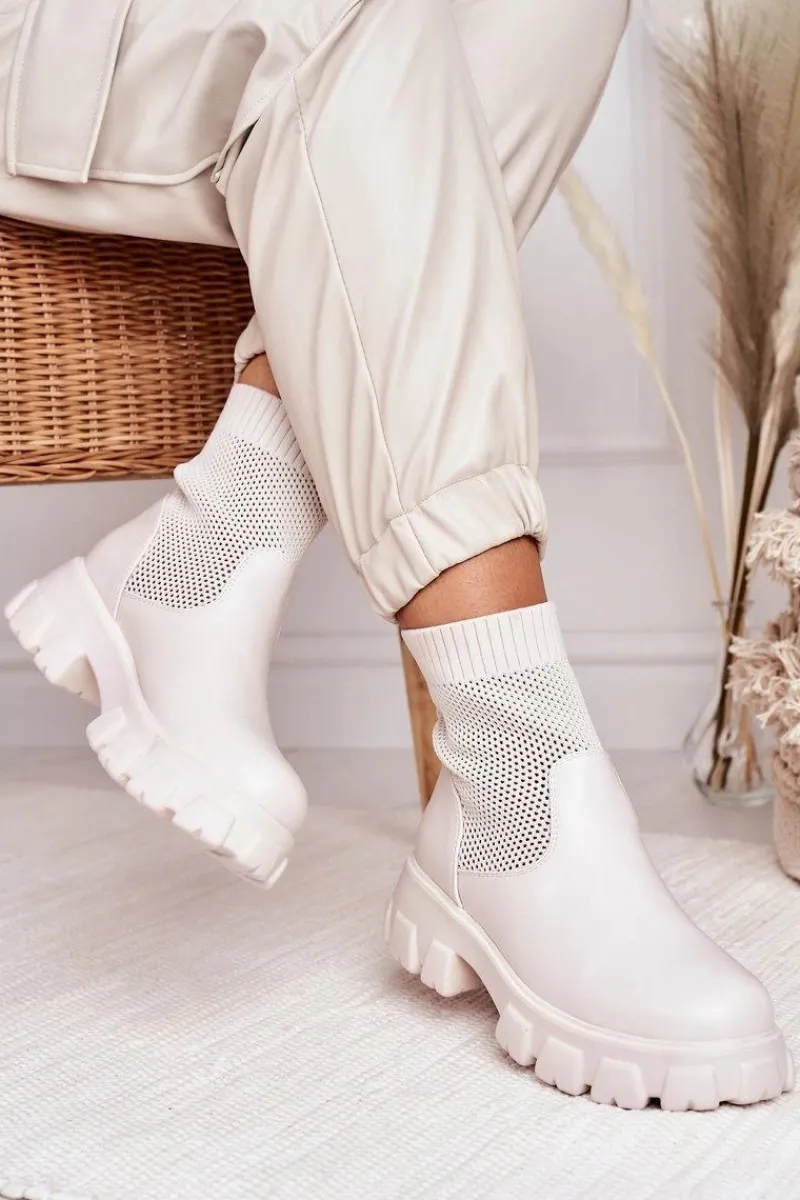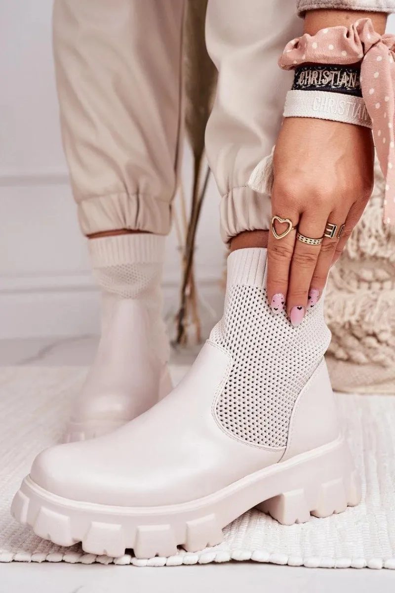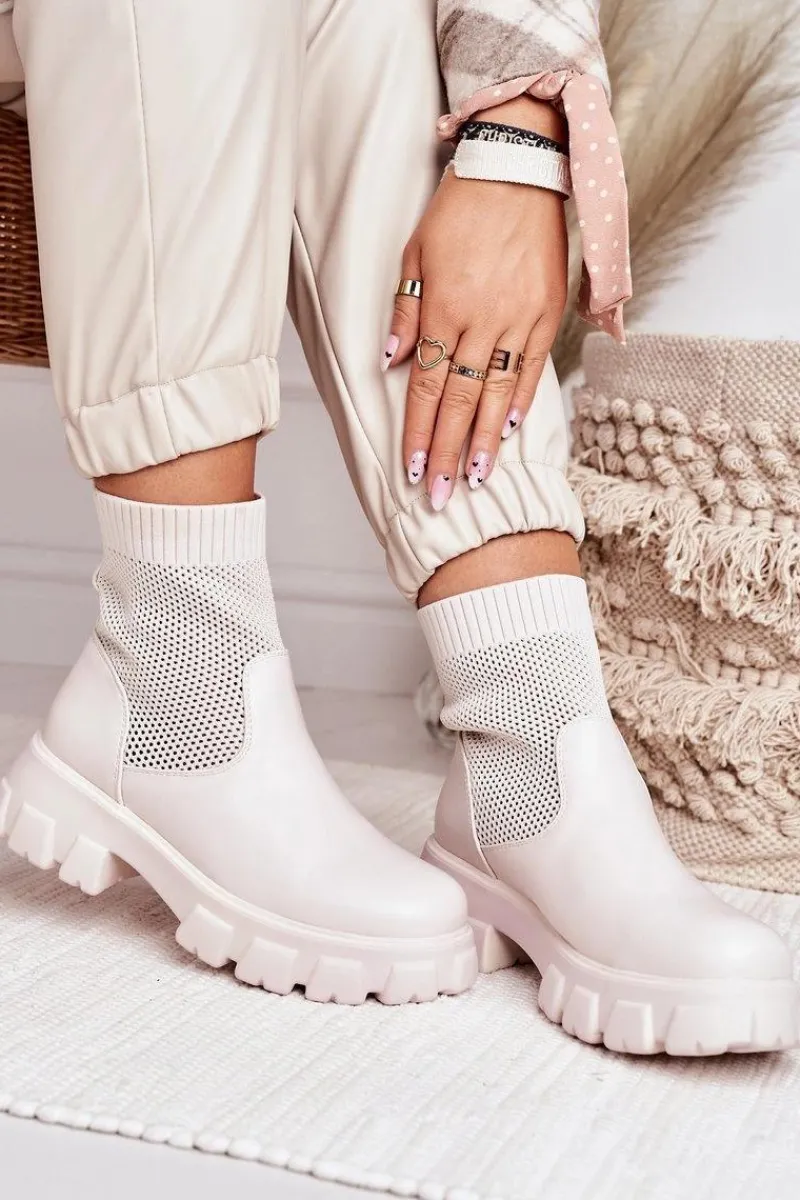 Damskie skarpetkowe botki na platformie. Miękka ażurowa cholewka, oraz masywna podeszwa to 'must have’ w tym sezonie! Buty wykonane są z eko skóry w modnym kolorze. Koniecznie sprawdź całą naszą kolekcję damskich botków. Przy wyborze rozmiaru prosimy sugerować się tabelą rozmiarów.