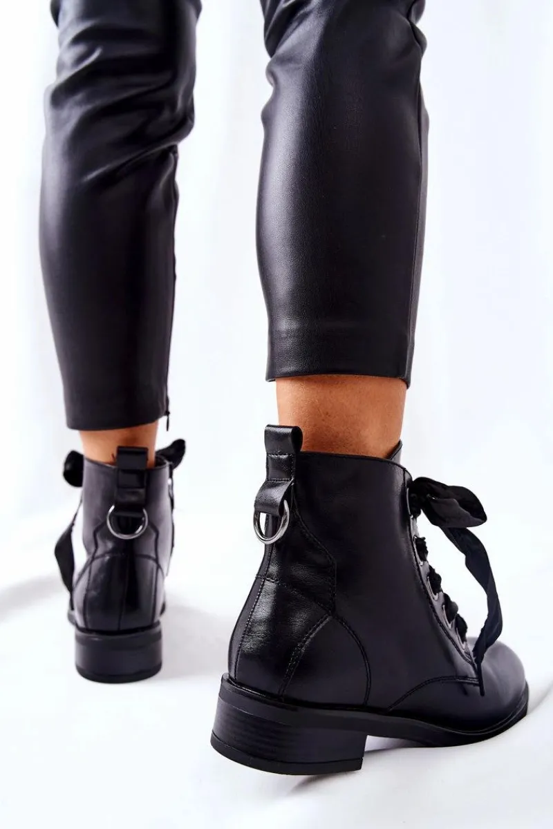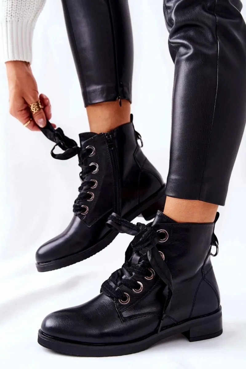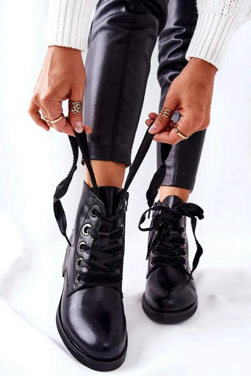 Botki wykonane ze skóry ekologicznej. Posiadają suwak oraz przyozdobione wiązanie, co ułatwi zakładanie. Ocieplane przyjemnym w dotyku kocem obuwniczym. Dzięki płaskiemu obcasowi, komfort noszenia jest jeszcze większy. Koniecznie sprawdź naszą całą kolekcje! Przy wyborze rozmiaru prosimy sugerować się tabelą rozmiarów.