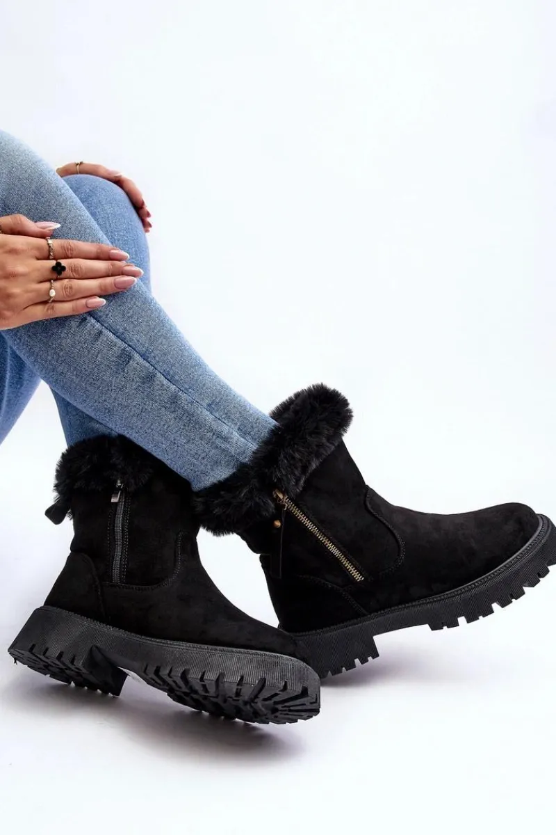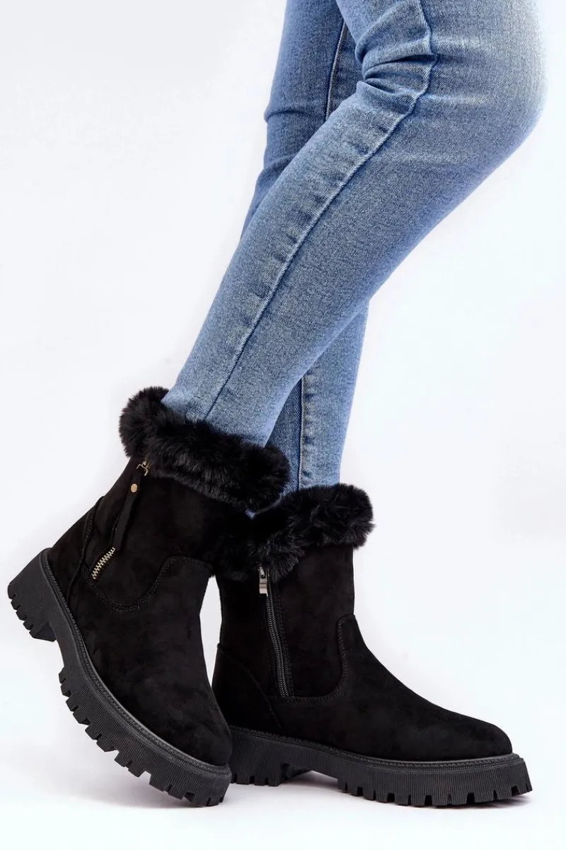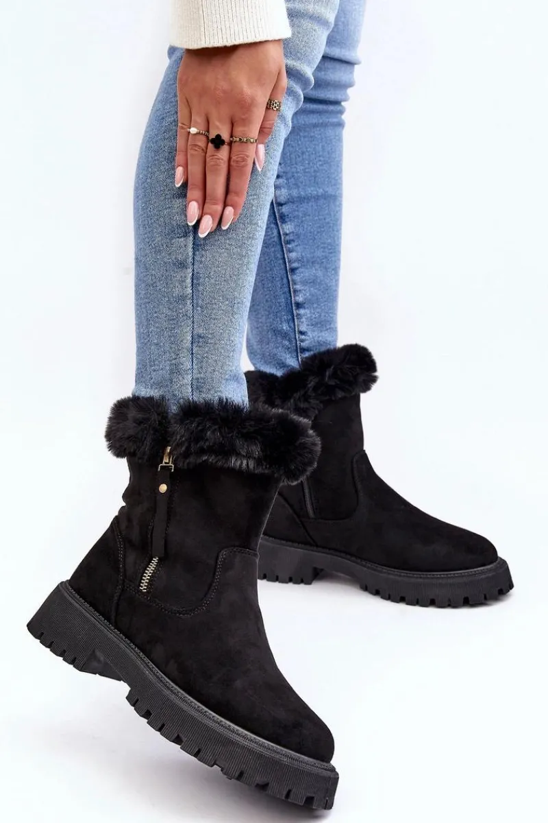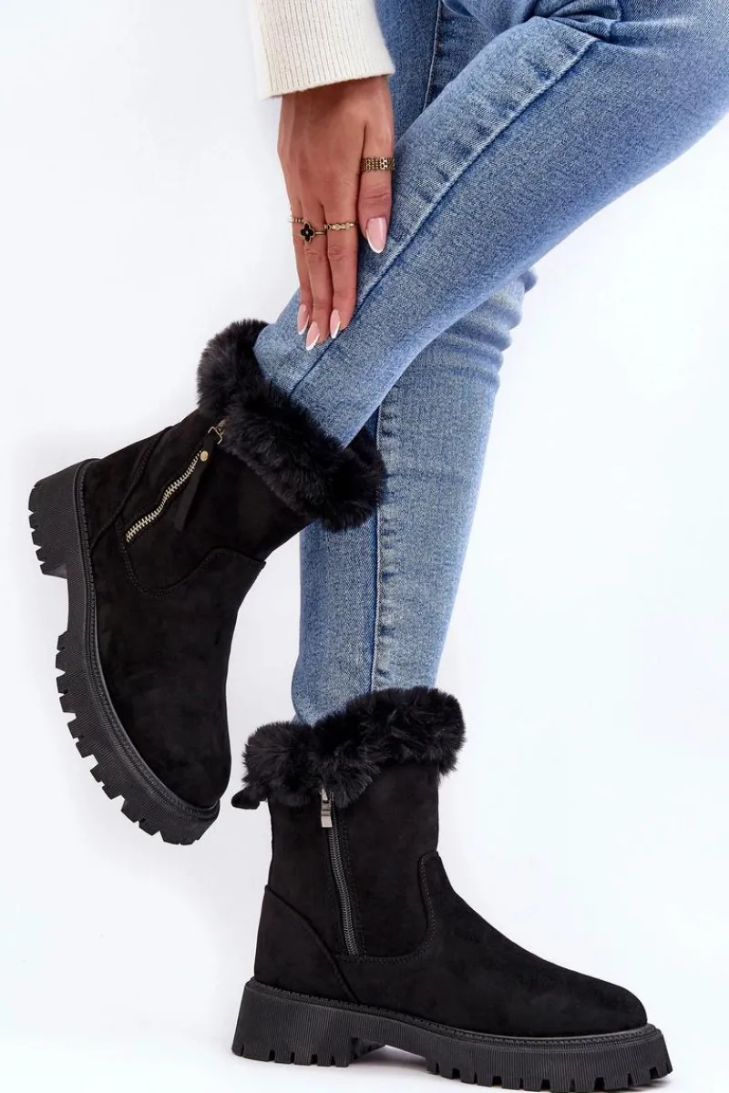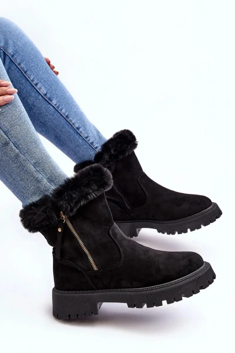 Botki Zamszowe Damskie Z Futerkiem Czarne Hasiva Damskie Botki Ocieplane|Damskie Trapery