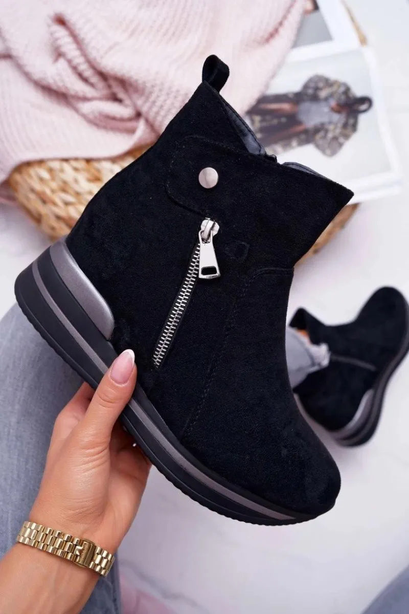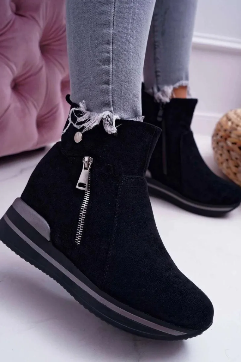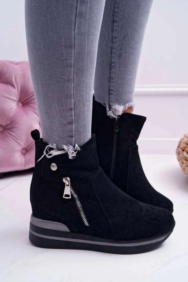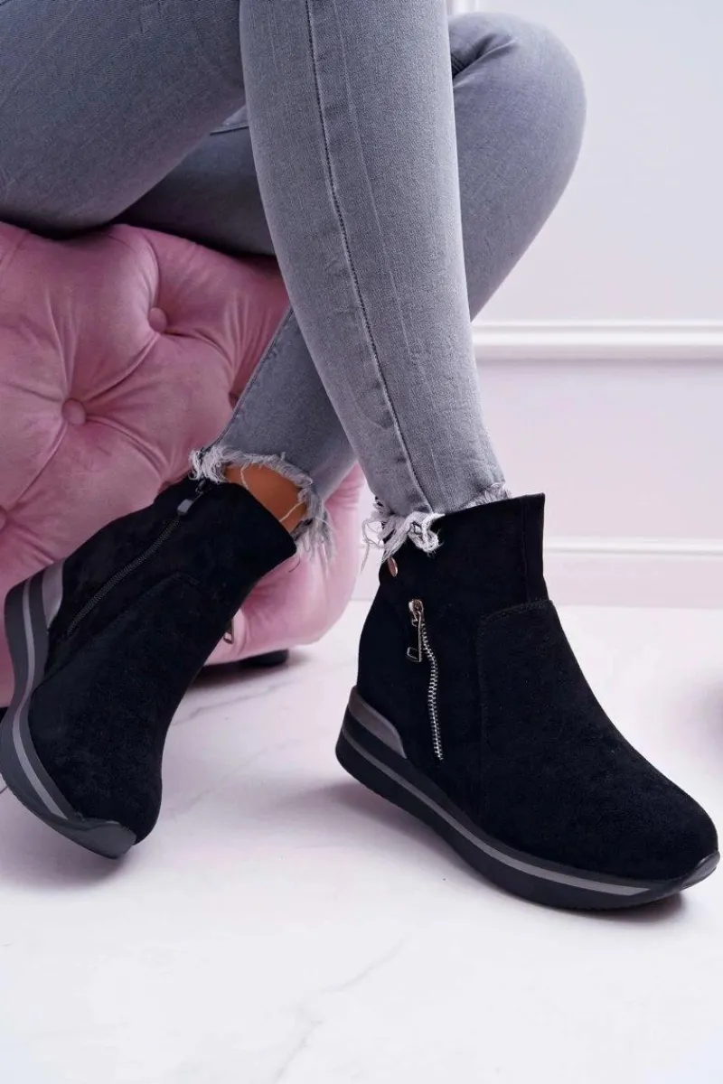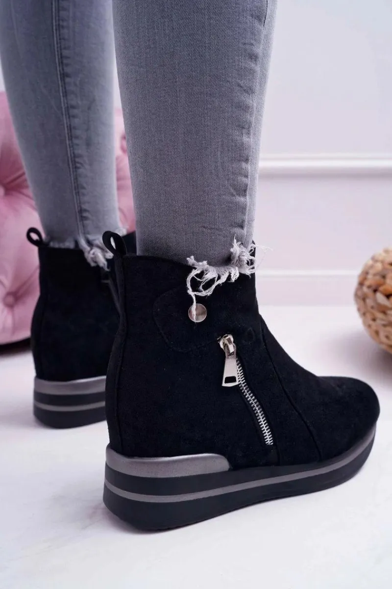Botki Zamszowe|Botki Płaskie>Boto Botki Damskie Ukryty Koturn Czarne Crazyness