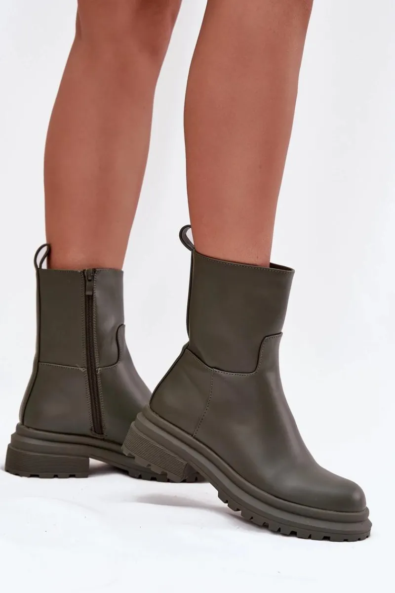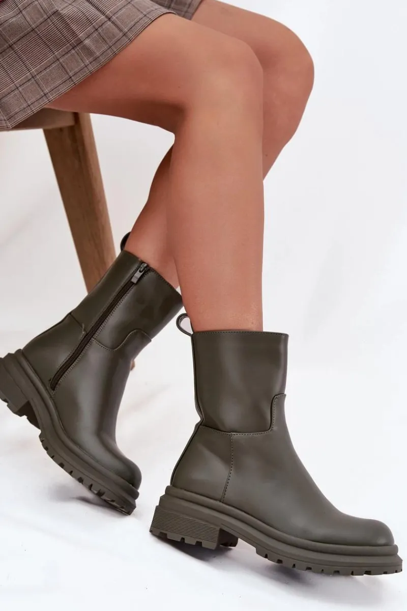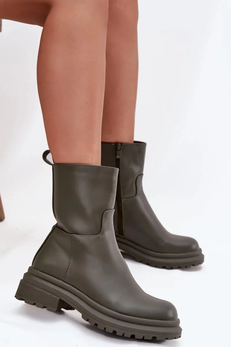 Damskie botki z eko skóry to klasyczny wybór na co dzień. Posiadają płaski obcas oraz platformę, które zapewniają stabilność i komfort przez cały dzień. Zamek błyskawiczny ułatwia szybkie zakładanie i zdejmowanie. Idealne do codziennych looków, te botki to must-have w każdej szafie. Przy wyborze rozmiaru prosimy kierować się tabelą rozmiarów.