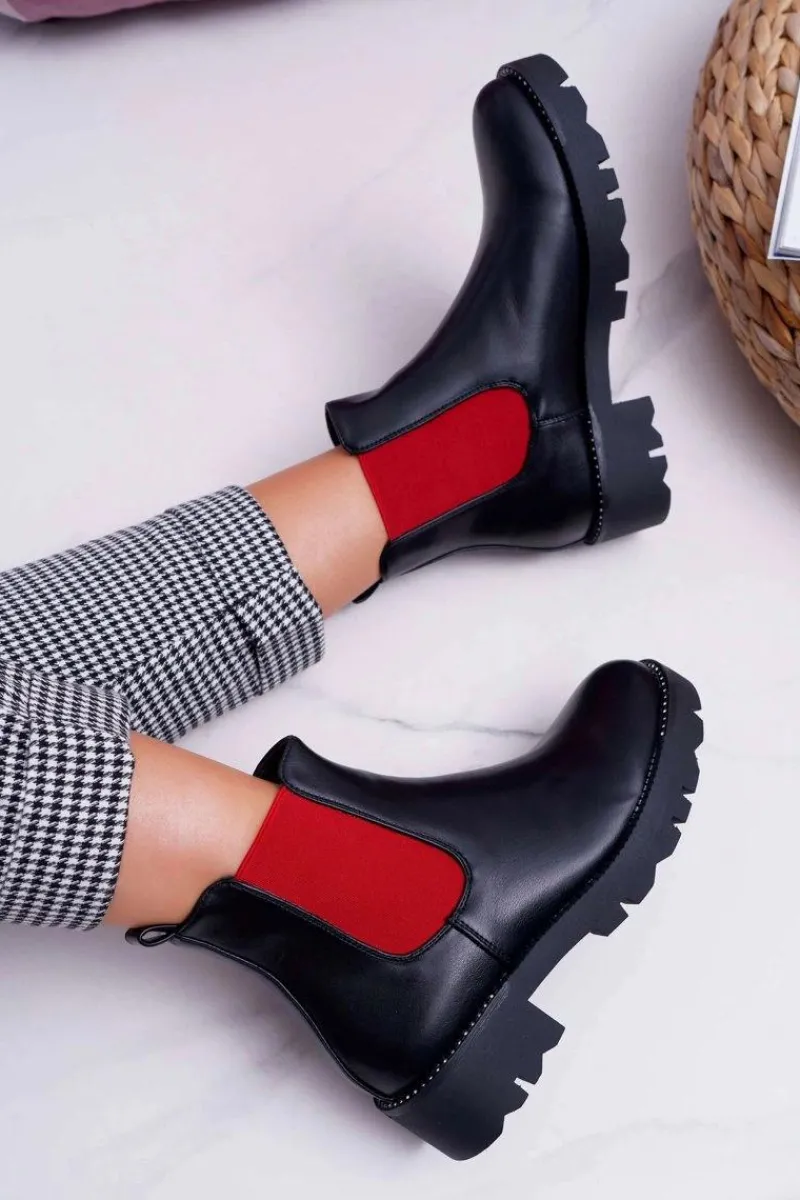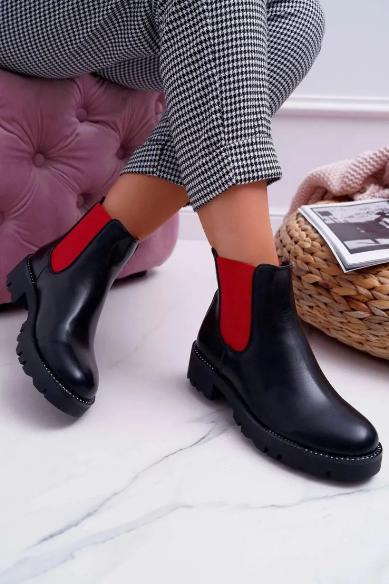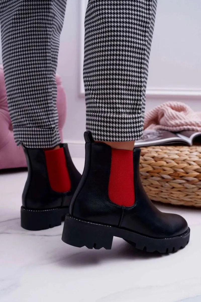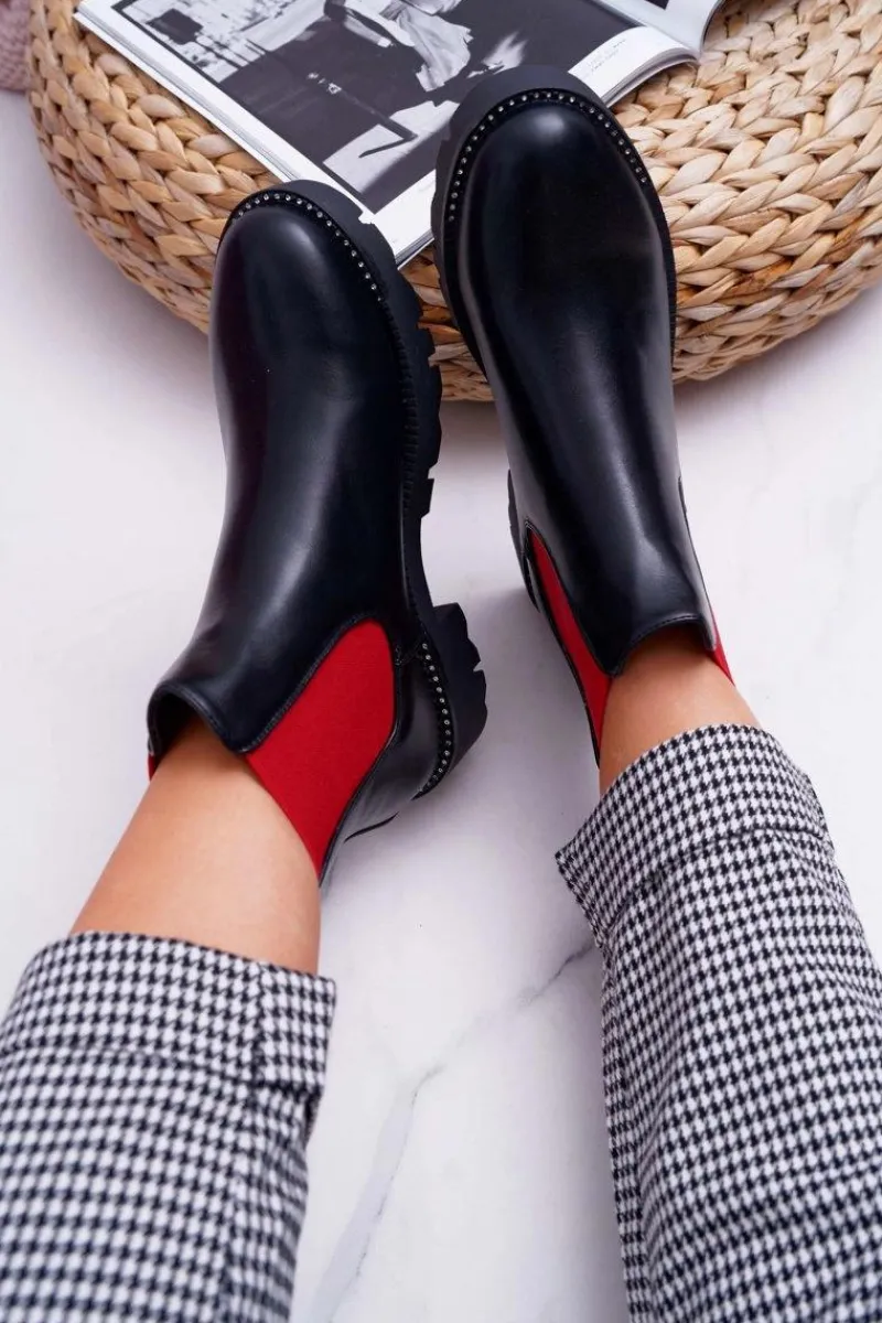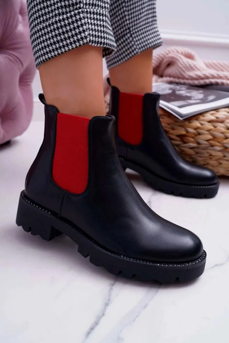 Botki Zimowe Damskie|Botki Płaskie>Boto Damskie Botki Sztyblety Czerwone Gumki Czarne Superpower