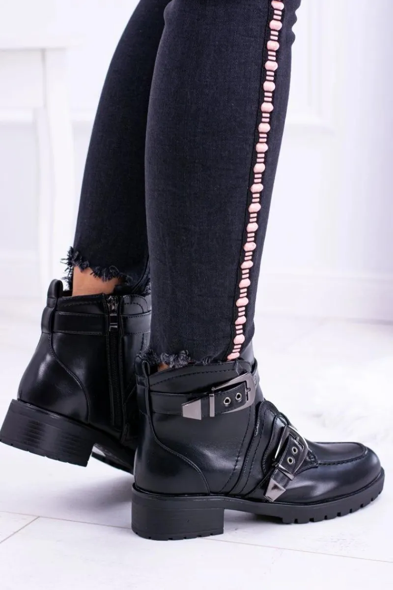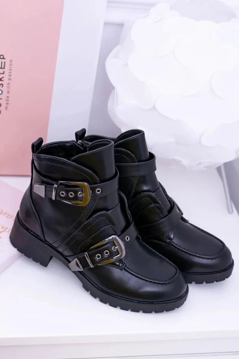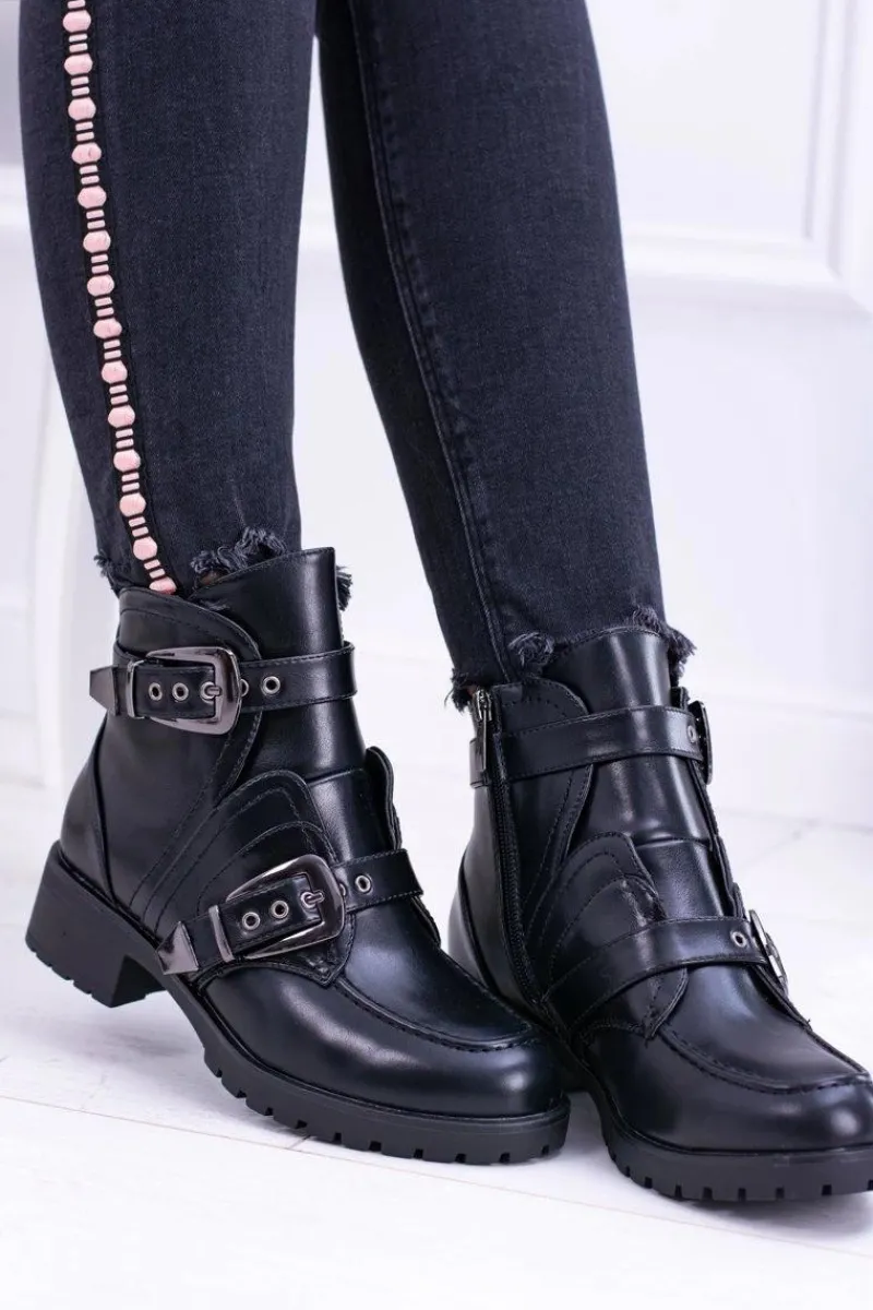 Botki Zimowe Damskie|Botki Płaskie>Boto Damskie Botki Z Klamrami Ocieplane Skadi