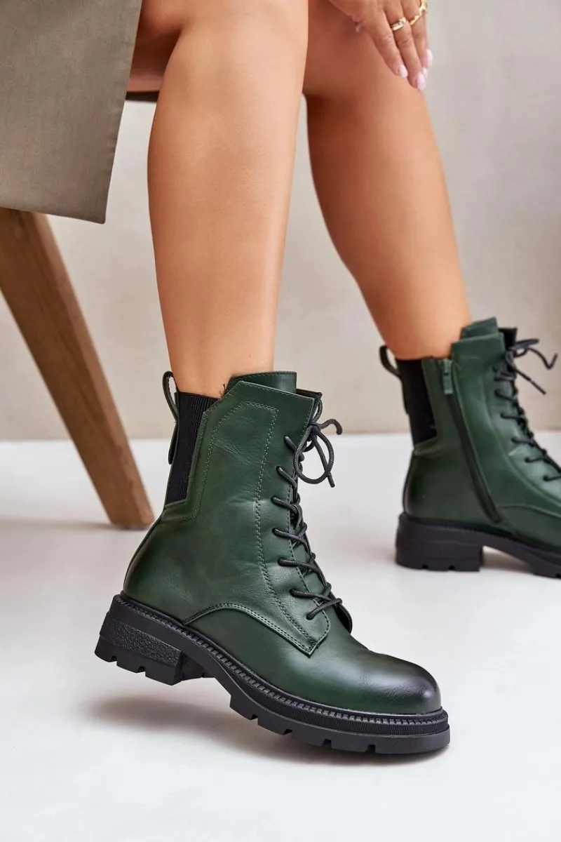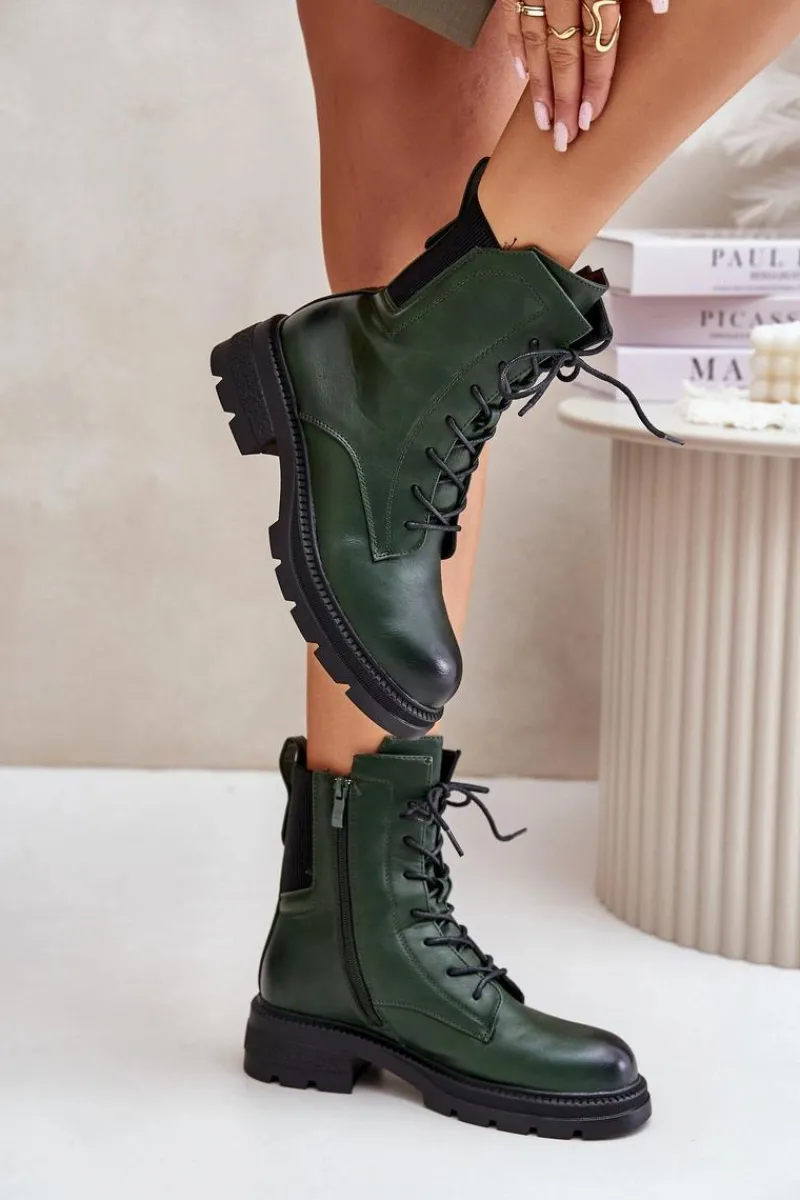 Botki workery od marki Jezzi to stylowe i funkcjonalne obuwie idealne na chłodniejsze dni. Model ocieplany, zapewnia ciepło i wygodę. Posiada zarówno zamek, jak i sznurowanie, co ułatwia zakładanie i dopasowanie do stopy. Zaokrąglone noski dodają im klasycznego, uniwersalnego wyglądu. To doskonały wybór dla kobiet ceniących komfort i modny, casualowy styl w codziennych stylizacjach. Przy wyborze rozmiaru prosimy sugerować się tabelą rozmiarów.