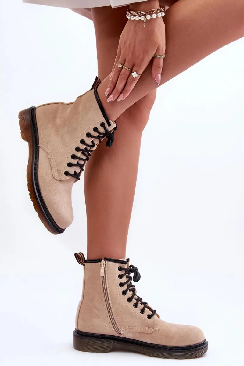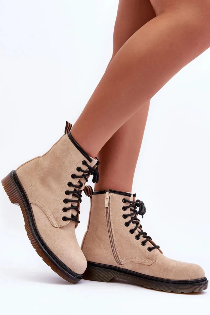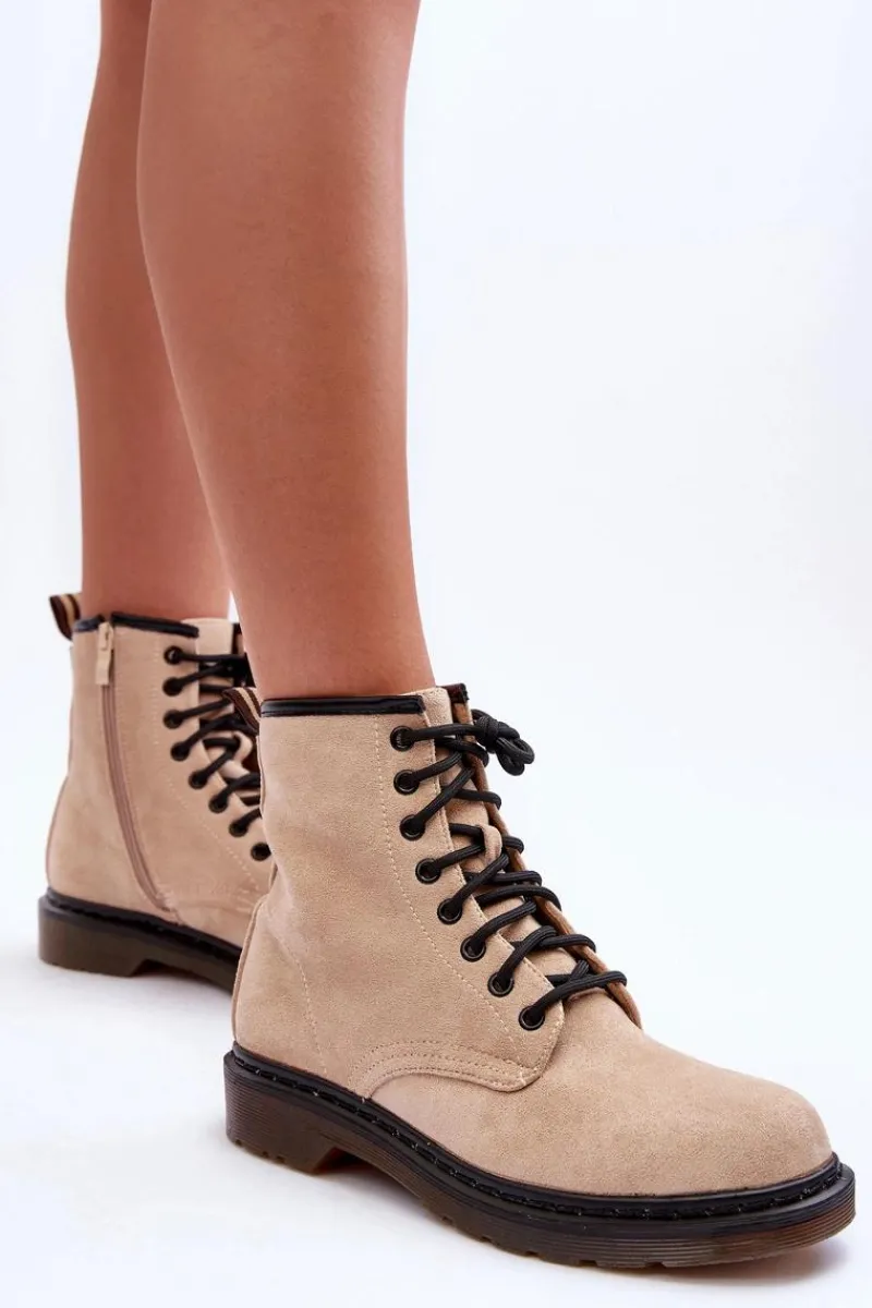 Botki Zimowe Damskie|Botki Płaskie>Boto Zamszowe Botki Workery Na Płaskim Obcasie Beżowe Asteoris