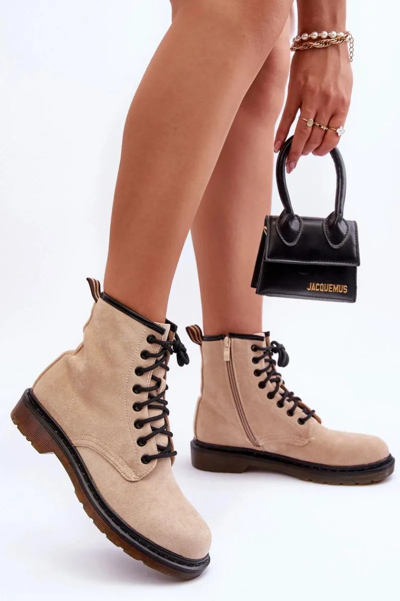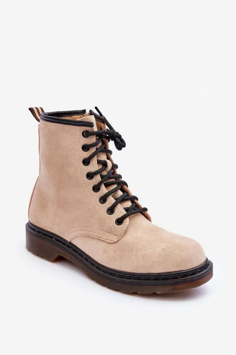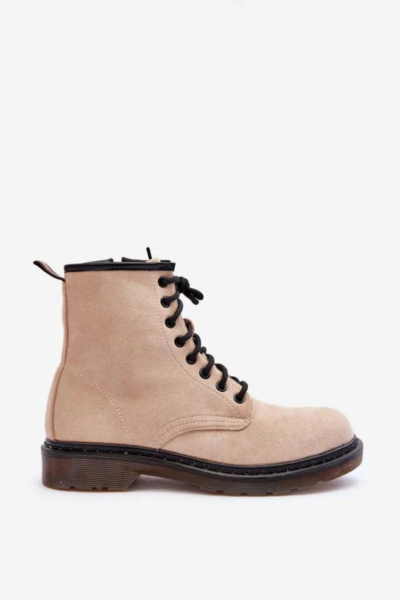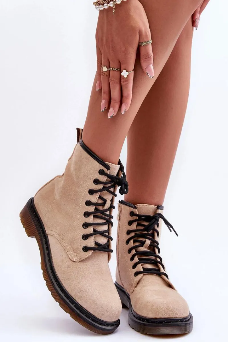 Botki Zimowe Damskie|Botki Płaskie>Boto Zamszowe Botki Workery Na Płaskim Obcasie Beżowe Asteoris