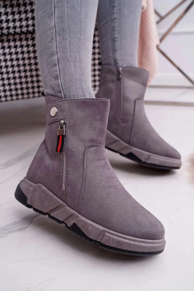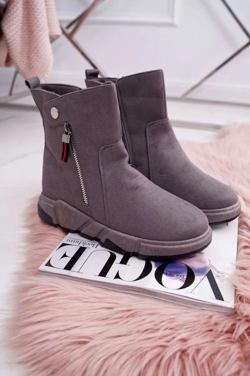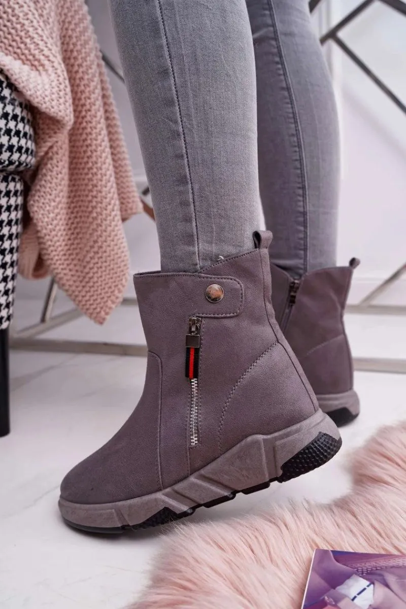 Botki Zimowe Damskie|Botki Zamszowe>Boto Damskie Botki Sportowe Ocieplane Szary SJ1938 Nefera