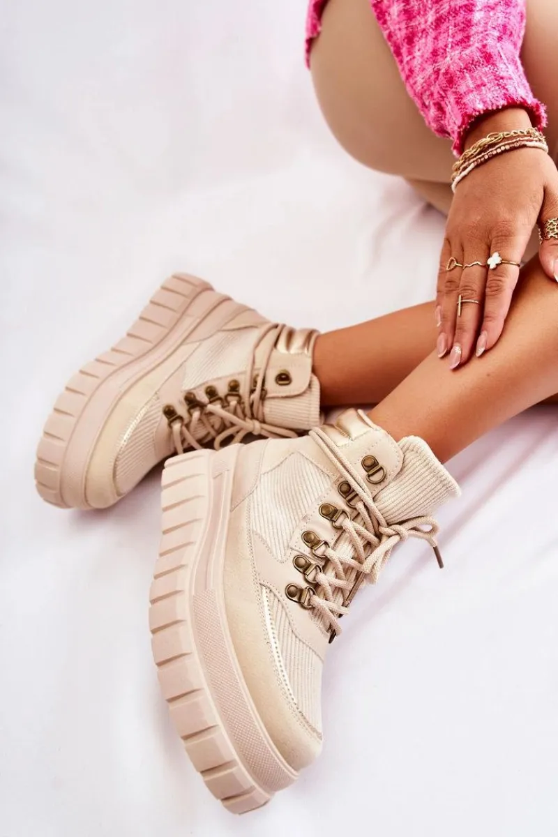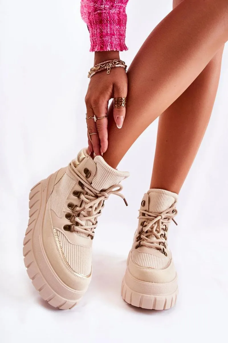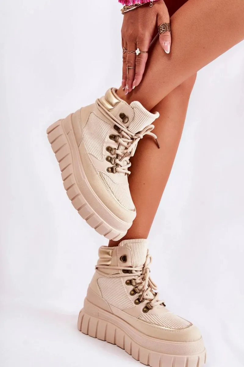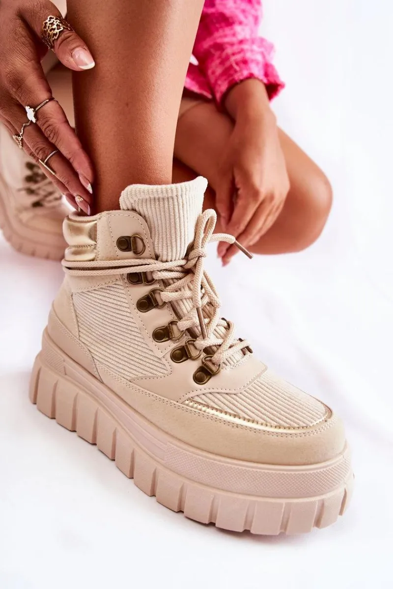 Botki Zimowe Damskie|Brązowe I Beżowe Botki>Boto Modne Damskie Botki Na Platformie Beżowe Magnific