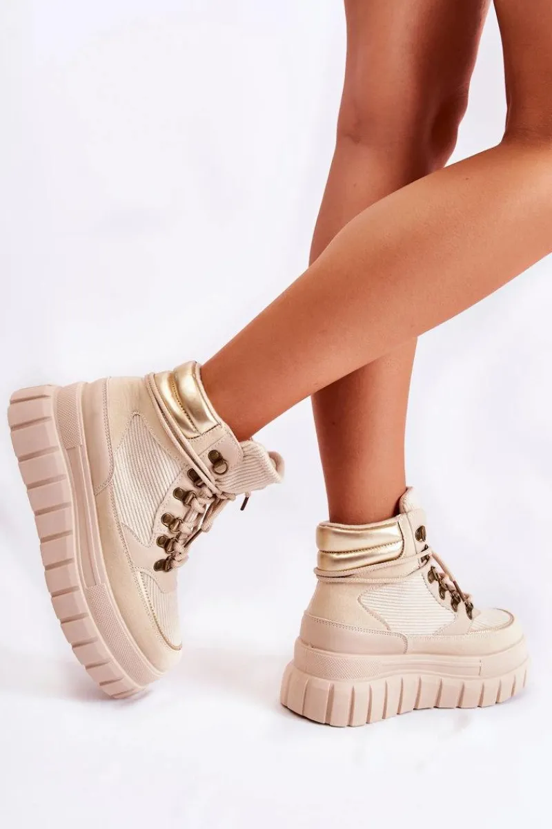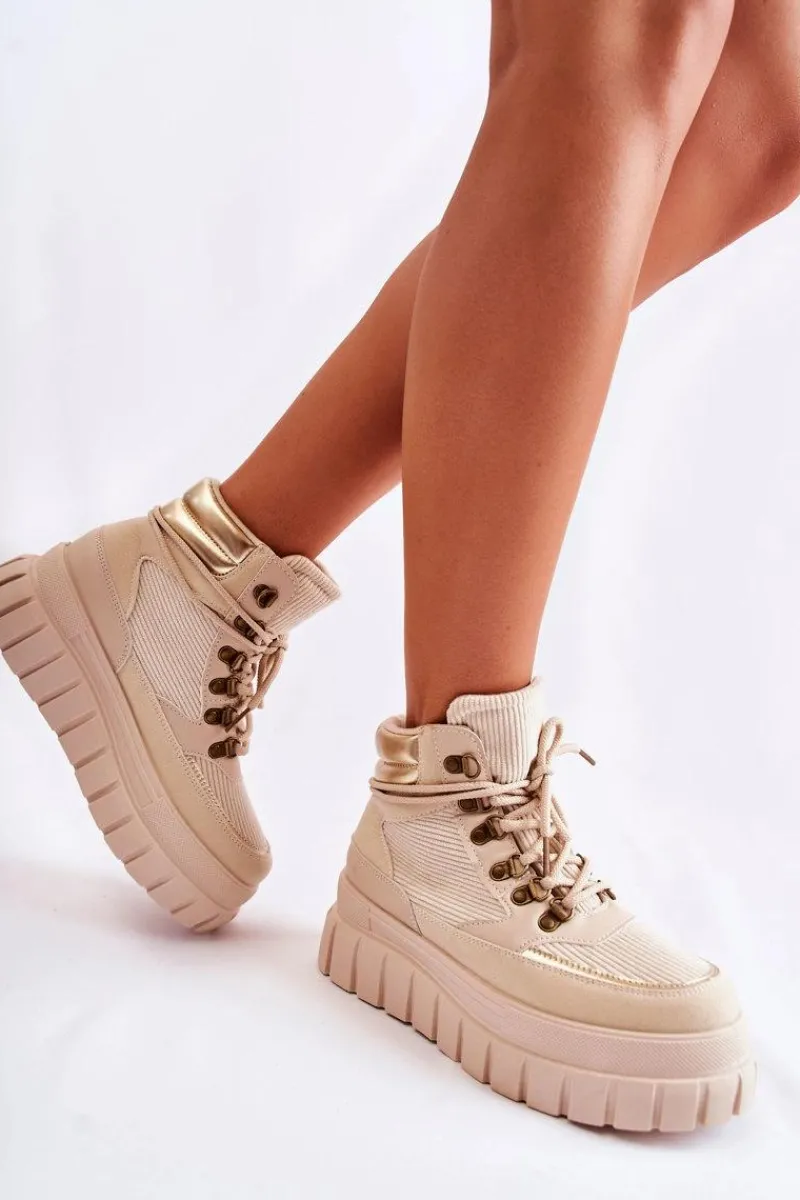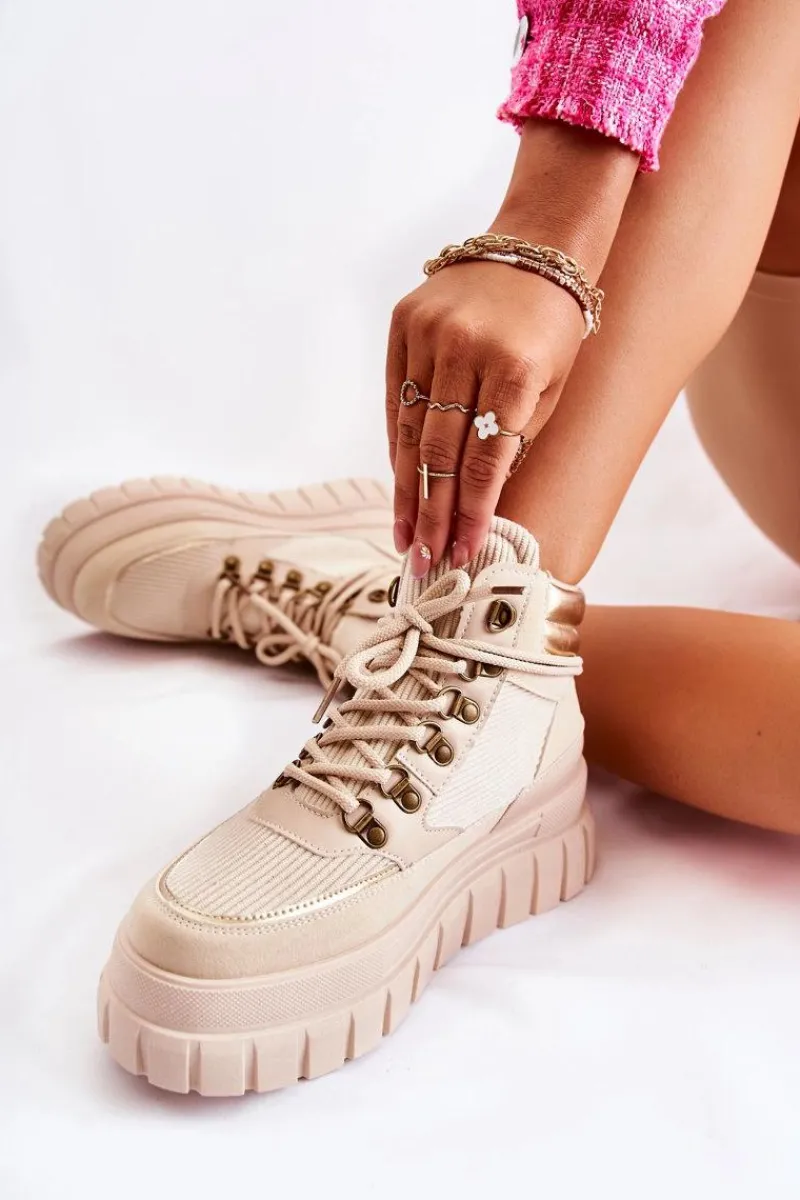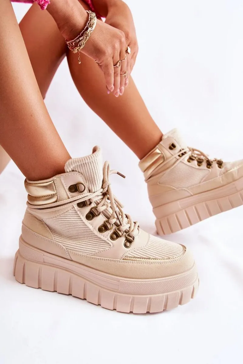Botki Zimowe Damskie|Brązowe I Beżowe Botki>Boto Modne Damskie Botki Na Platformie Beżowe Magnific