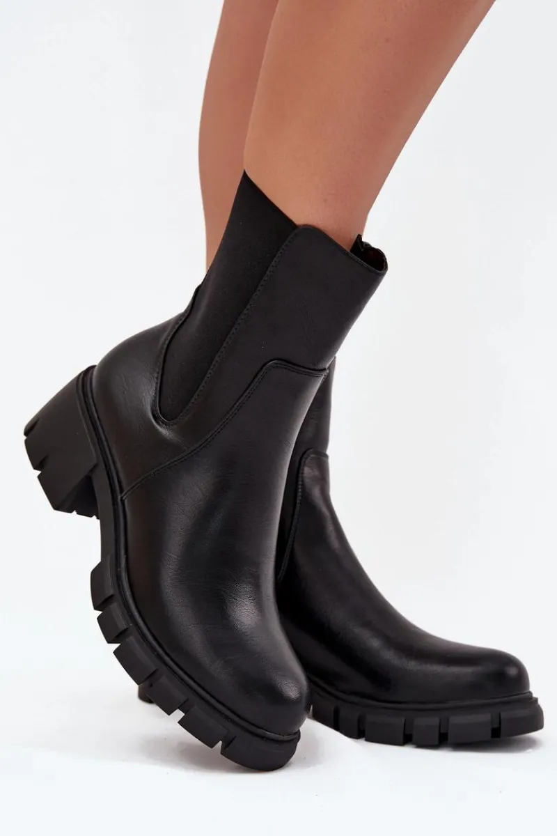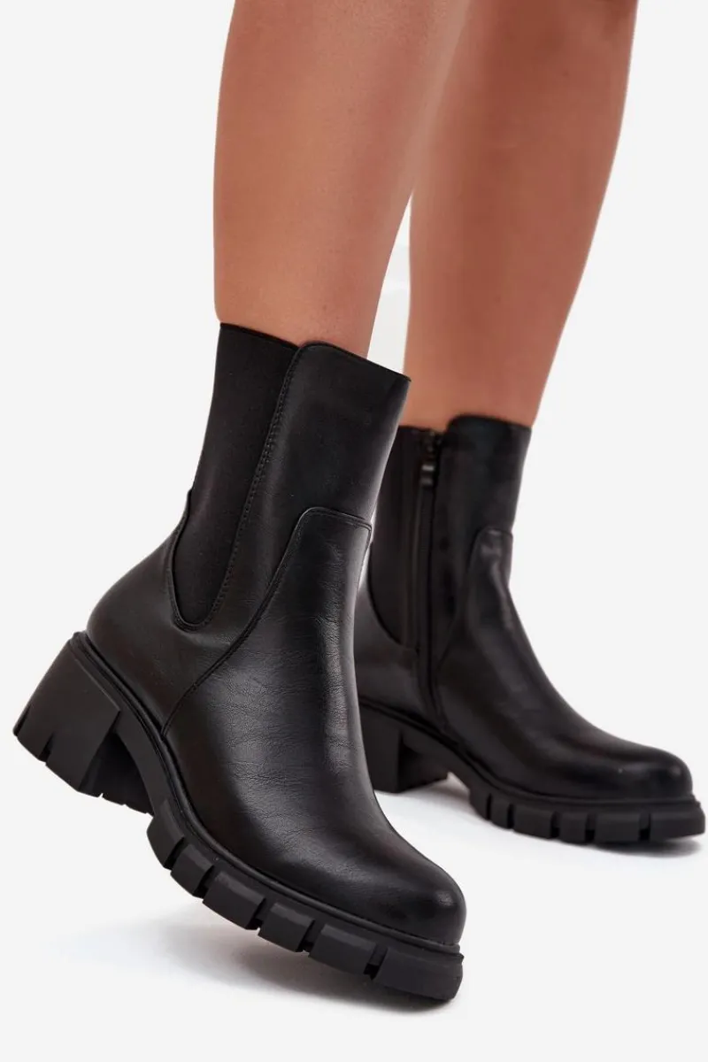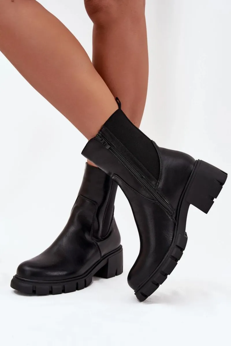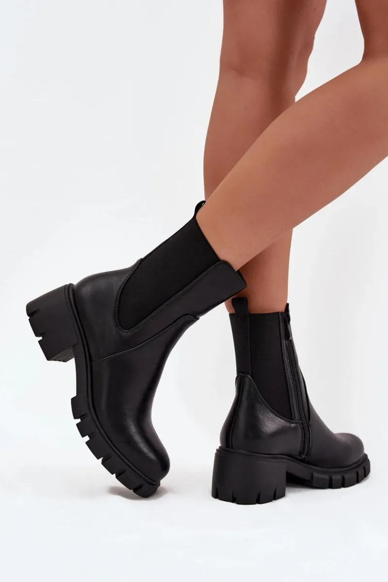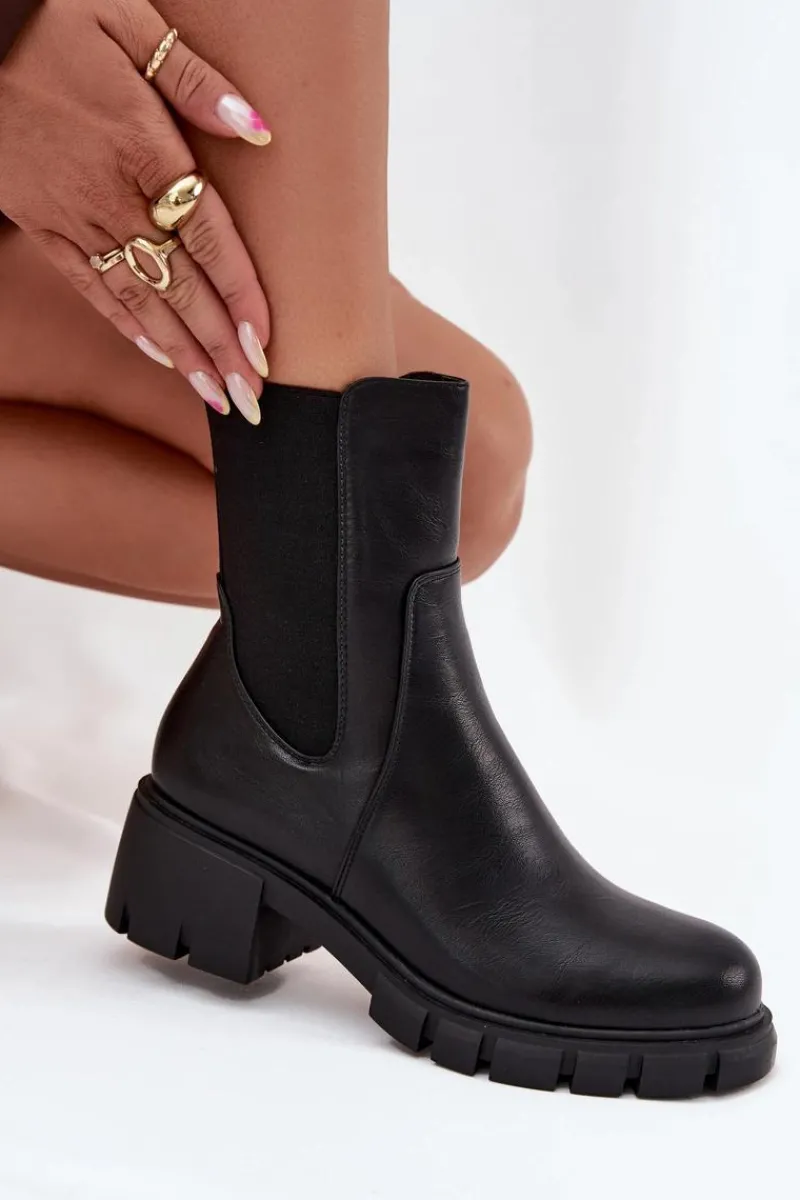 Botki damskie marki Jezzi wykonane z wysokiej jakości eko skóry. Osadzone na stabilnym obcasie typu klocek, zapewniają komfort noszenia przez cały dzień. Cholewka została wzbogacona o elastyczną wstawkę, która ułatwia dopasowanie do łydki, a zamek po boku pozwala na szybkie zakładanie i zdejmowanie obuwia. Zaokrąglone noski dodają klasycznego charakteru, a ocieplenie gwarantuje ciepło w chłodniejsze dni. Idealne do jesiennych i zimowych stylizacji. Przy wyborze rozmiaru prosimy sugerować się tabelą rozmiarów.
