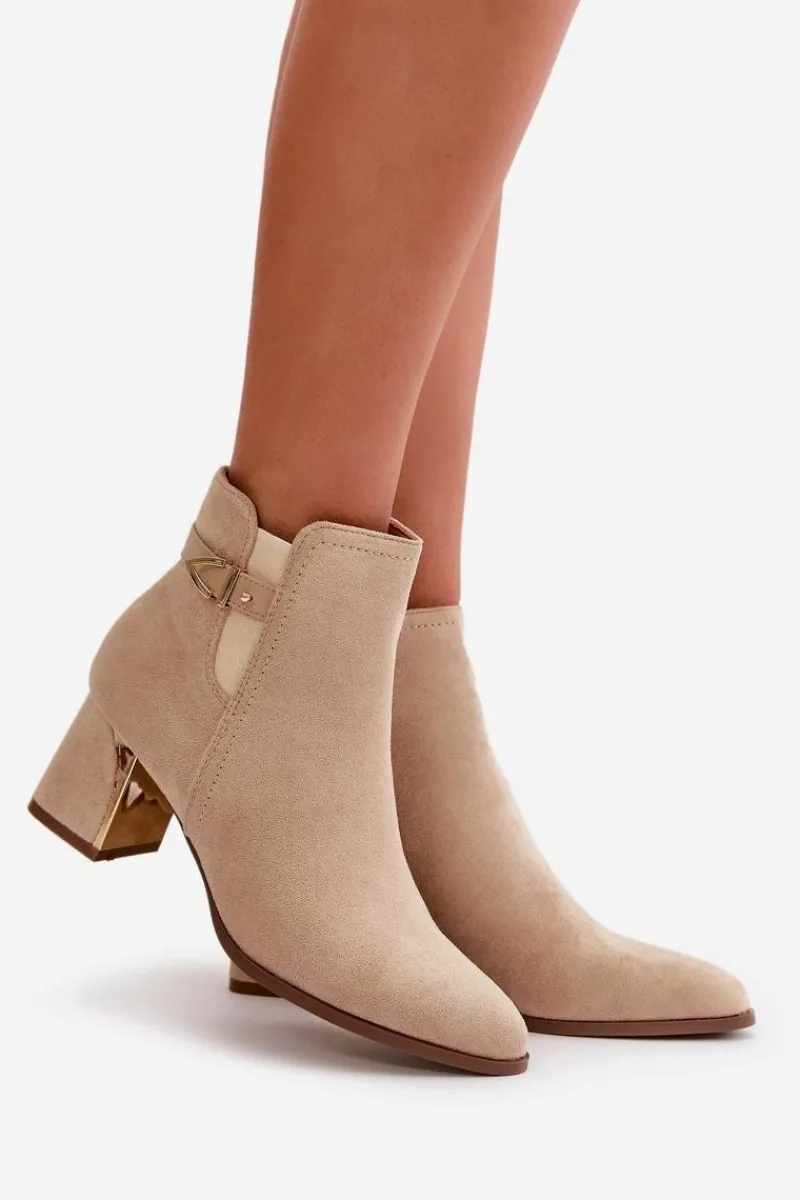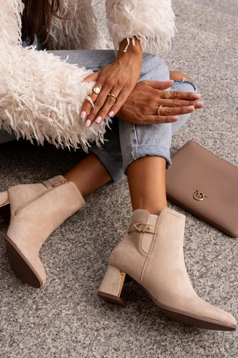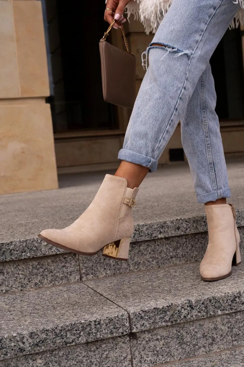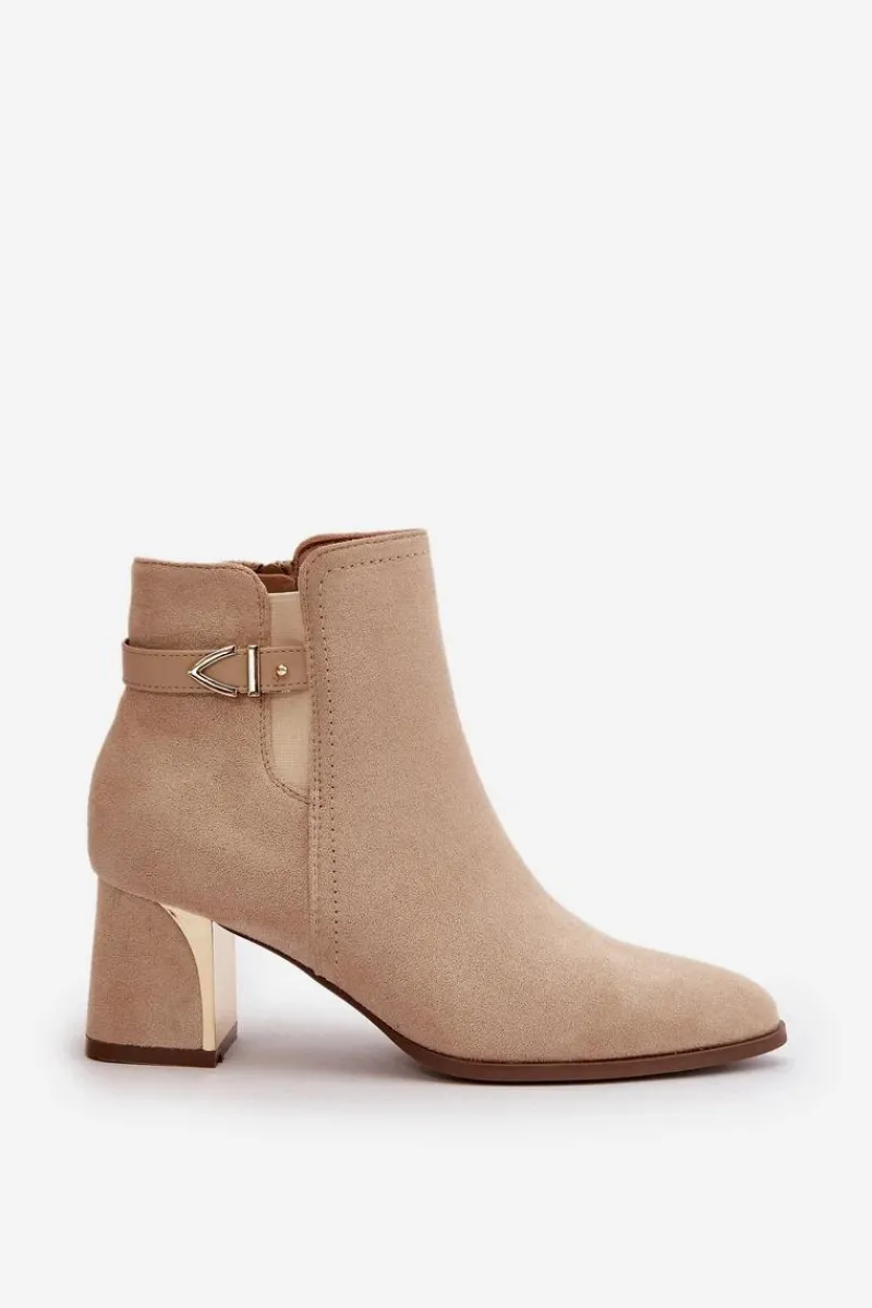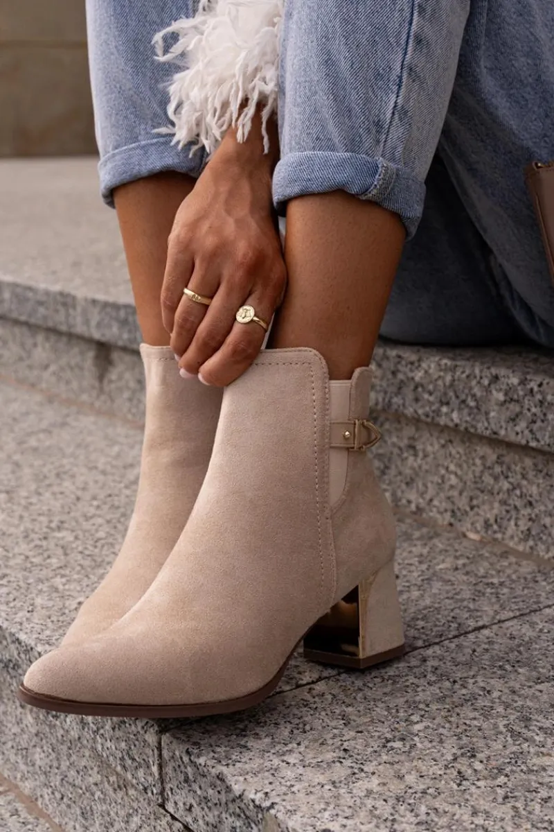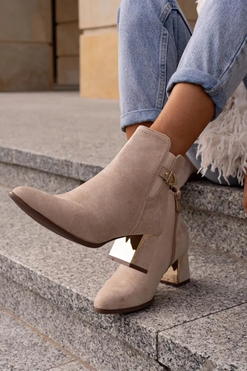 Boto Botki Damskie Na Słupku Zapinane Na Zamek Eko Zamszowe Jasnobeżowe Bonucci