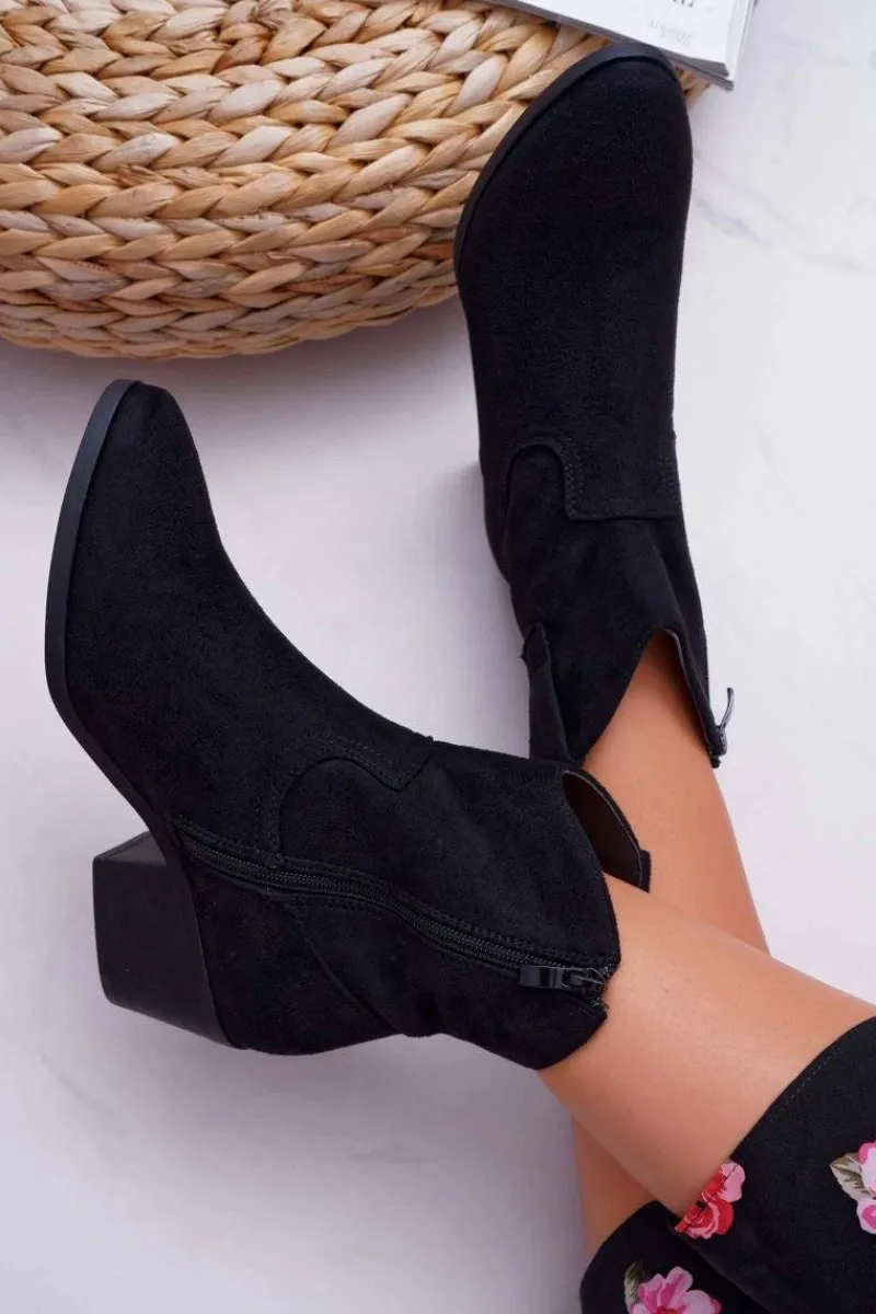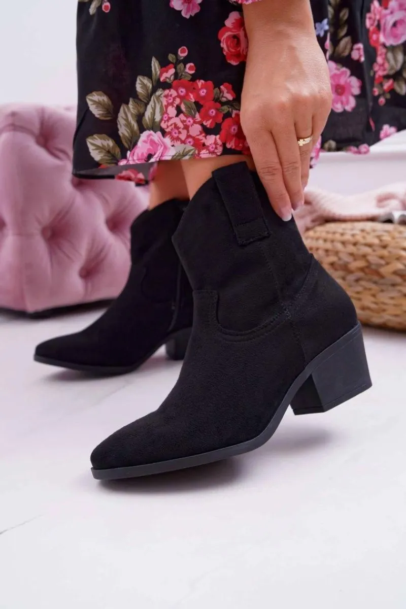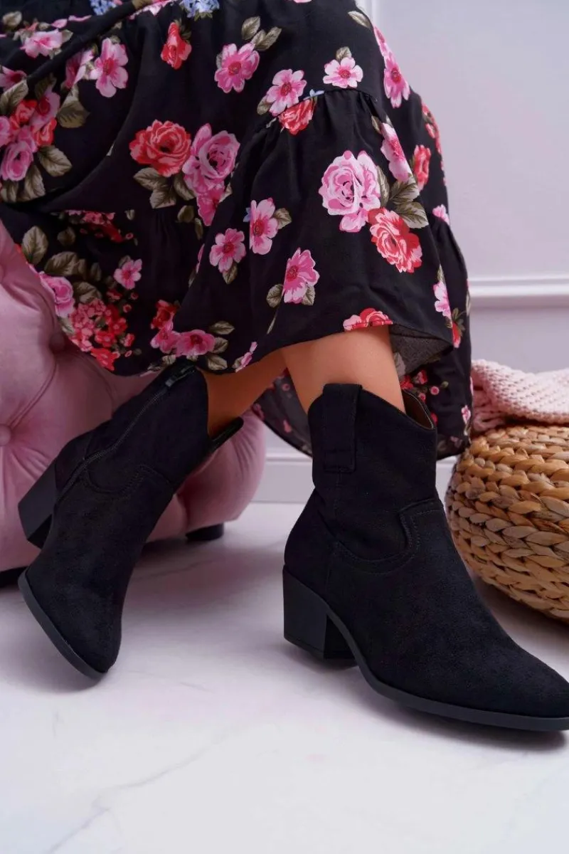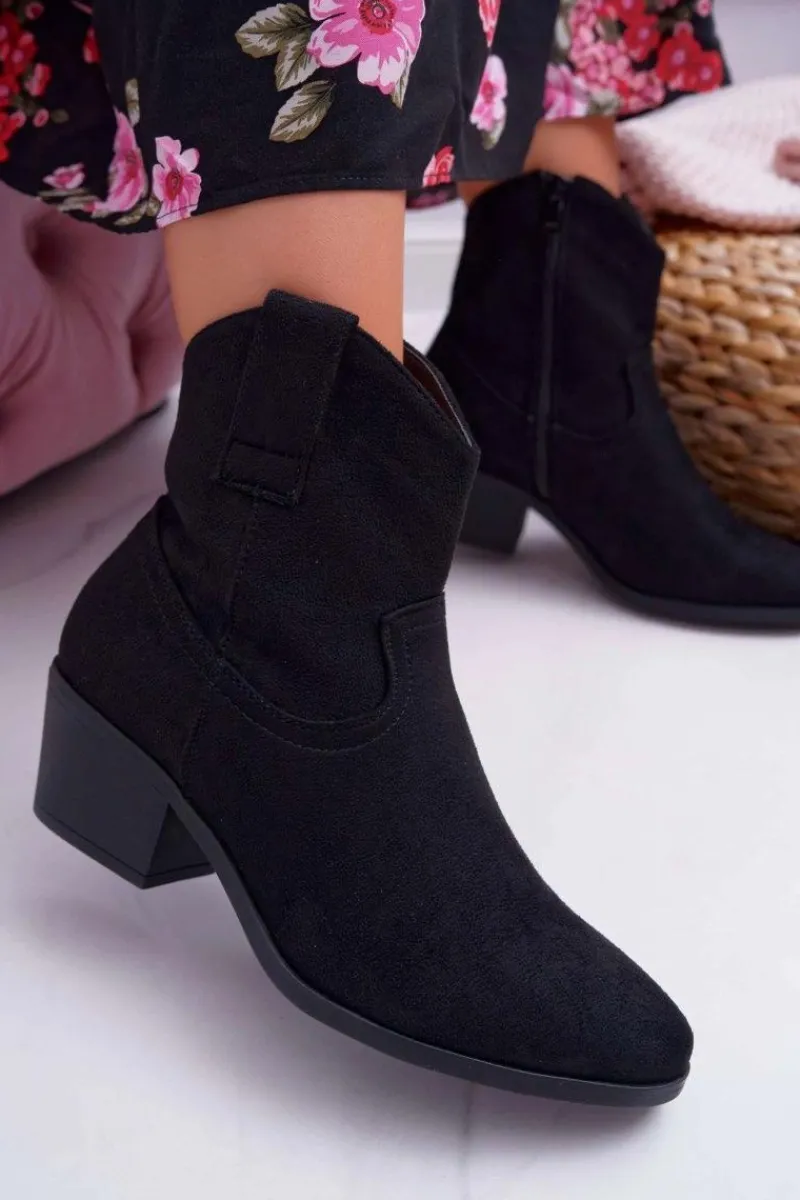 Boto Botki Damskie Płaski Obcas Kowbojki Czarne Telifa
