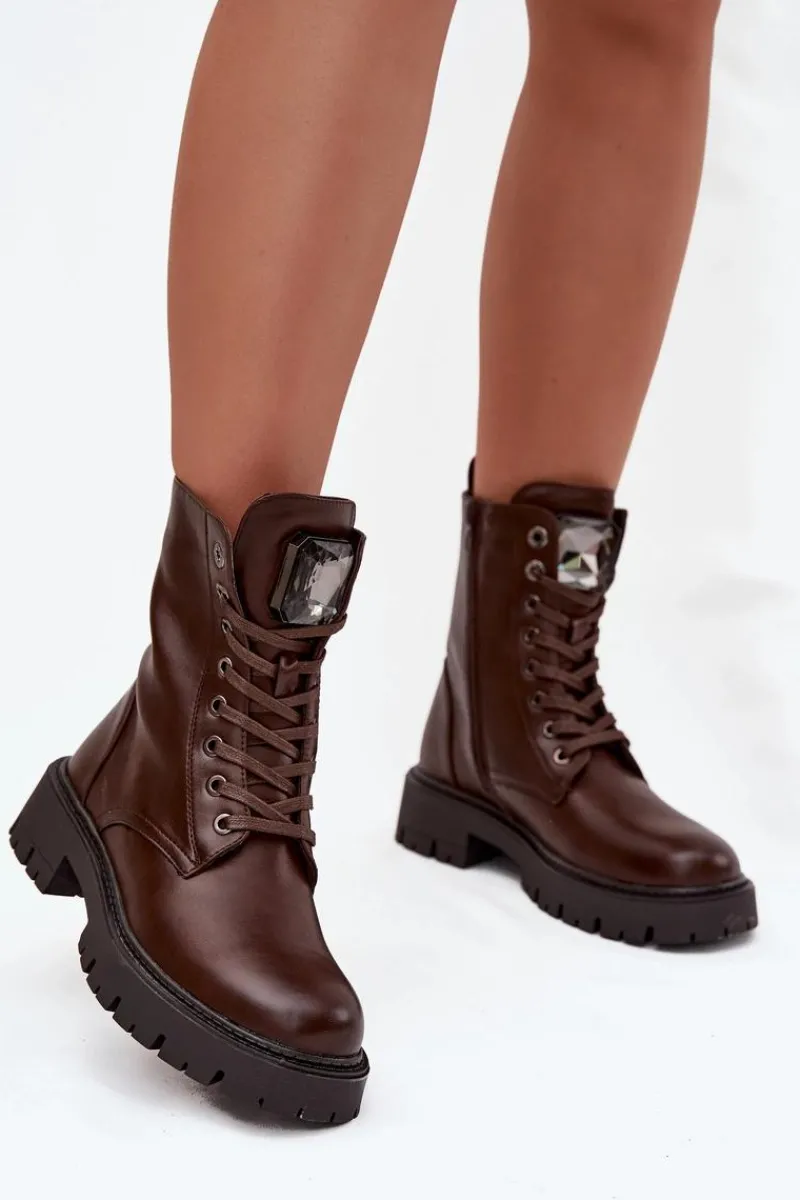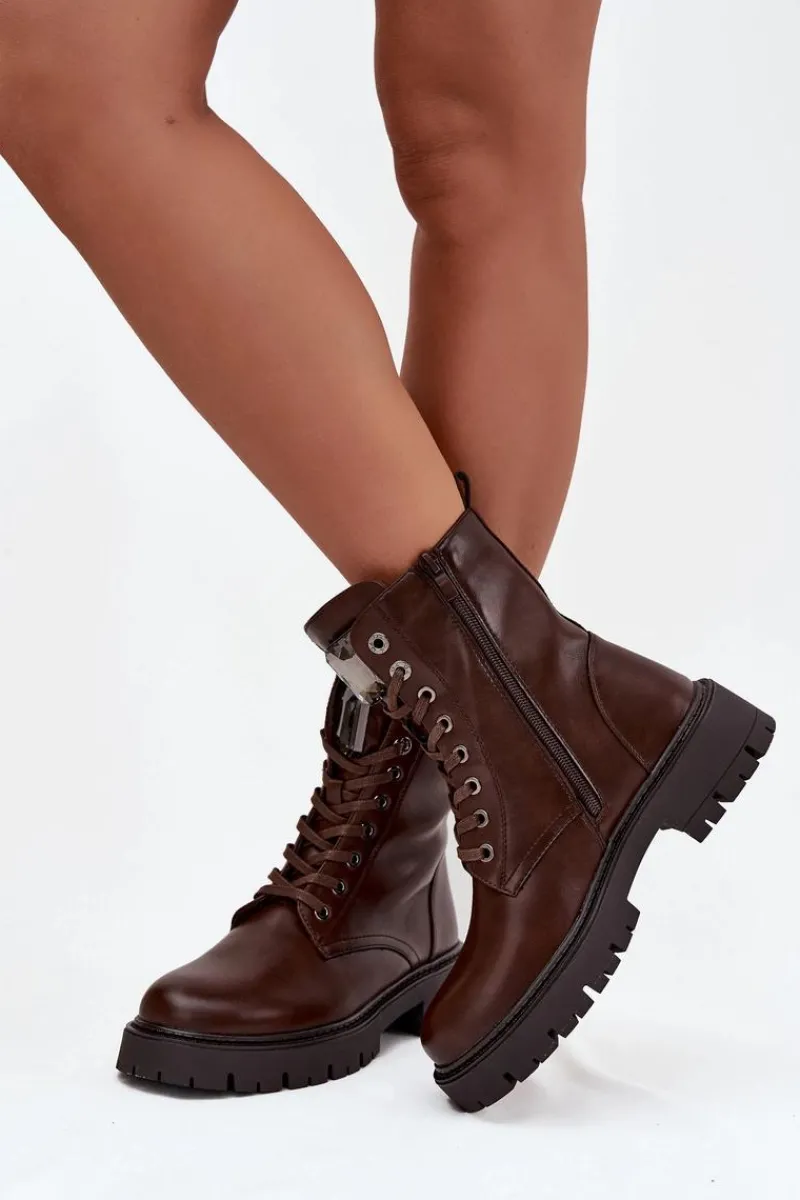 Botki workery damskie wykonane z eko skóry to praktyczna i stylowa propozycja na chłodniejsze dni. Model łączy w sobie funkcjonalność i modny wygląd – zapinany na zamek oraz sznurowany, co pozwala na idealne dopasowanie do stopy i wygodne zakładanie. Zaokrąglone noski nadają butom klasycznego charakteru, a ocieplane wnętrze z pianki pokrytej tkaniną zapewnia ciepło i komfort podczas noszenia. To uniwersalny model, który doskonale sprawdzi się w codziennych stylizacjach. Przy wyborze rozmiaru prosimy sugerować się tabelą rozmiarów.