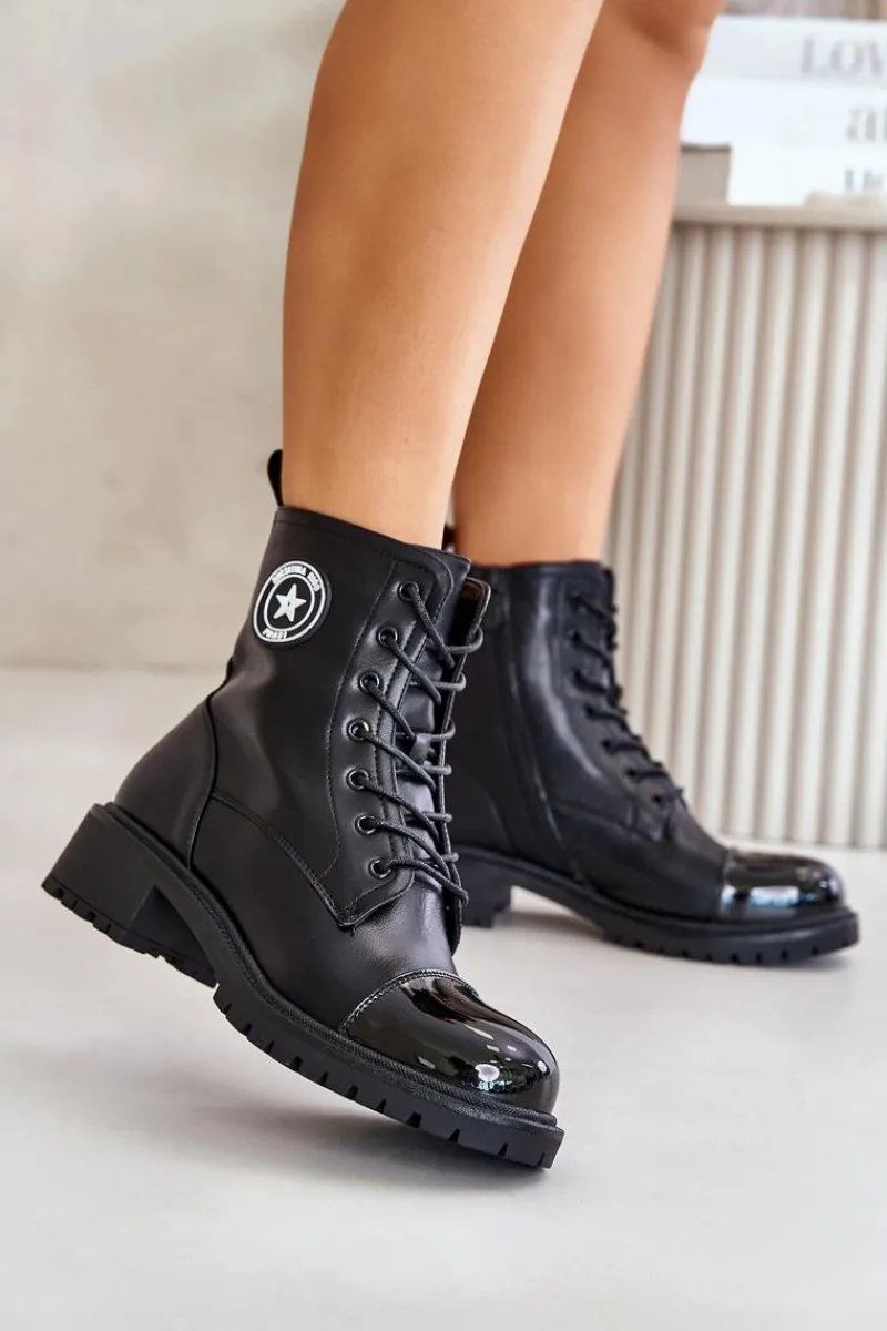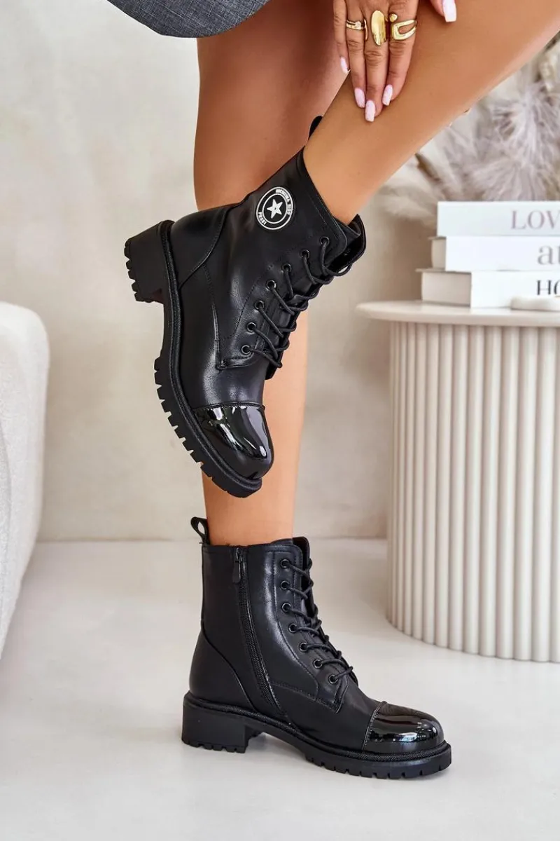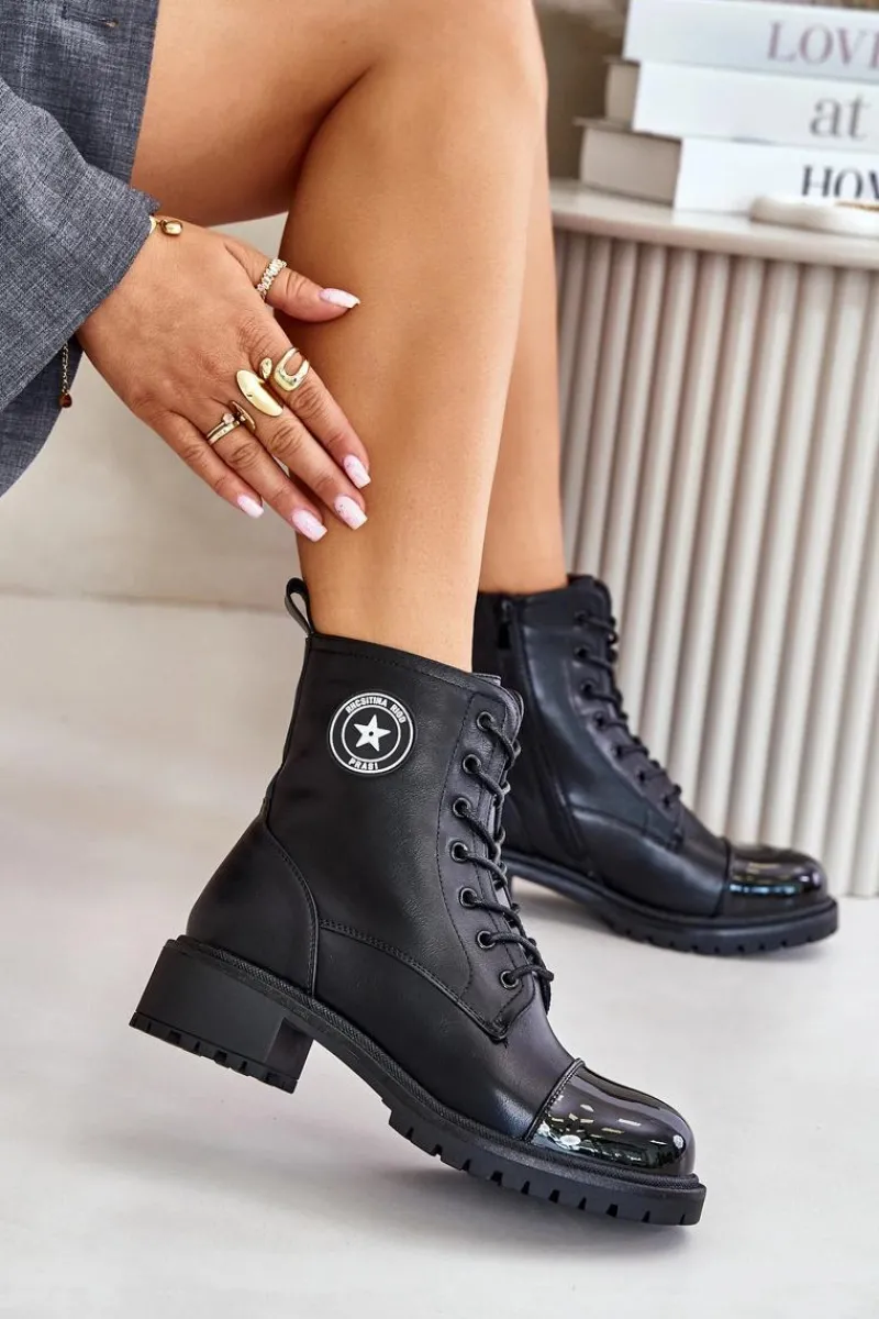 Damskie botki workery wykonane z ekologicznej skóry, ocieplane kocem obuwniczym, idealnie sprawdzą się w chłodniejsze dni. Model zapinany na zamek oraz sznurowany, co zapewnia doskonałe dopasowanie do stopy i wygodę noszenia. Klasyczny design w połączeniu z funkcjonalnością czyni je stylowym wyborem na co dzień. Przy wyborze rozmiaru prosimy sugerować się tabelą rozmiarów.