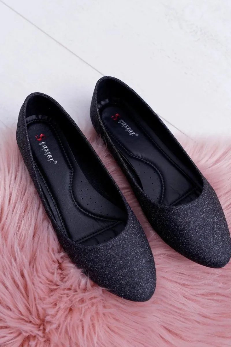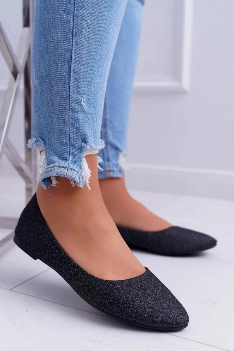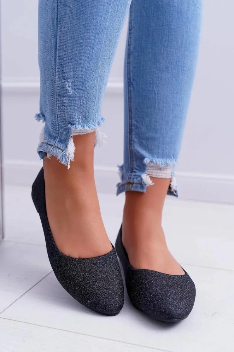 Delikatne baleriny ozdobione brokatem. Buty wykonane są ze skóry ekologicznej, posiadają profilowaną wkładkę. Przy wyborze rozmiaru prosimy sugerować się tabelą rozmiarów.