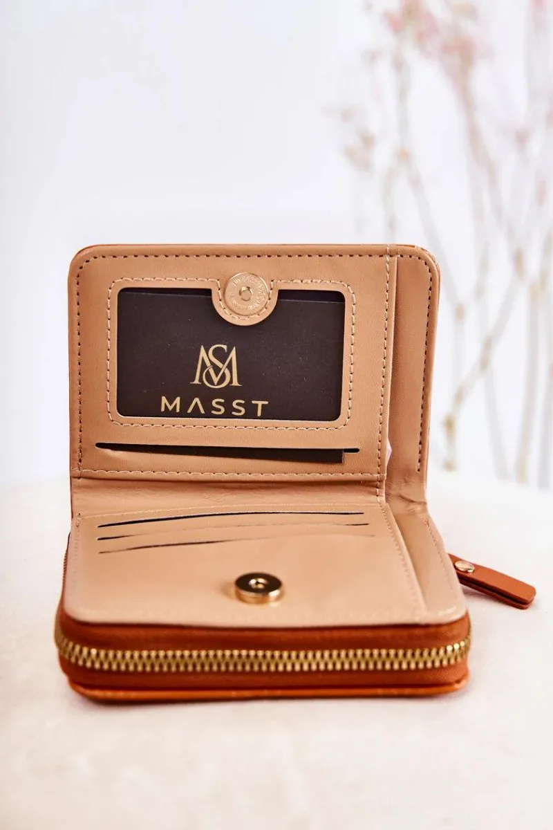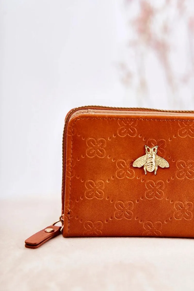 Mały, elegancki portfel został wykonany z eko skóry z tłoczeniem na całości. Zapinany na magnes oraz suwak. W środku posiada kilka kieszeni na karty czy wizytówki, miejsce na banknoty, a także miejsce na fotografię. Zamykana na suwak kieszonka pomieści bilony. Na przodzie umieszczono modny emblemat. Portfel dodatkowo posiada dopinany pasek. Ten niezbędny dodatek każdej kobiety sprawdzi się także idealnie jako prezent!