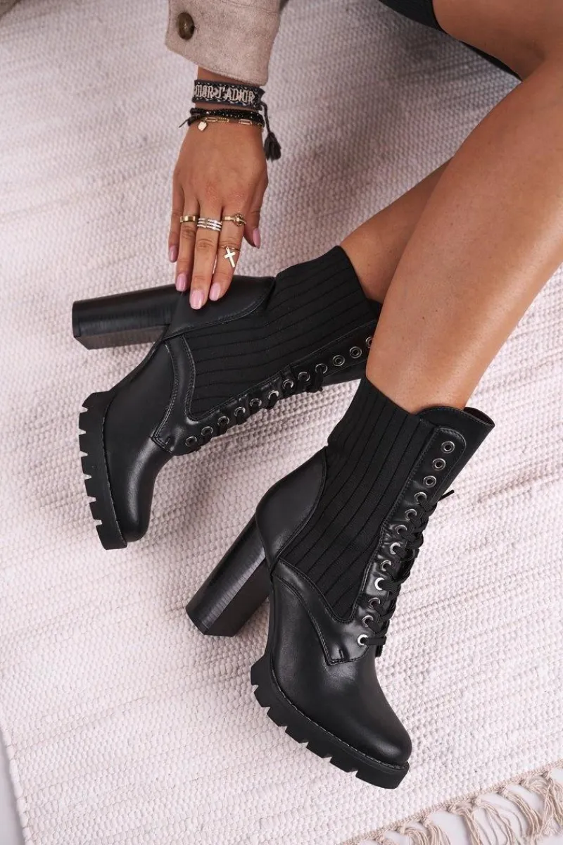 Boto Damskie Botki Na Słupku Wysokie Czarne Erdogan