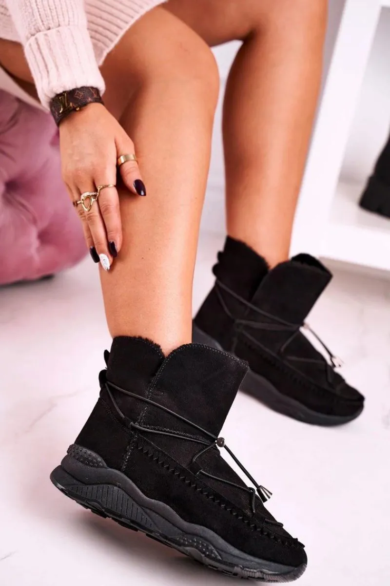 Boto Damskie Botki Śniegowce Sportowe Ocieplane Futerkiem Czarne Synte