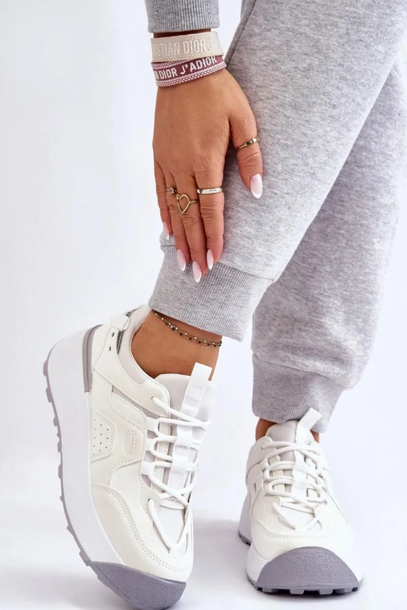 Świetne, damskie buty sportowe zostały osadzone na masywnej platformie, która delikatnie uniesie Twoją sylwetkę. Model ten posiada klasyczne sznurowanie. Dodatkowo zapiętek jest usztywniany, a z tyłu cholewki znajduje się odblaskowy element. Wkładka w tych butach jest materiałowa oraz wymienna. Przy wyborze rozmiaru prosimy kierować się tabelą rozmiarów.
