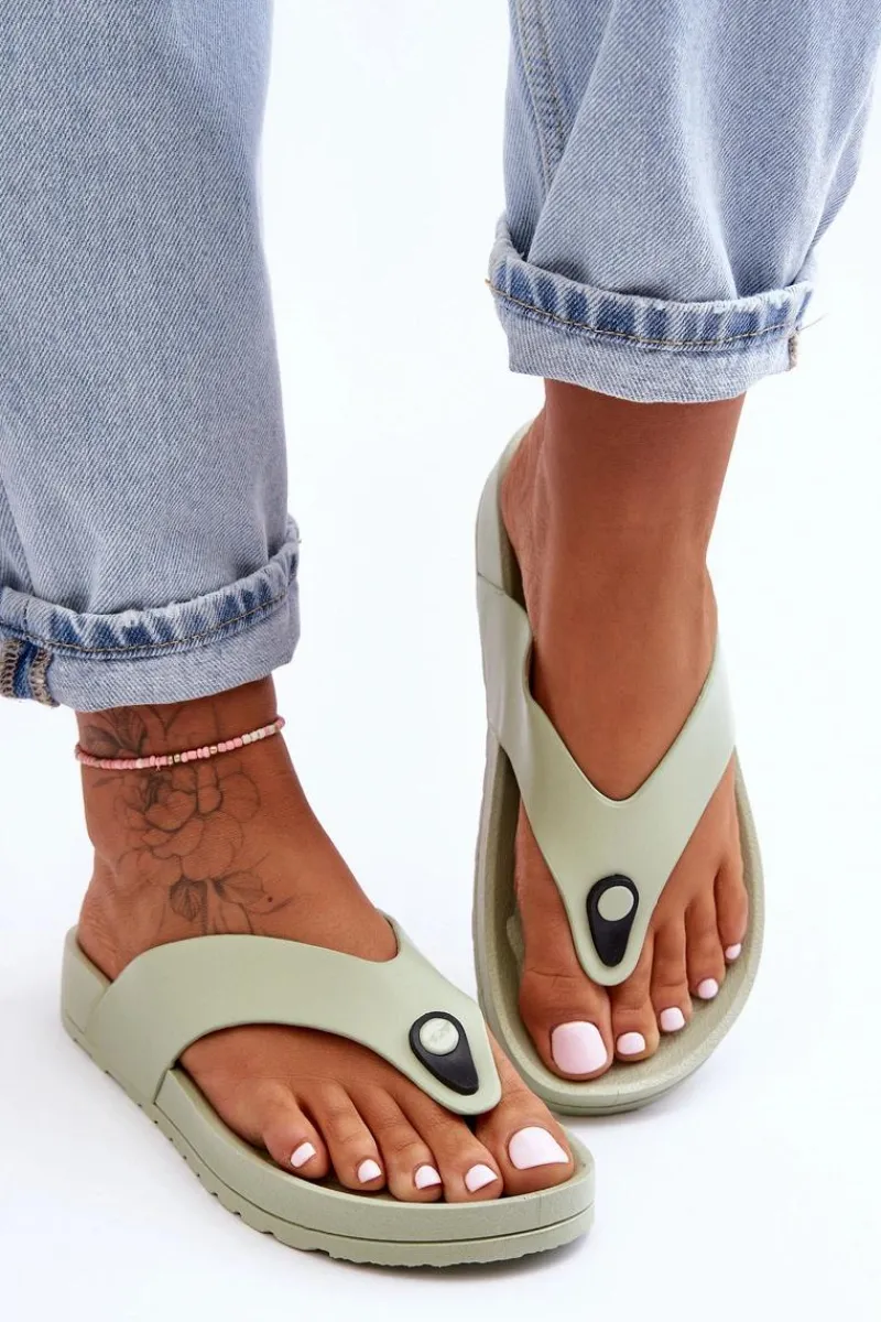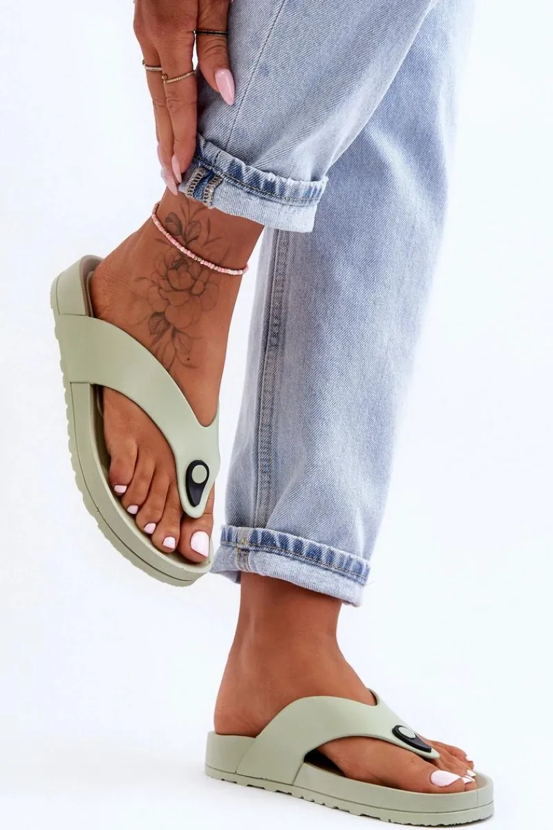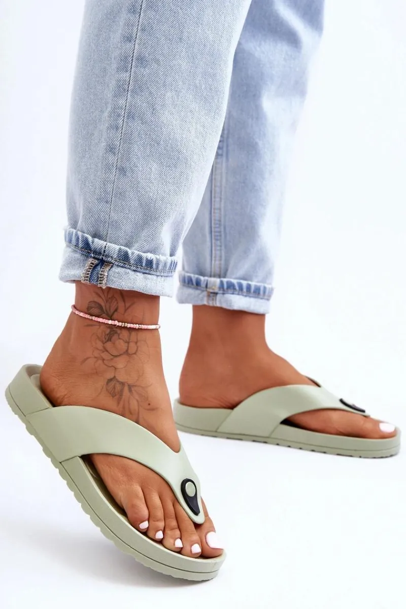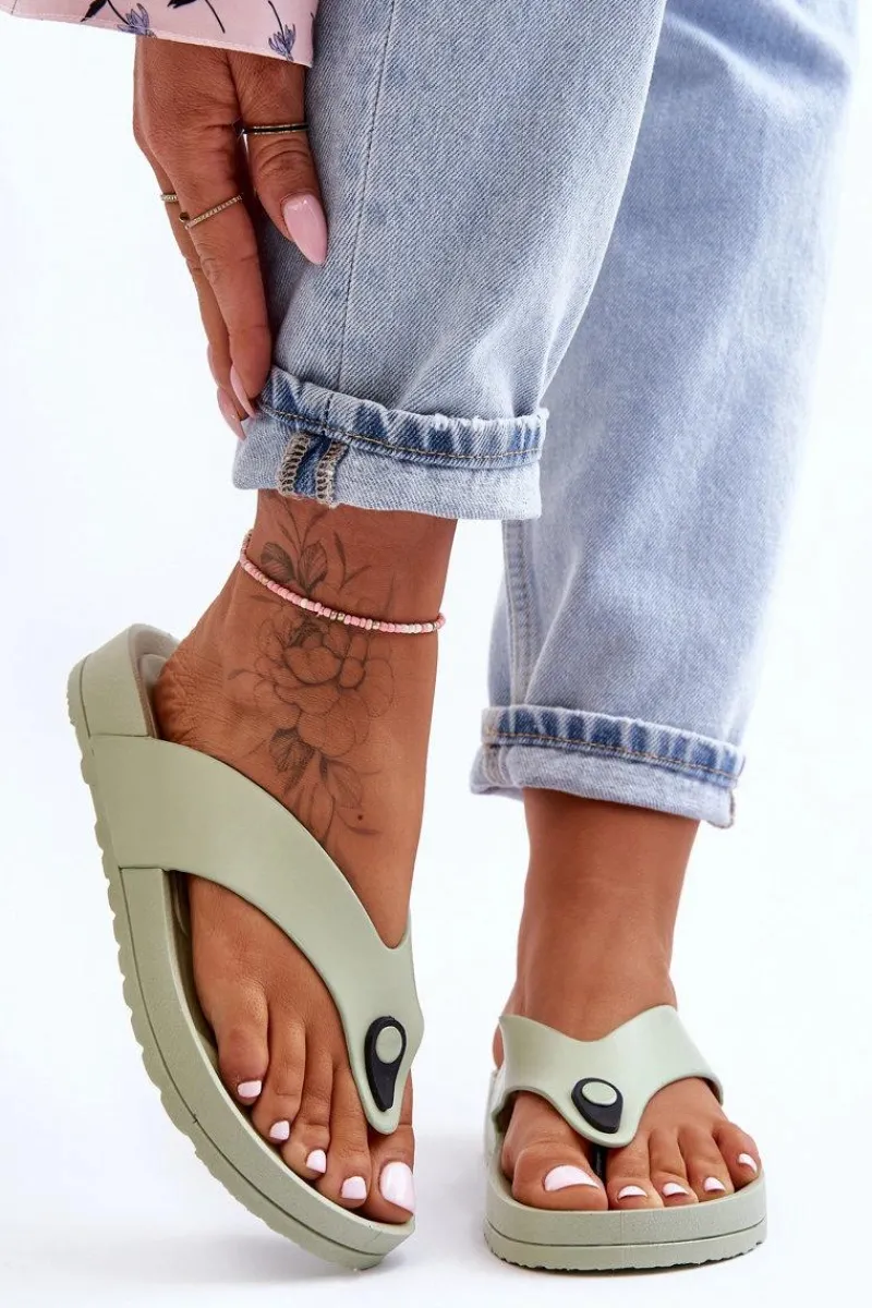 Boto Damskie Klapki Japonki Na Platformie Zielone Bellitta