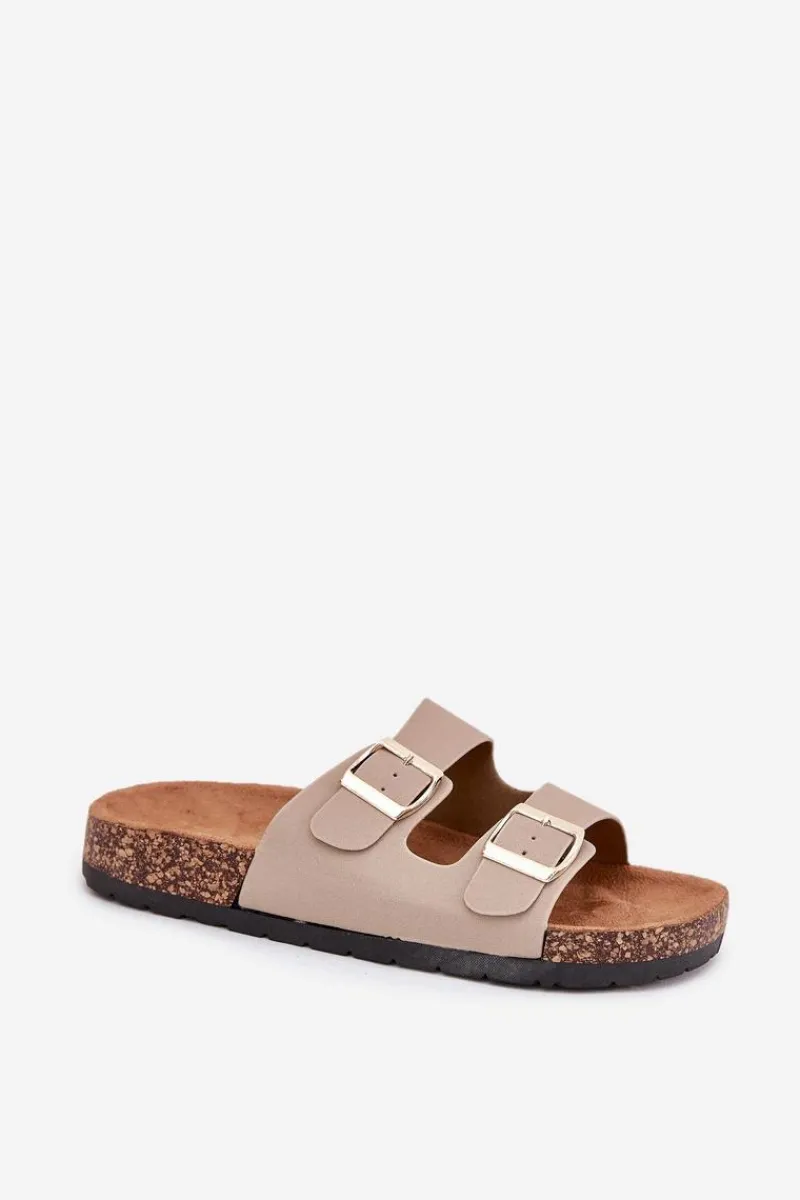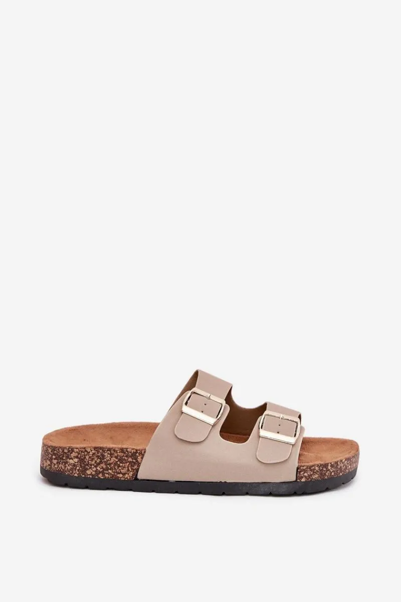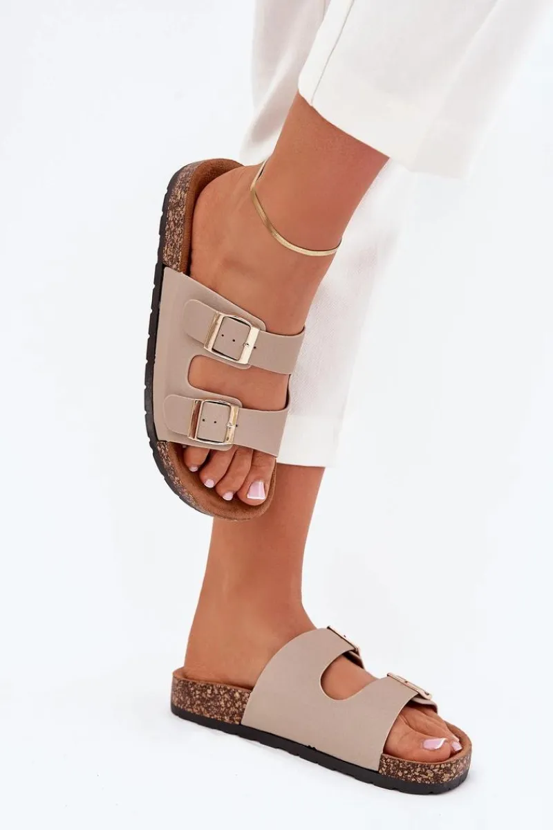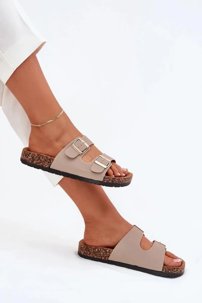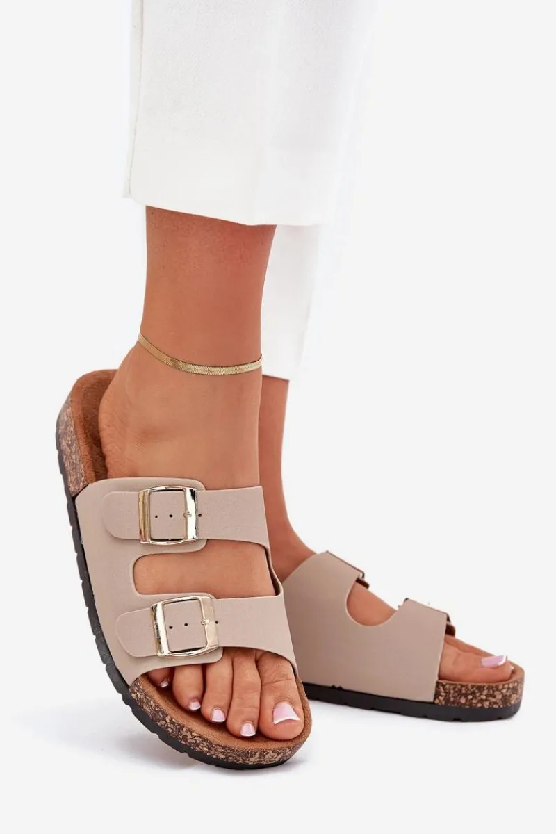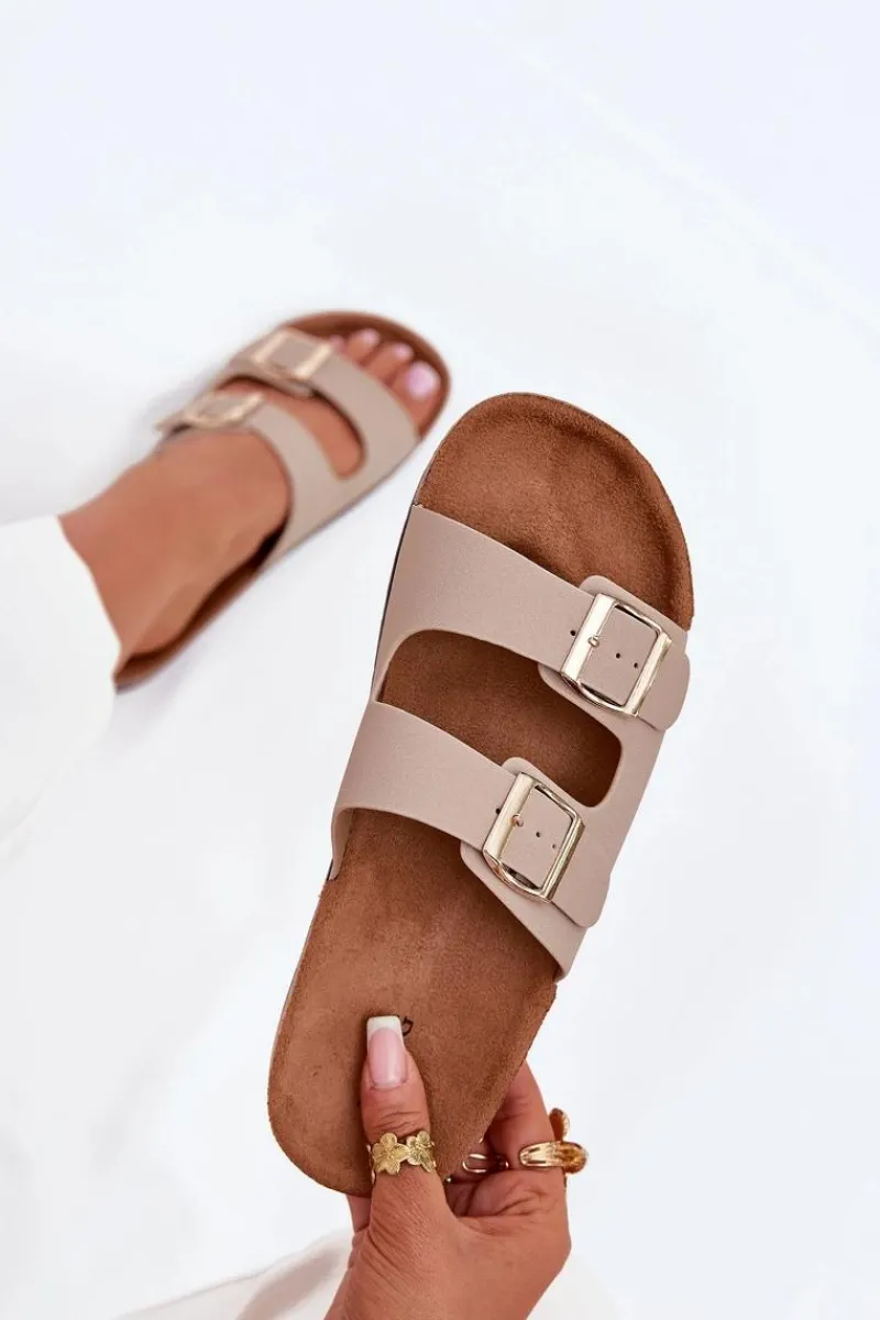 Klapki te posiadają dwa szerokie paski zapinane na sprzączkę, które można regulować. Idealne na letnie spacery oraz codzienne wyjścia na zakupy. Profilowana, wykonana z eko zamszu wkładka zapewni wygodę oraz komfort. Podeszwa została wykonana z tworzywa sztucznego. Klapki te sprawiają, że Twoje stopy będą wypoczęte i zrelaksowane. Przy wyborze rozmiaru prosimy sugerować się tabelą rozmiarów.
