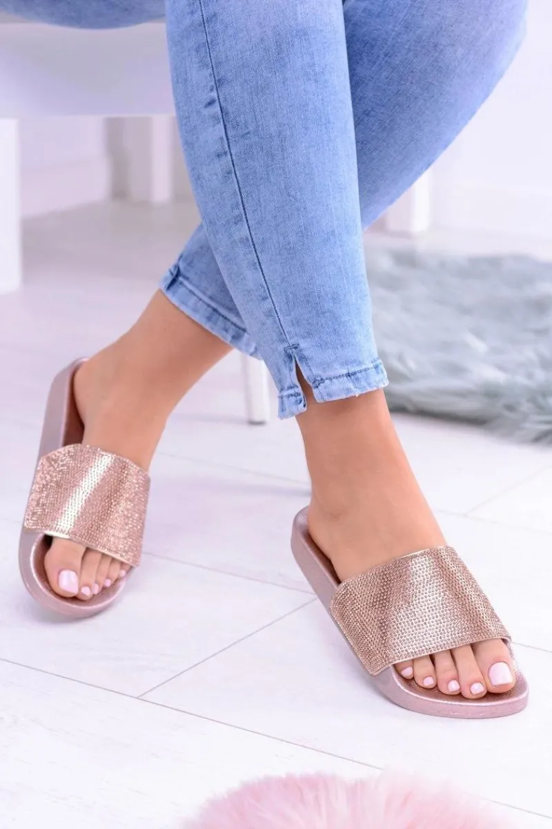 Boto Damskie Klapki Z Cyrkoniami LadyCristal Różowe Złoto